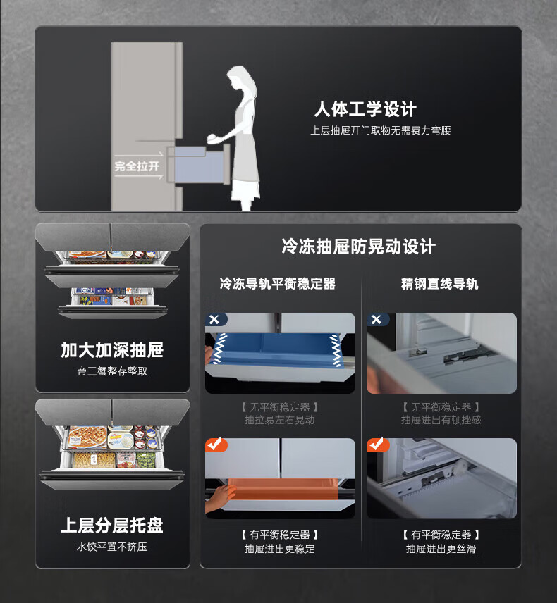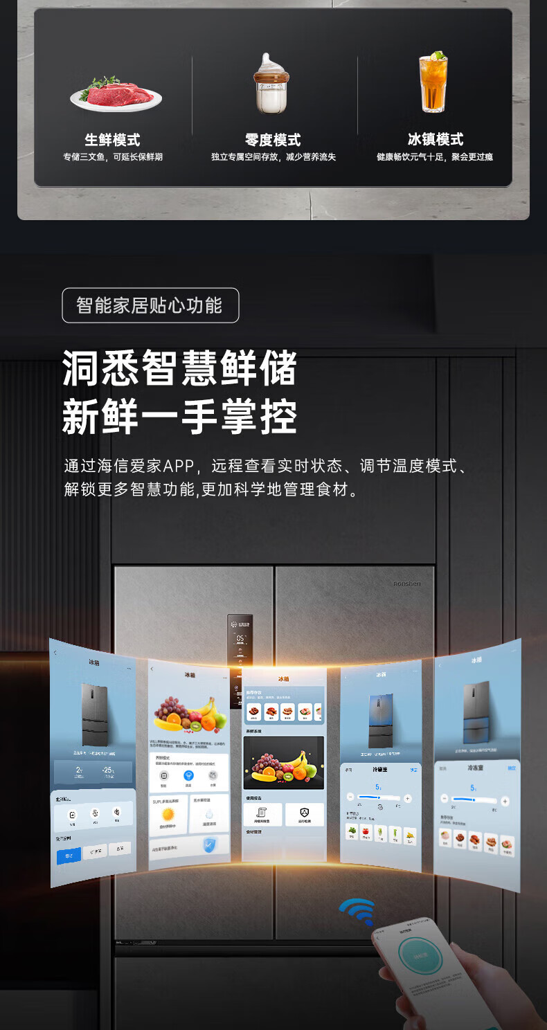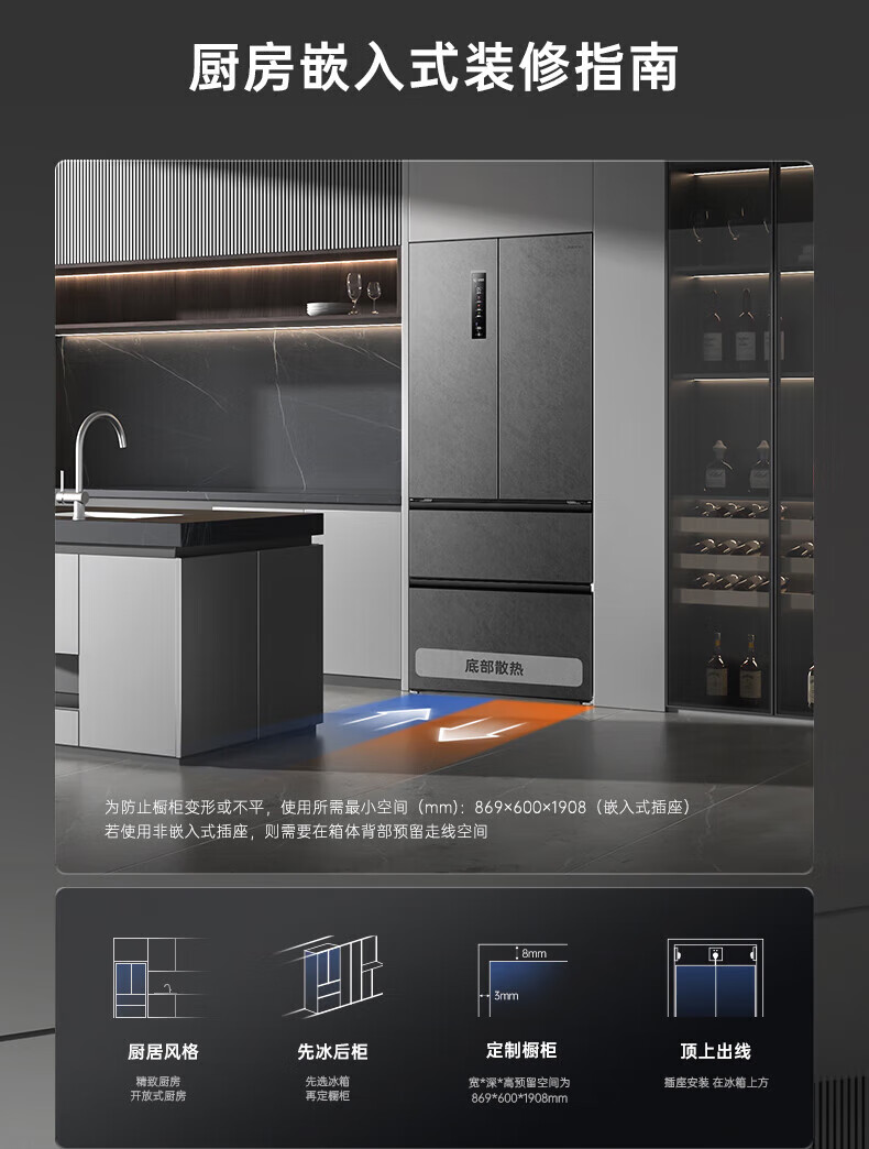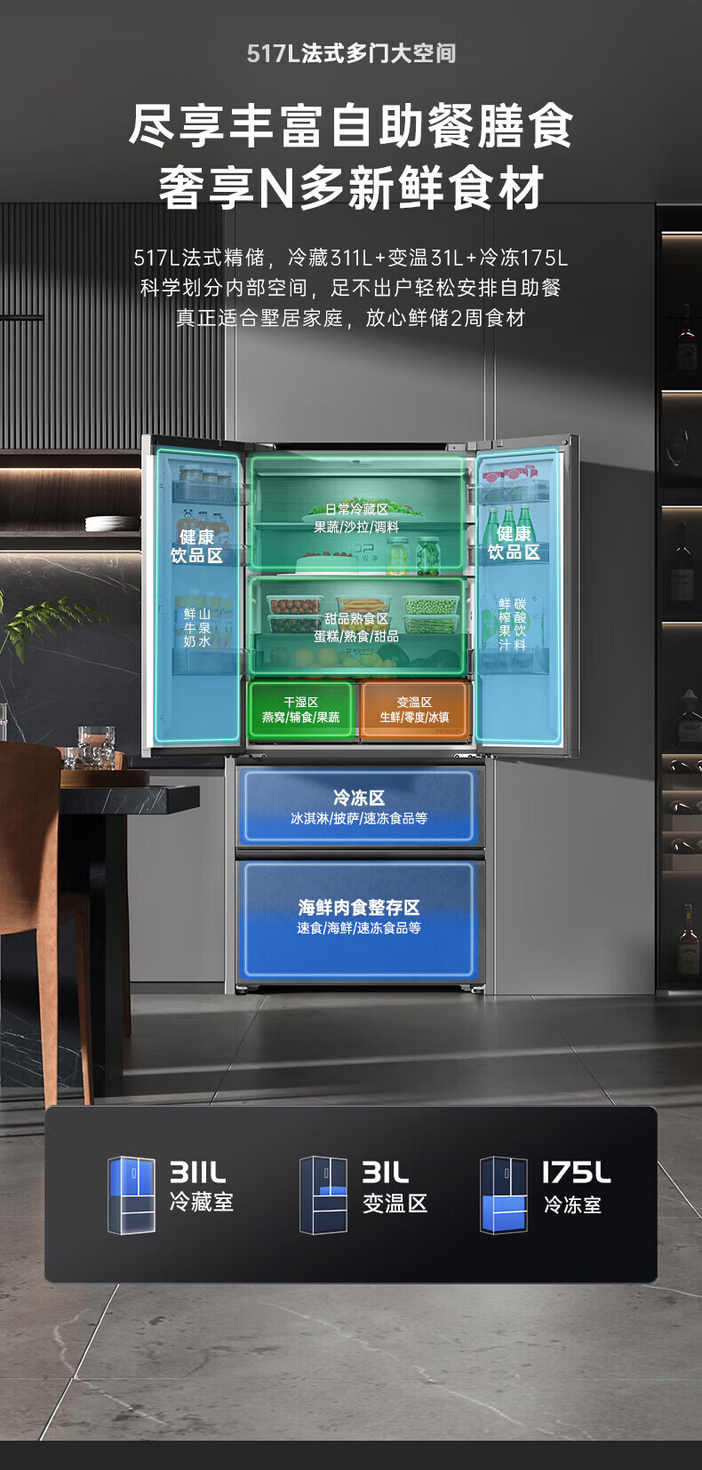 Rongsheng 517 liter double purified French multi-door four-door household refrigerator IDP active sterilization ultra-thin zero embedded first-level energy efficiency air-cooled frost-free trade-in national subsidy IDP double purified BCD-517WD2MPQLA Star Rock Gray