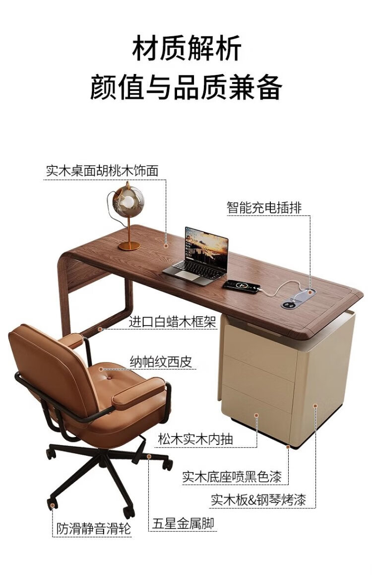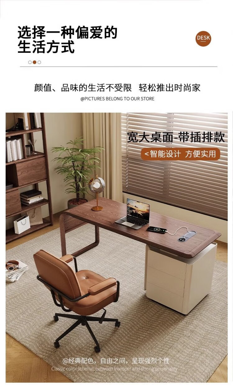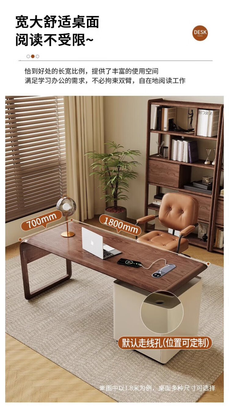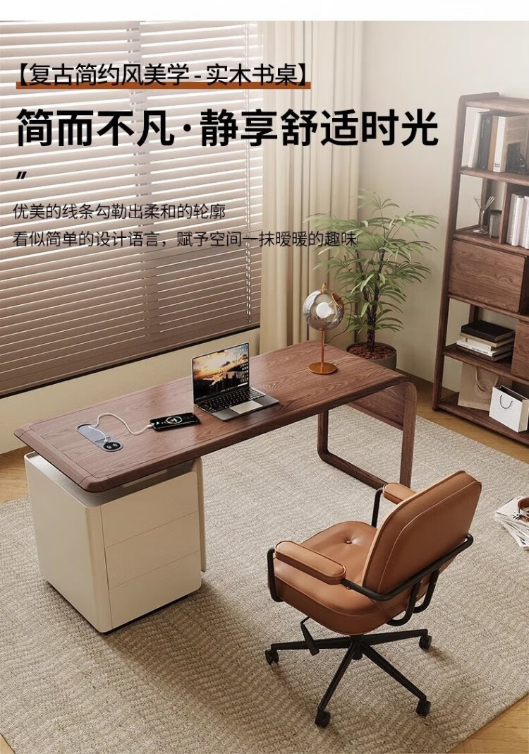 Silan Mengbei retro style desk solid wood table and cabinet integrated new Chinese style high-end study desk writing desk bedroom computer desk home left-hand cabinet - with power strip - without chair 140*70*75cm