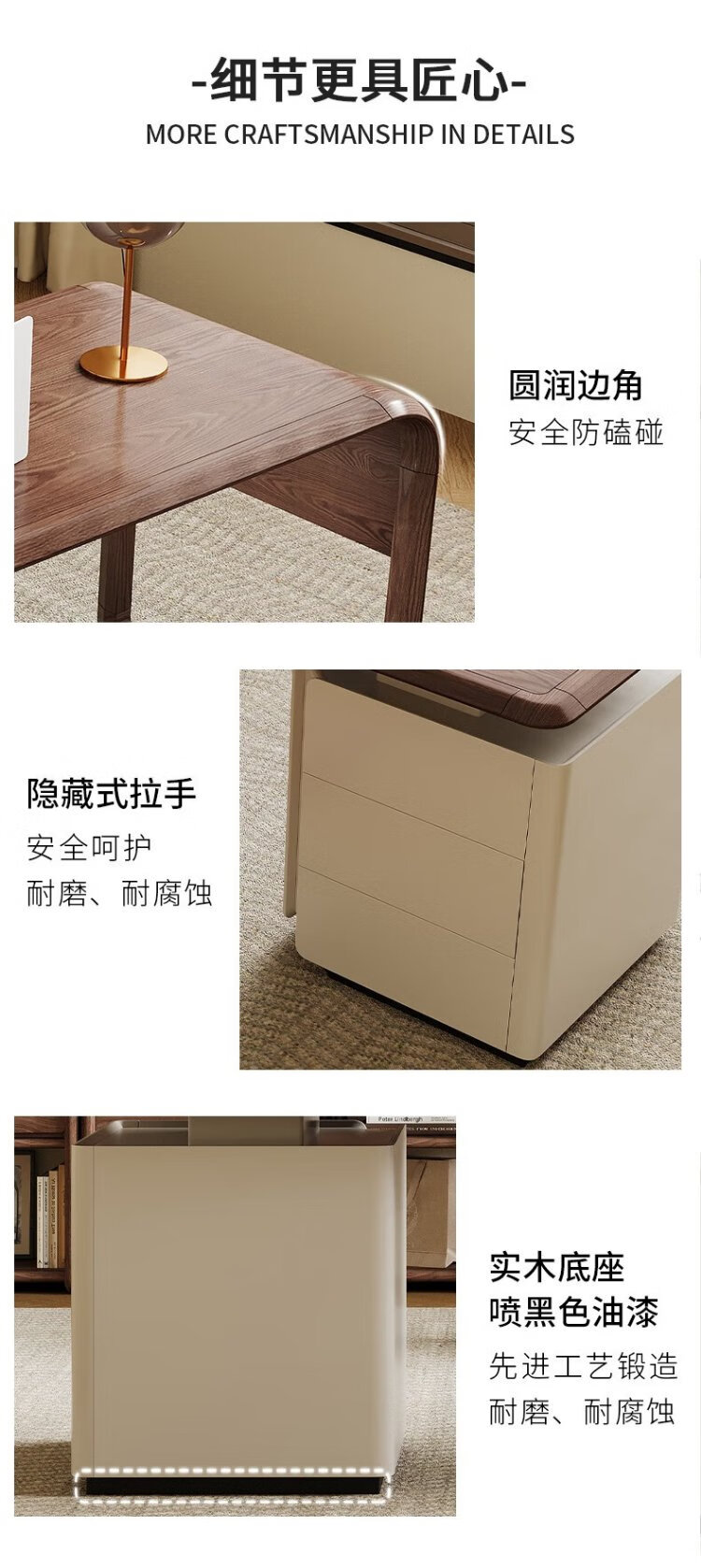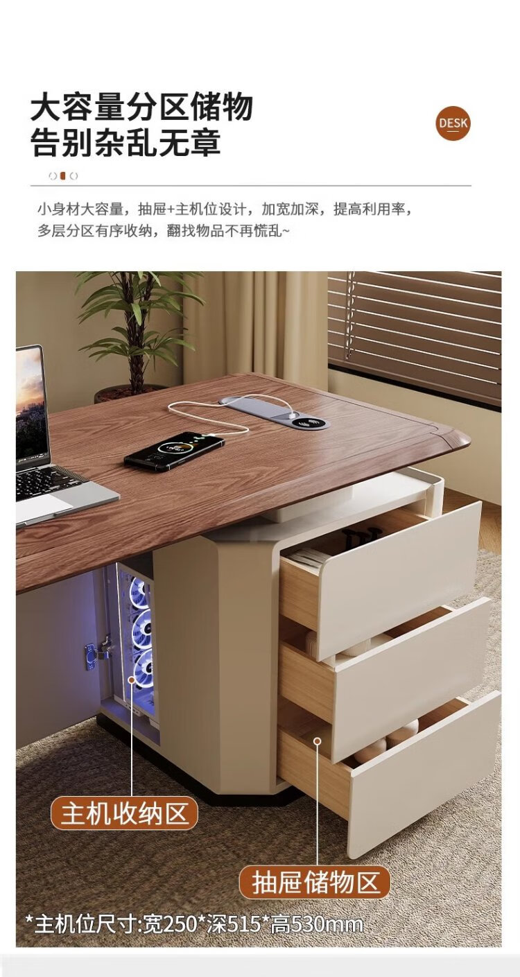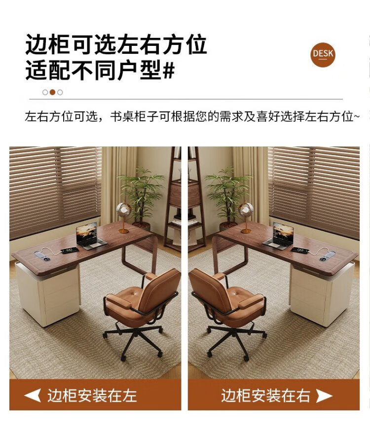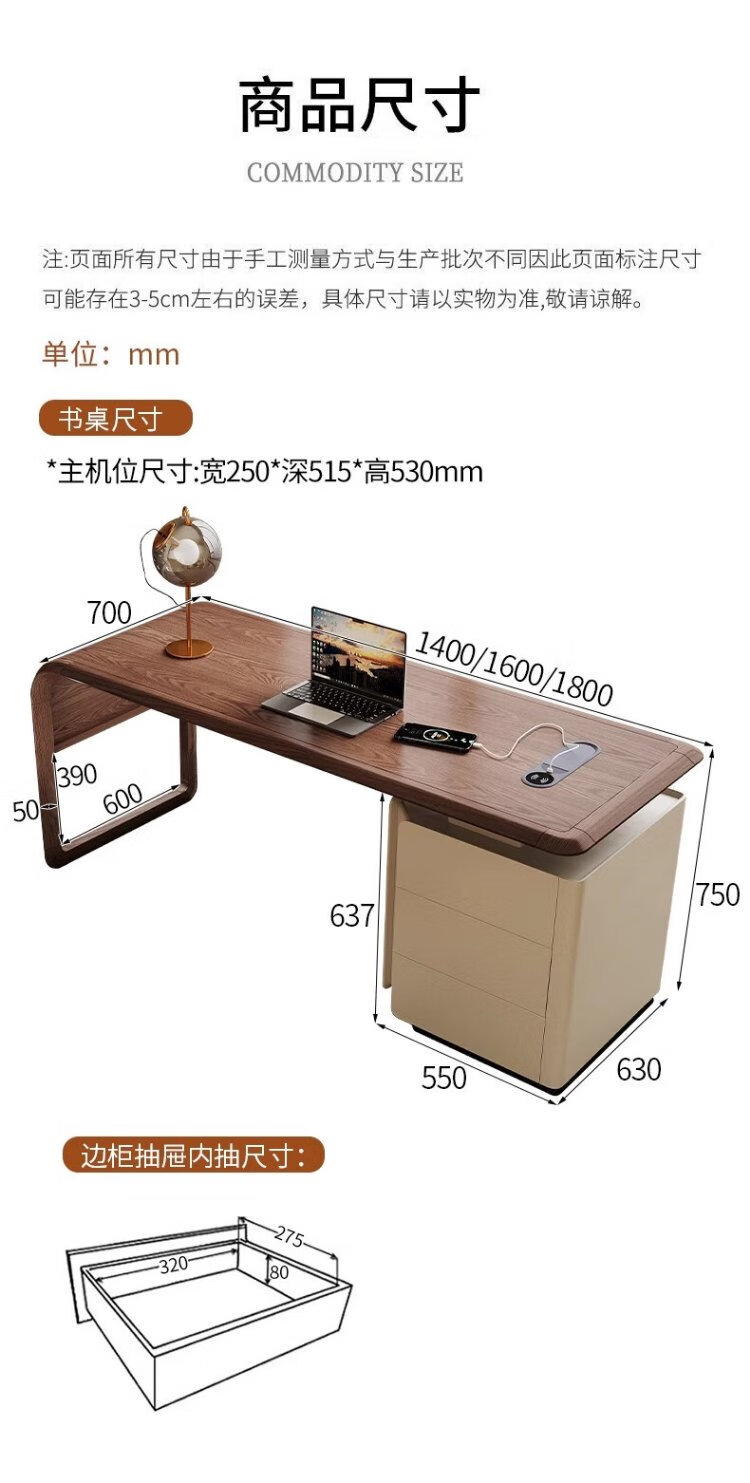 Silan Mengbei retro style desk solid wood table and cabinet integrated new Chinese style high-end study desk writing desk bedroom computer desk home left-hand cabinet - with power strip - without chair 140*70*75cm
