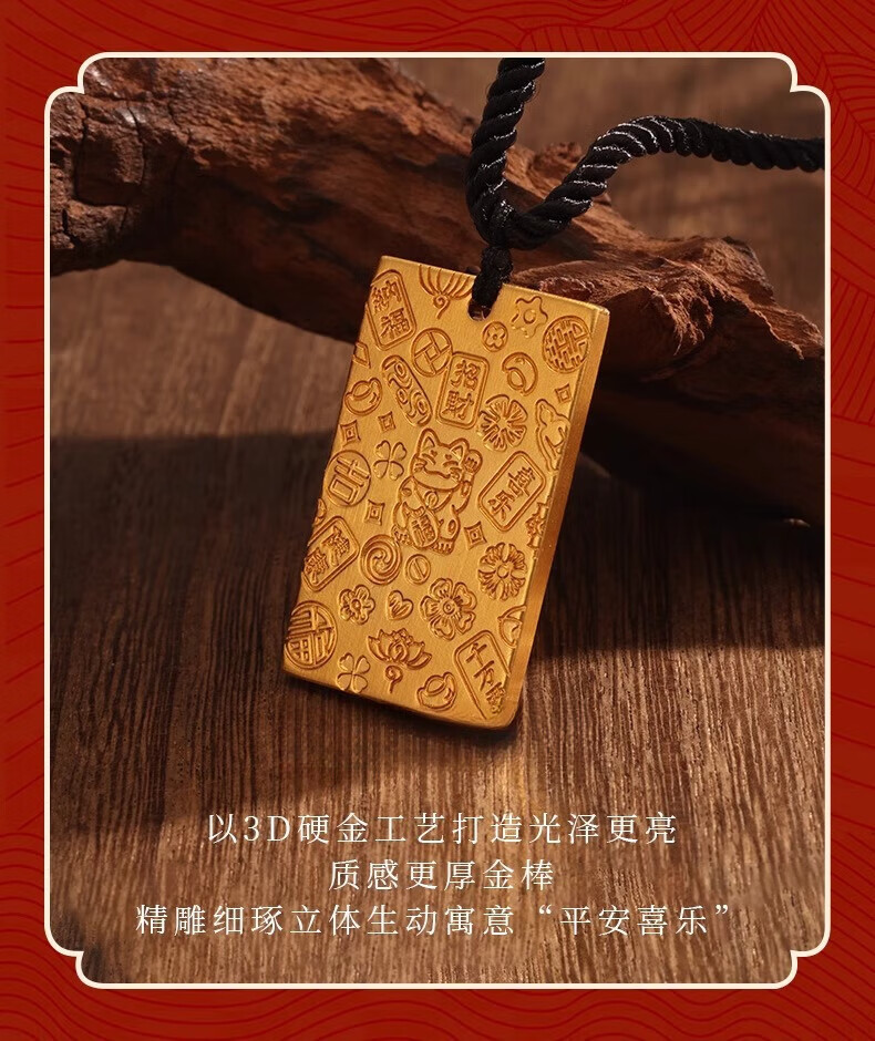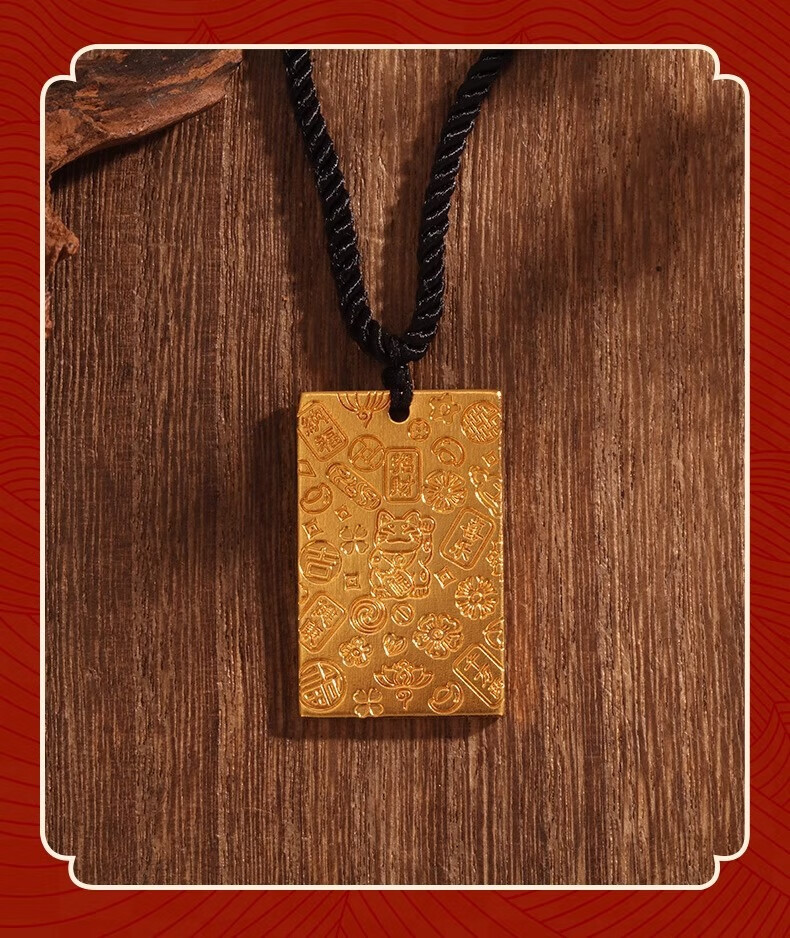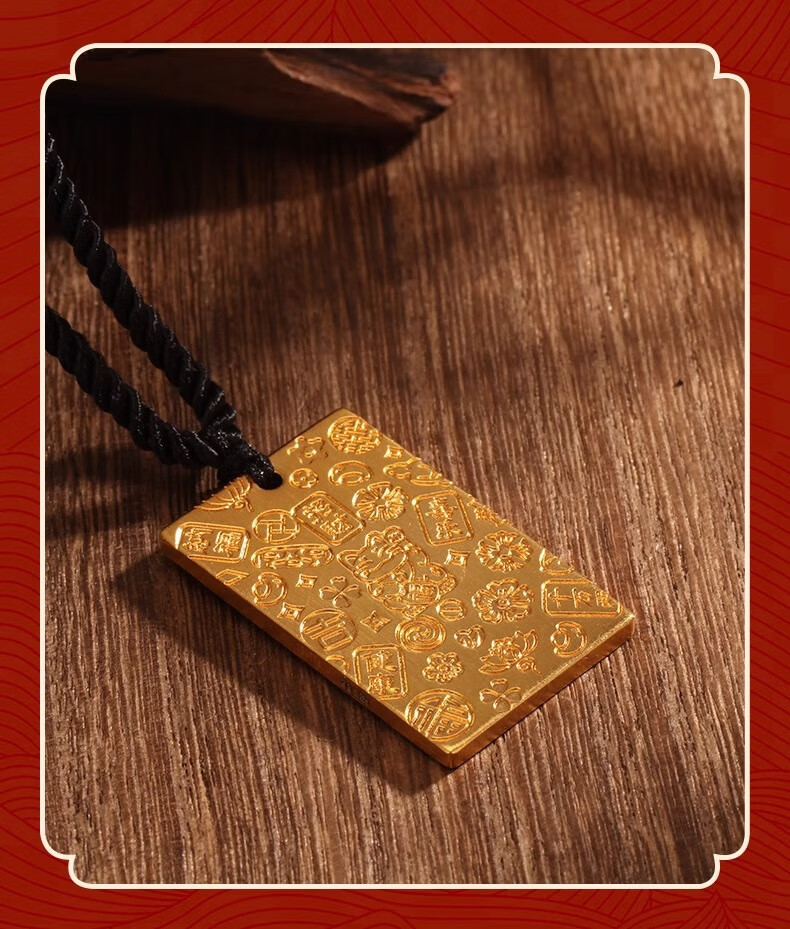 Wenying 99 gold-colored lucky words safe and sound brand gold-wrapped silver pendant couple pendant Valentine's Day imitation gold-wrapped silver gift