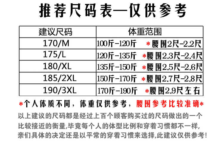 China (cm) 165 / 88-90 170 / 96-98 175 / 108-110 180 / 118-122 185 / 126-130