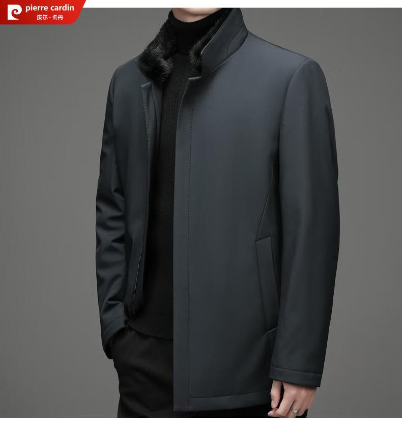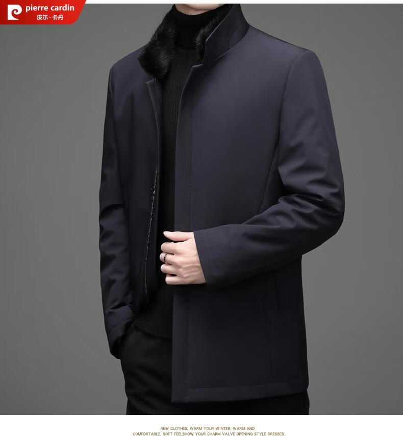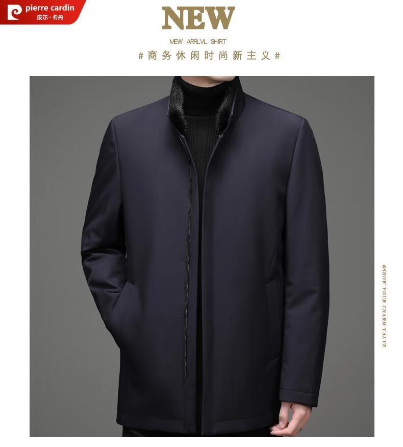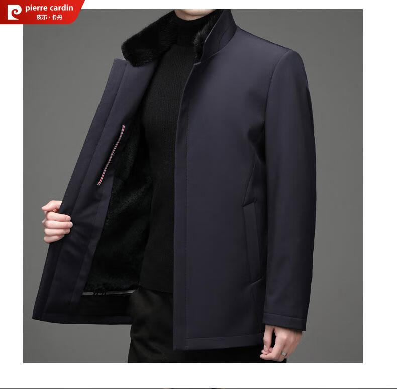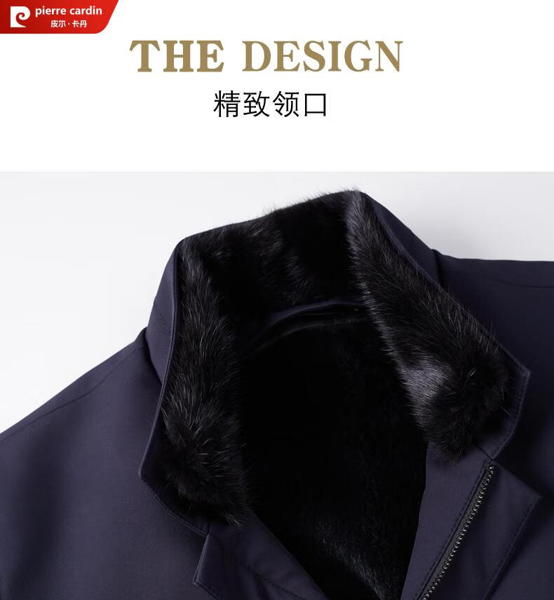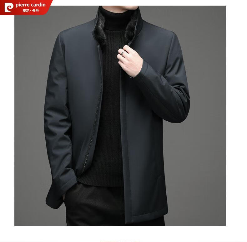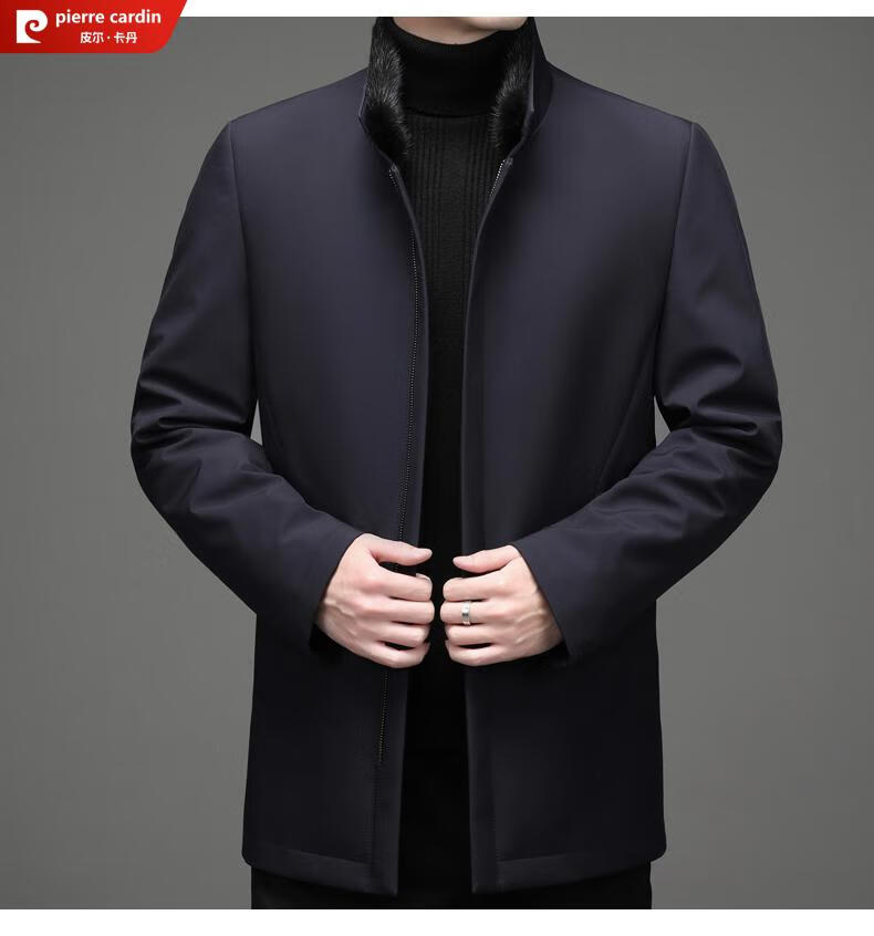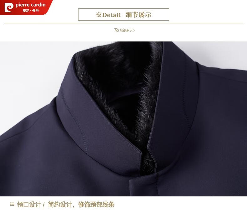 Pierre Cardin high-end business mink fur stand-up collar nikon men's rabbit fur detachable liner fur one-piece fur jacket navy blue mink sweater collar + rabbit fur liner 2XL 185