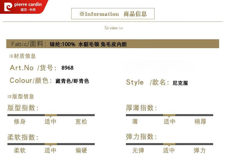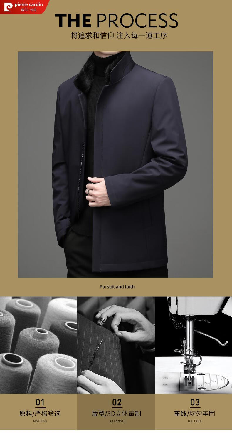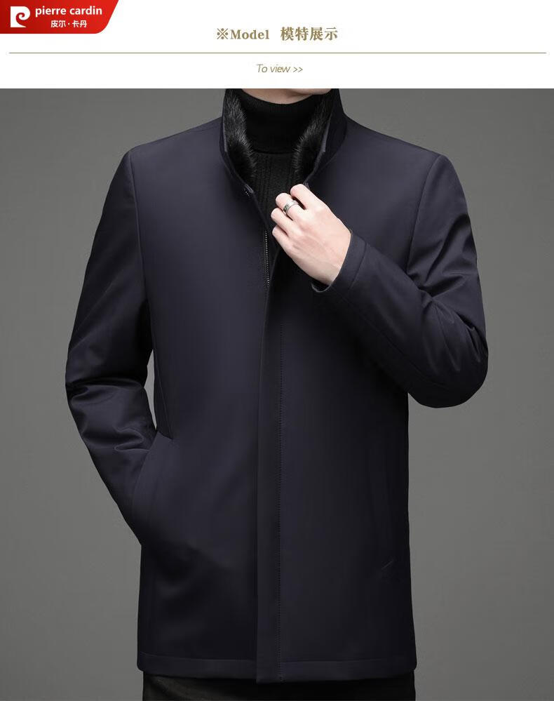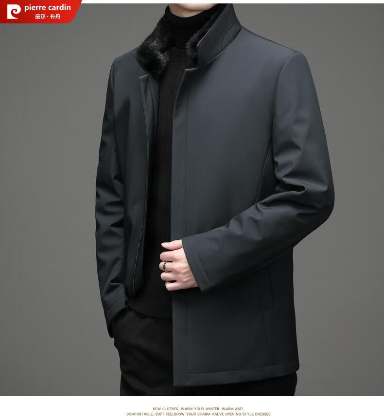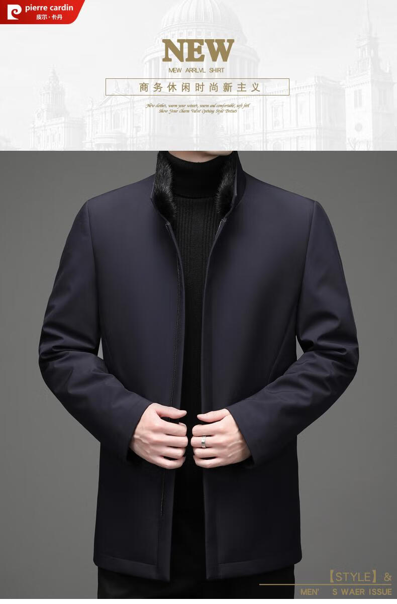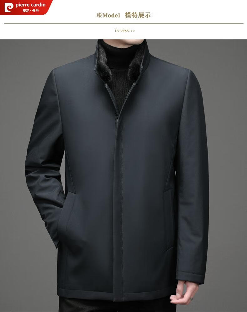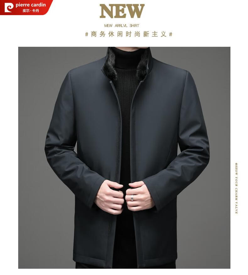 Pierre Cardin high-end business mink fur stand-up collar nikon men's rabbit fur detachable liner fur one-piece fur jacket navy blue mink sweater collar + rabbit fur liner 2XL 185