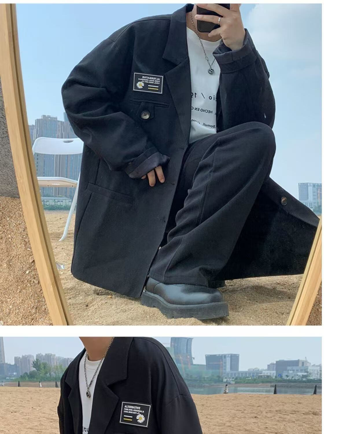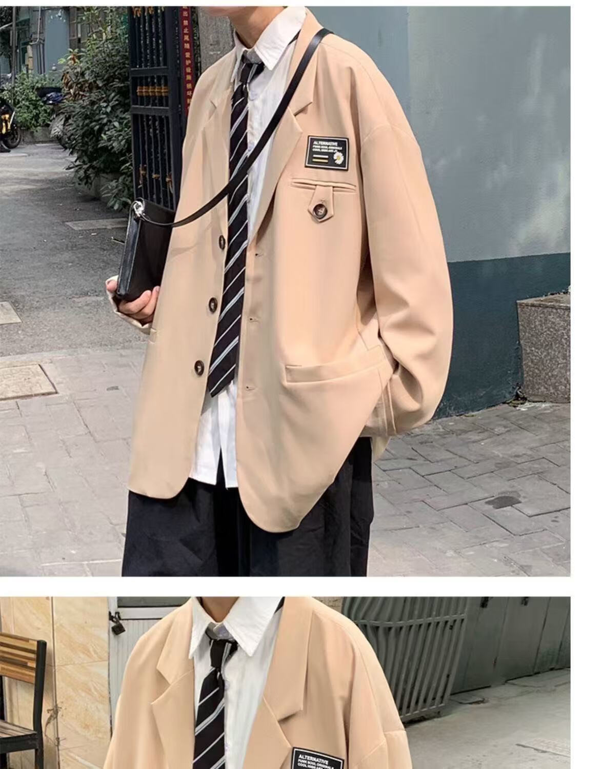 An Chuxia suit men's spring and autumn Hong Kong style college style DK uniform student class uniform blazer men's trend W43 khaki + white shirt + tie + trousers 4XL
