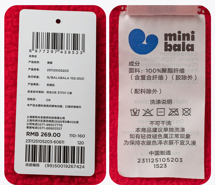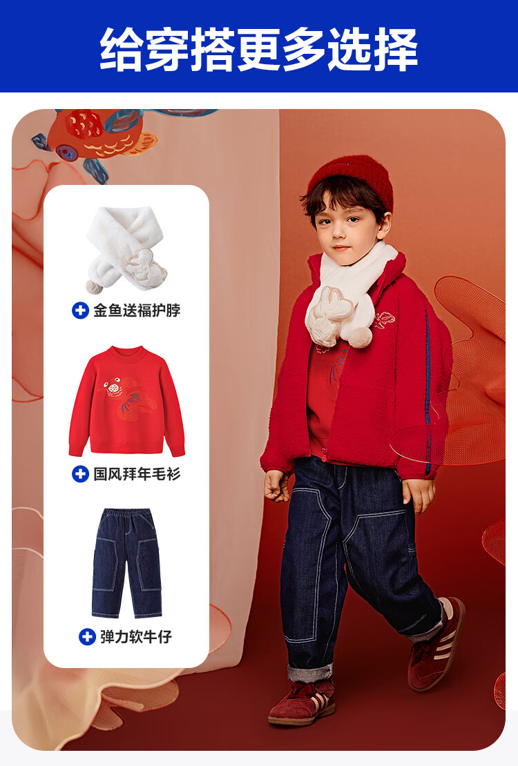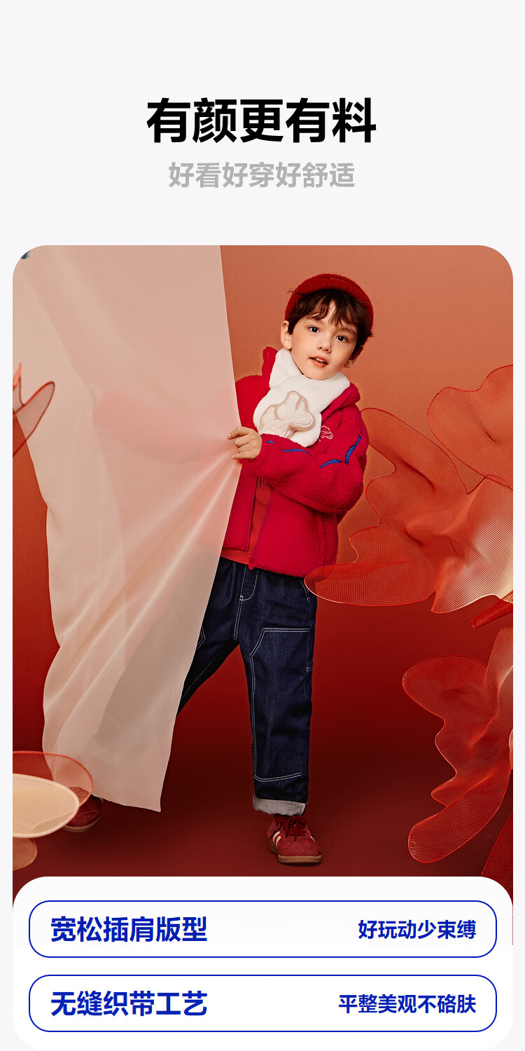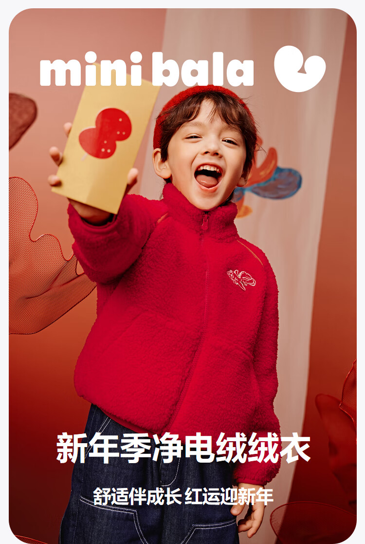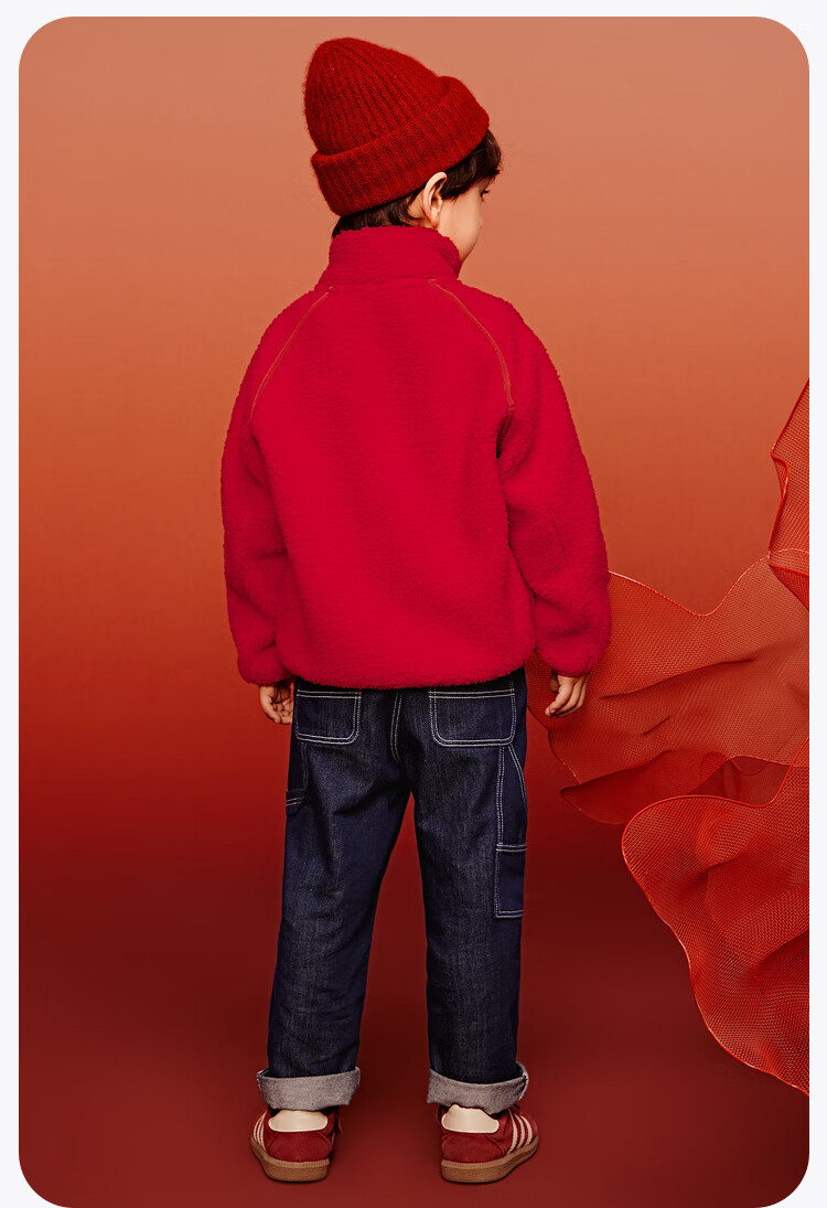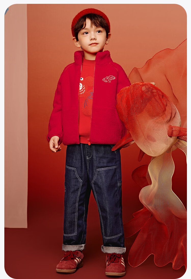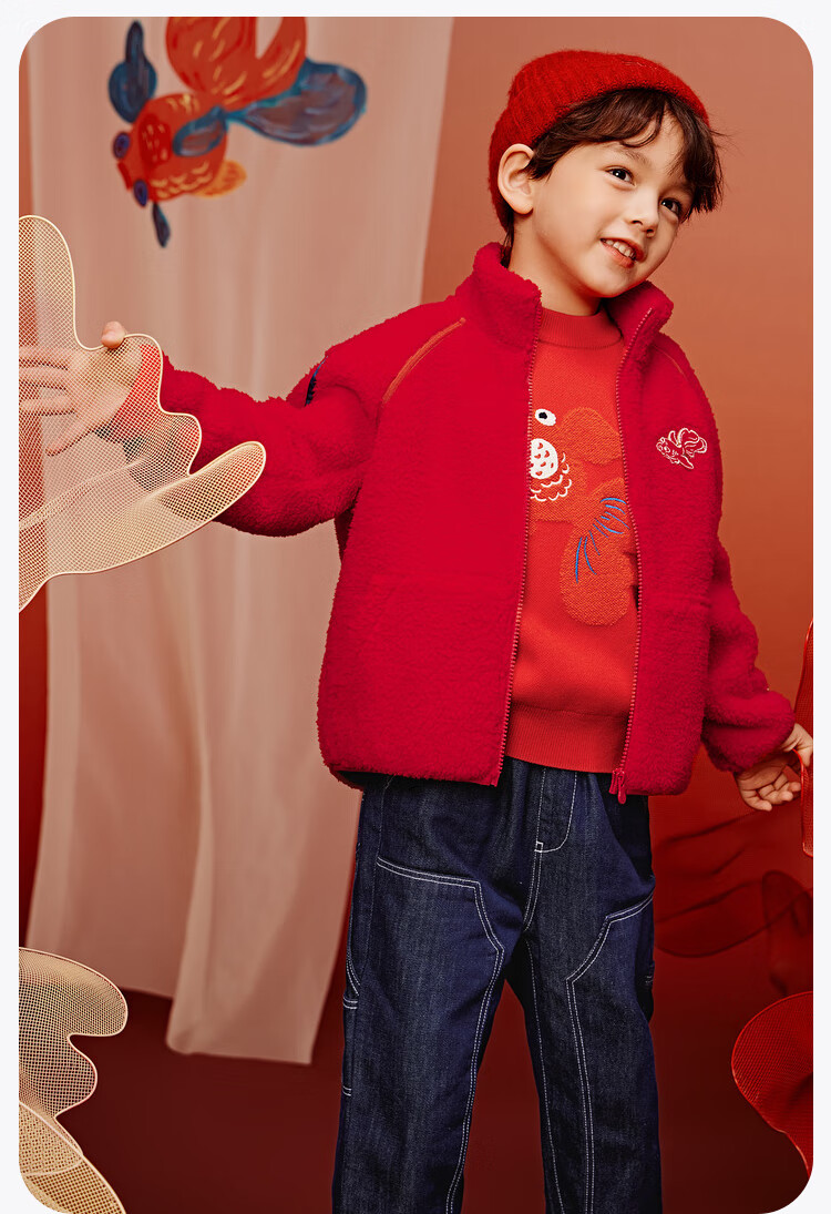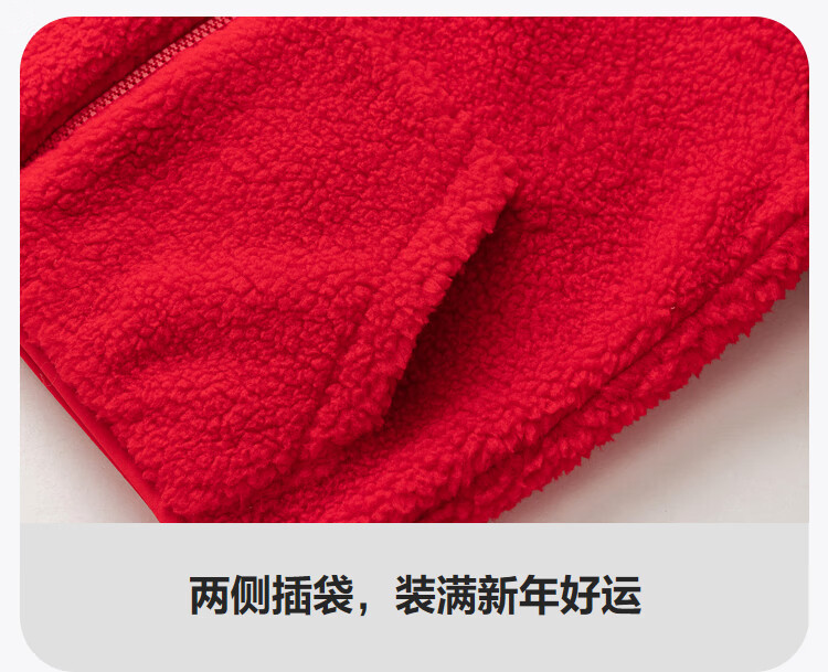 Mini Bala Red Jacket Antistatic Warm Plush Jacket for Boys and Girls New Autumn Chinese Red 110 cm