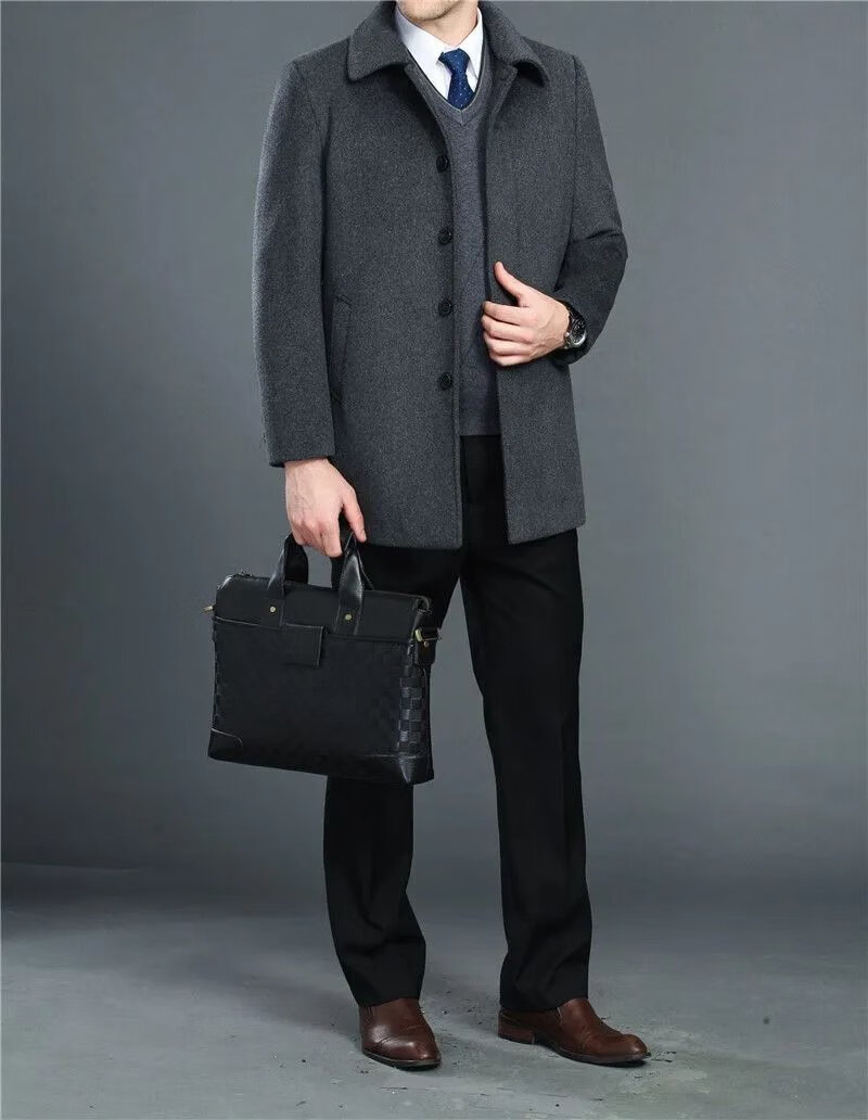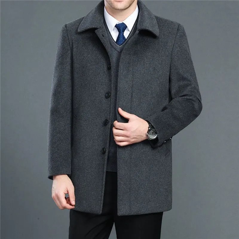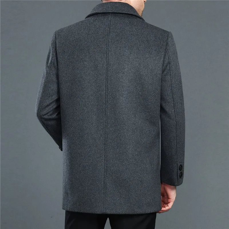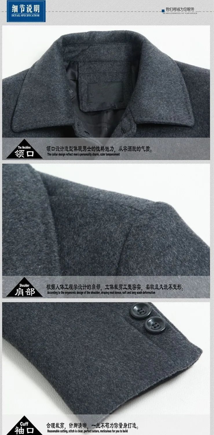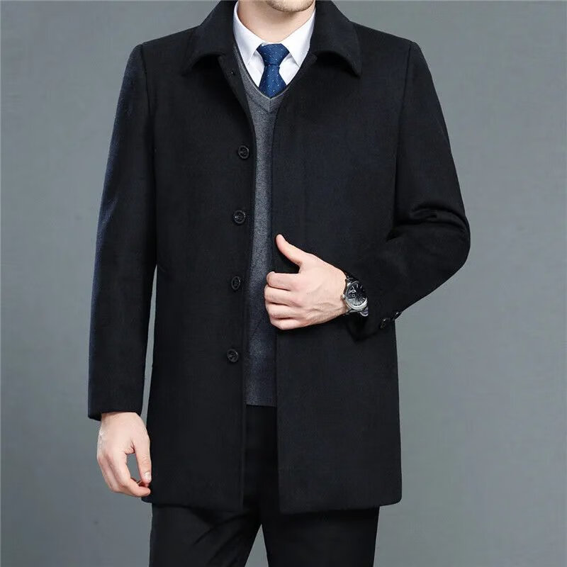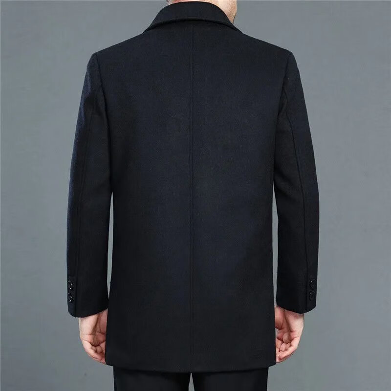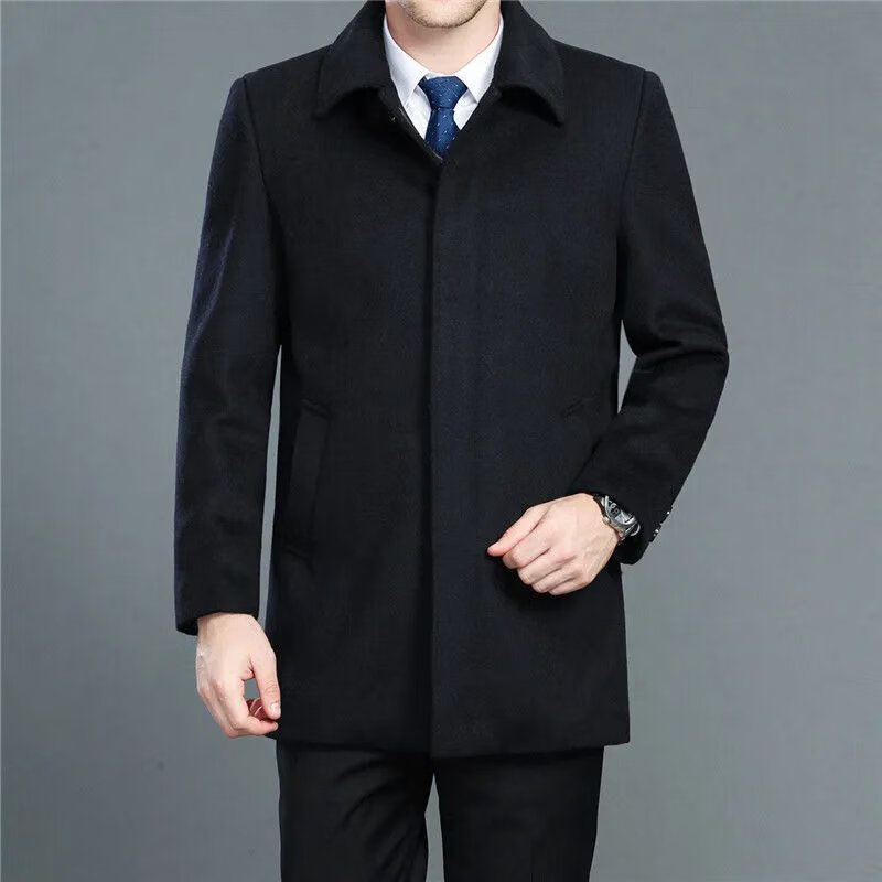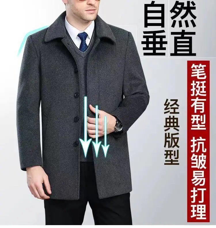 Hengyuanxiang autumn and winter cashmere coat for middle-aged and elderly men, medium-length, thickened velvet top, daddy's large size woolen woolen coat, navy blue, medium-length, no velvet, 200/5XL 210-225Jin Jin is equal to 0.5 kg