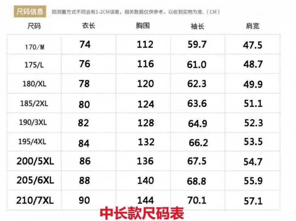 China (cm) 165 / 88-90 170 / 96-98 175 / 108-110 180 / 118-122 185 / 126-130