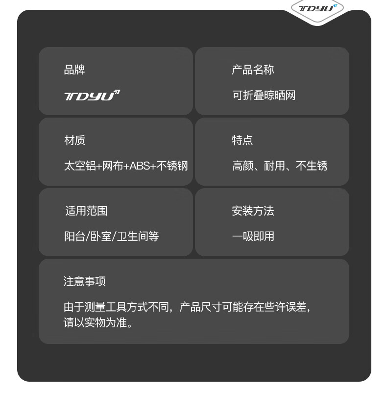 Tiandiyu (TDYU) suction cup clothes drying rack balcony household folding drying net bay window retractable clothes rod indoor space utilization artifact flagship model suction cup clothes drying rod + pull-out net