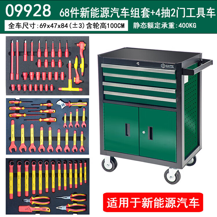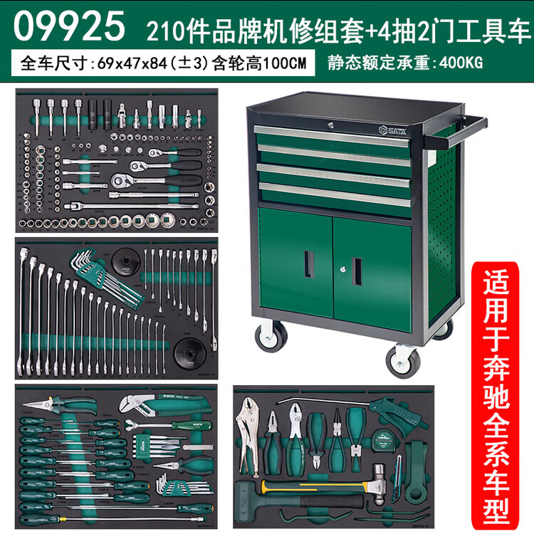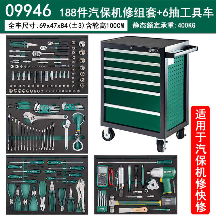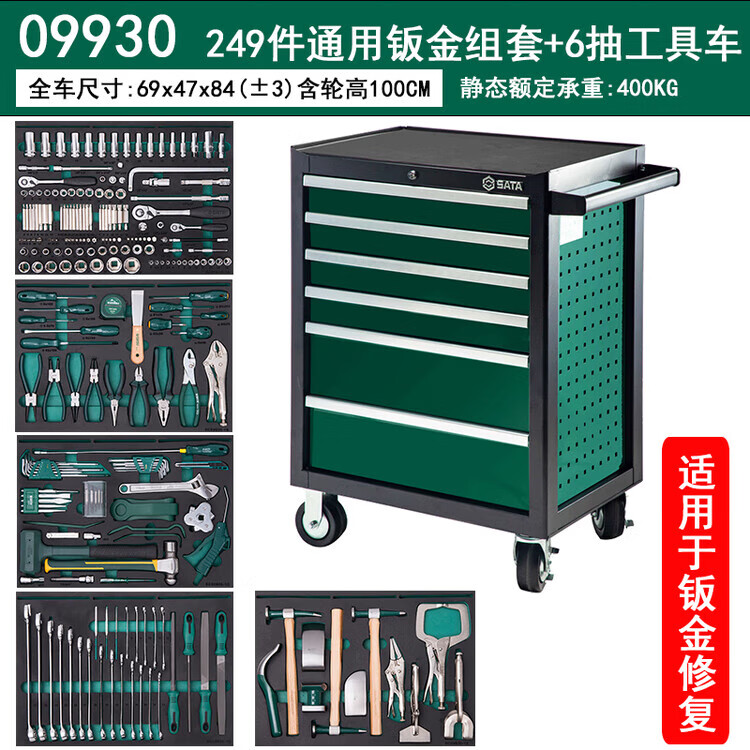 SATA Auto Repair Tool Trolley Auto Maintenance Tool Trolley Set Multi-Specifications 242 Pieces Universal Mechanical Repair Tool Trolley Set 09932