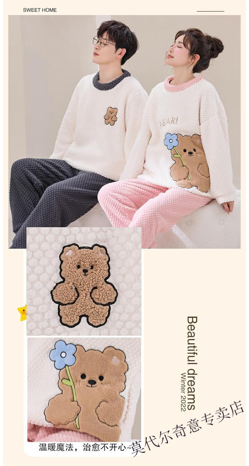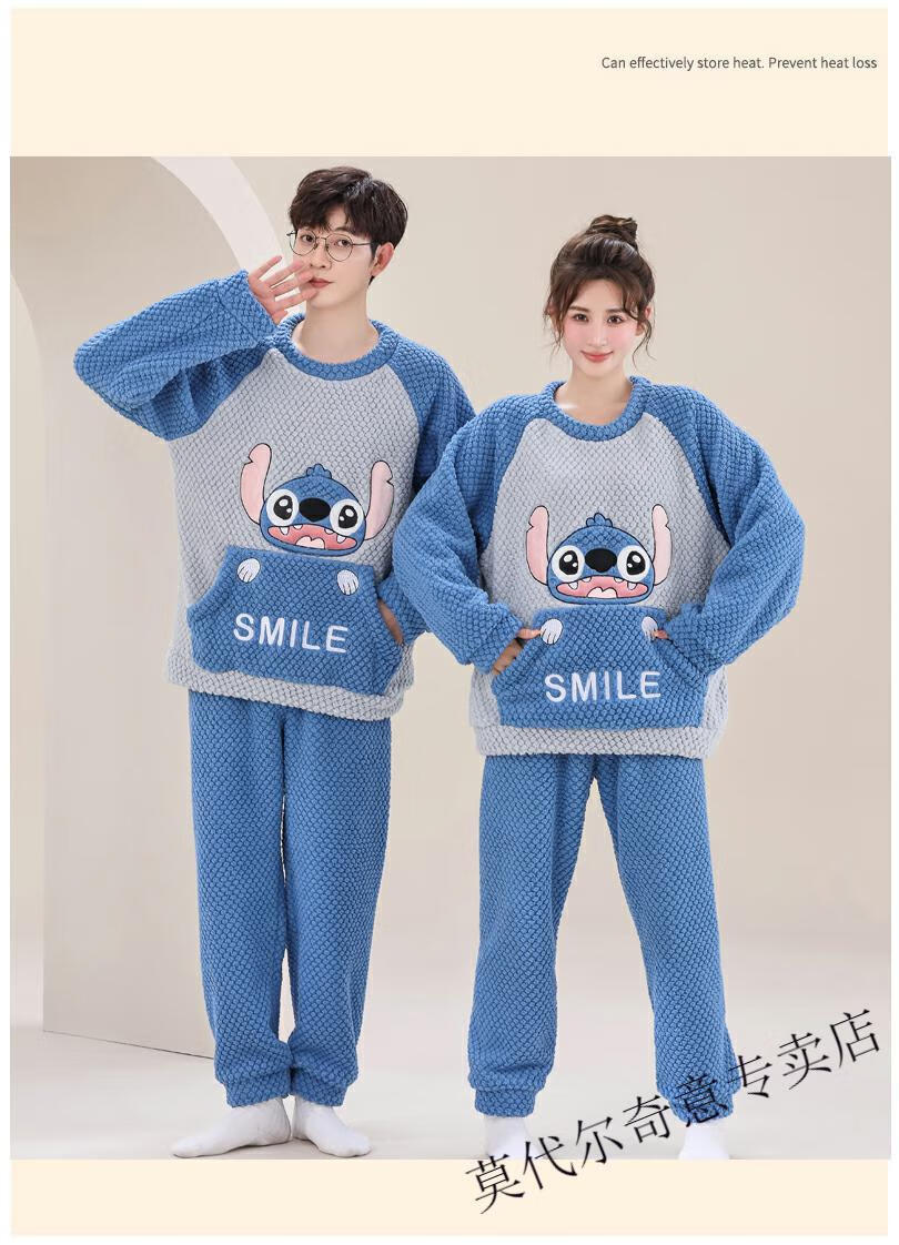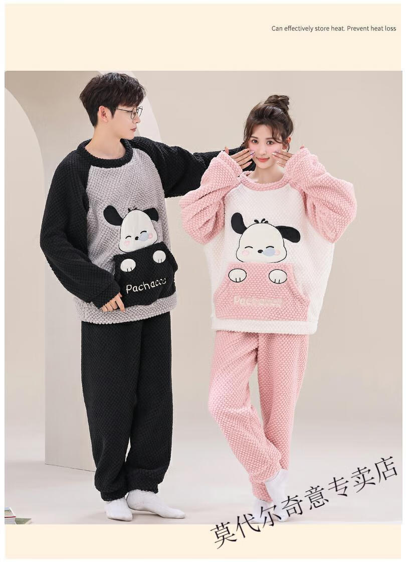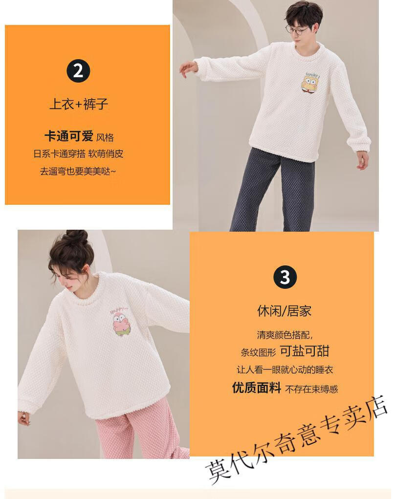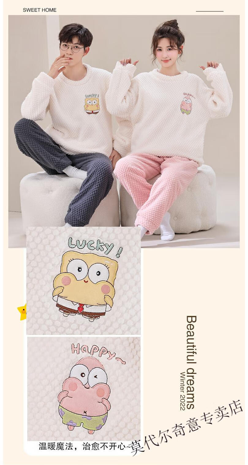 Modal buy one get one free couples pajamas for women winter coral velvet plus velvet thickening men's flannel home clothes suit winter velvet gray pink SpongeBob SquarePants M female M + male XL