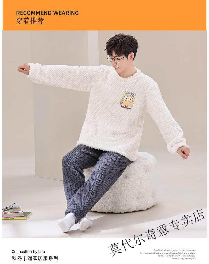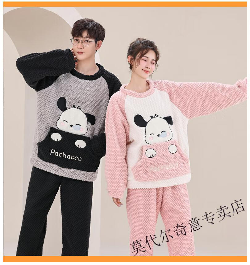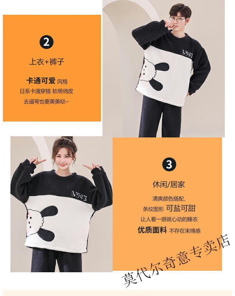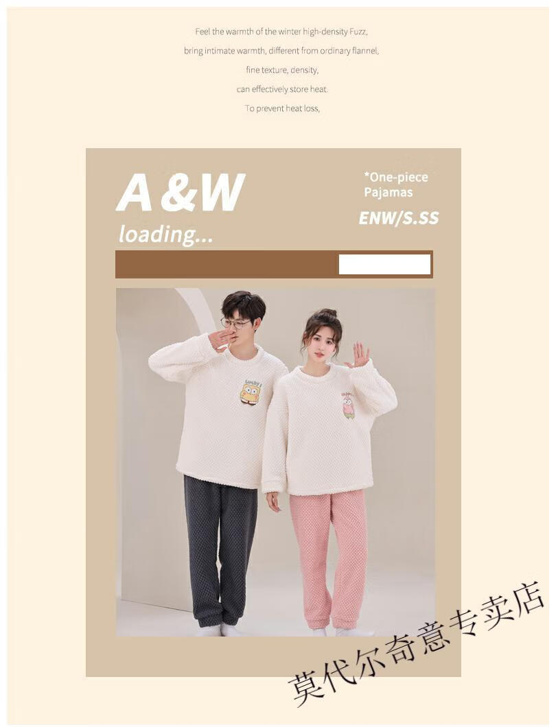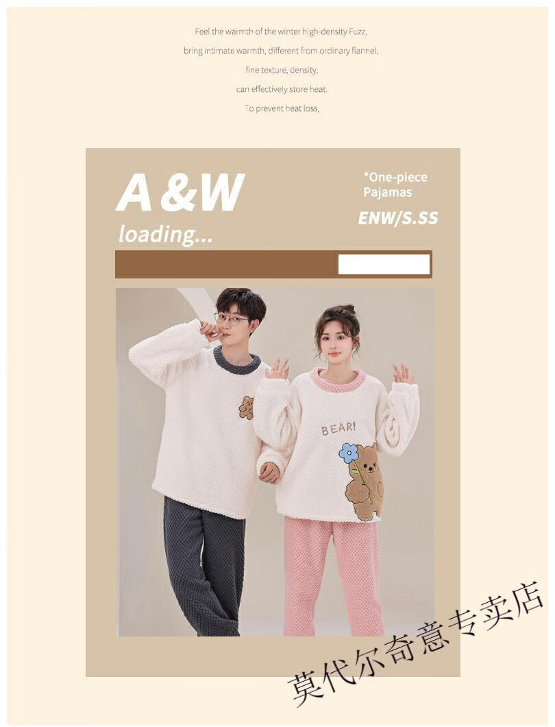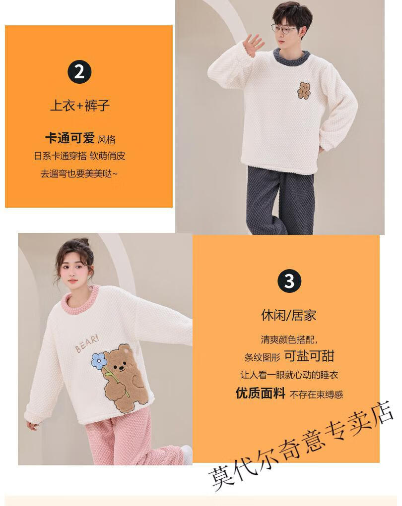 Modal buy one get one free couples pajamas for women winter coral velvet plus velvet thickening men's flannel home clothes suit winter velvet gray pink SpongeBob SquarePants M female M + male XL