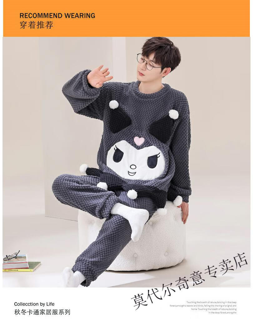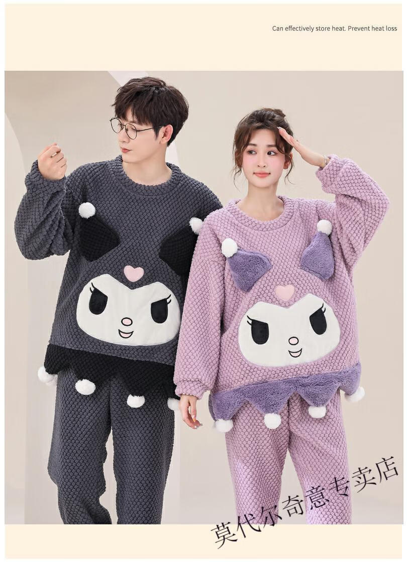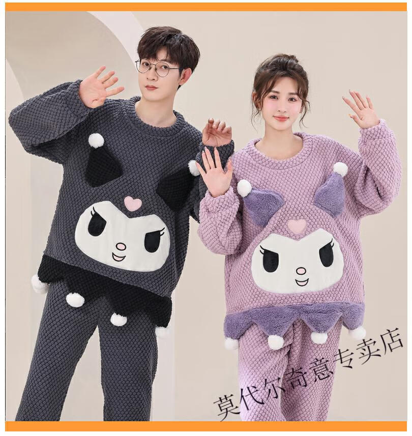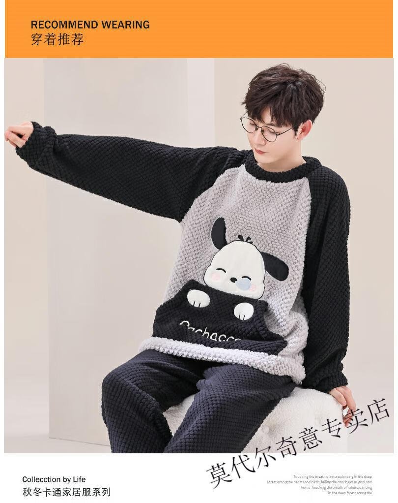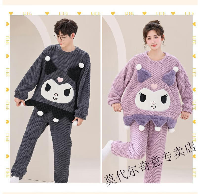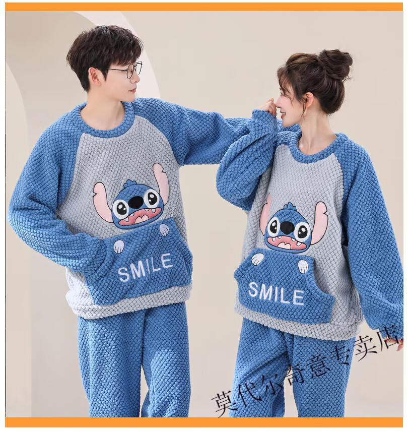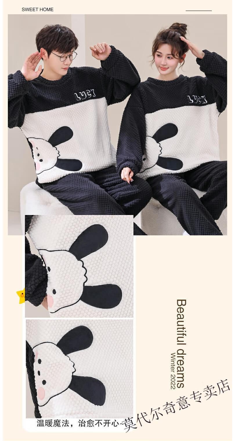 Modal buy one get one free couples pajamas for women winter coral velvet plus velvet thickening men's flannel home clothes suit winter velvet gray pink SpongeBob SquarePants M female M + male XL