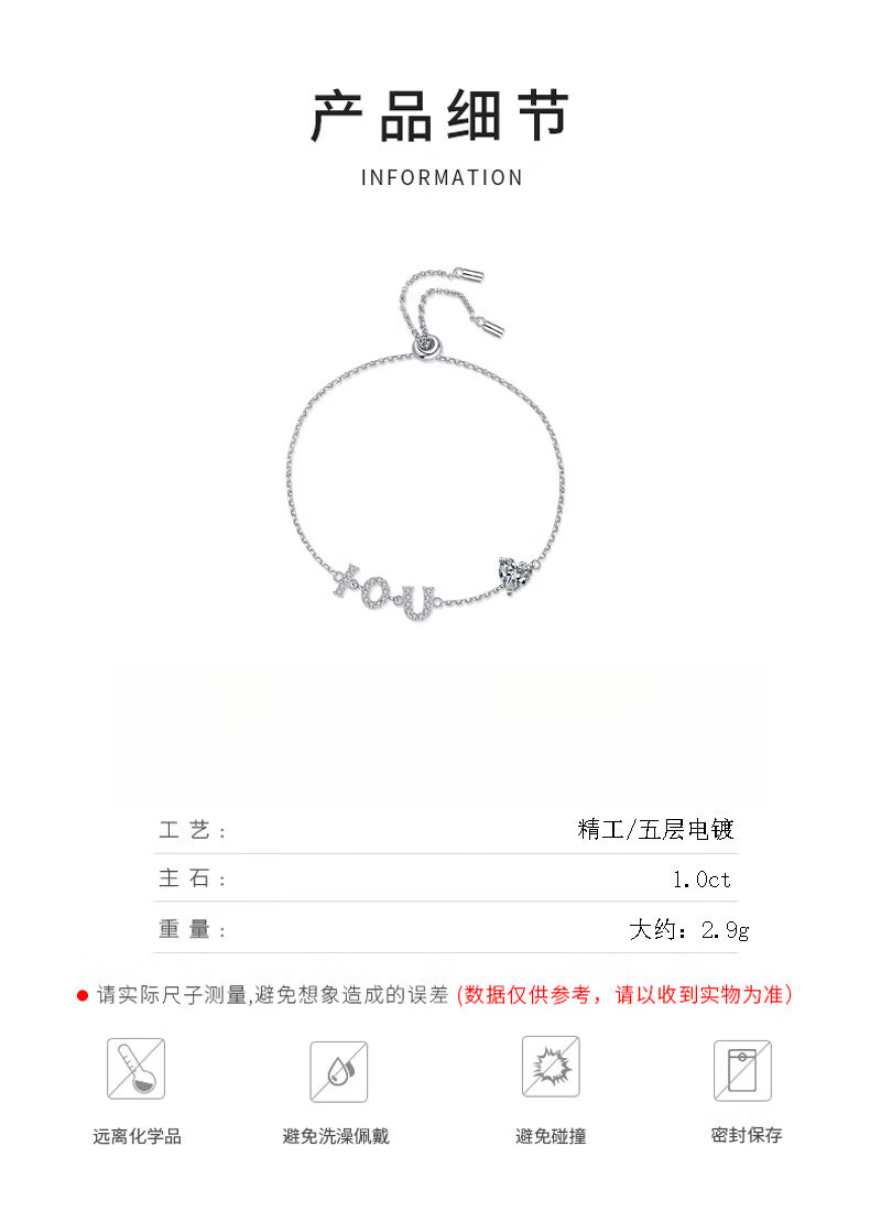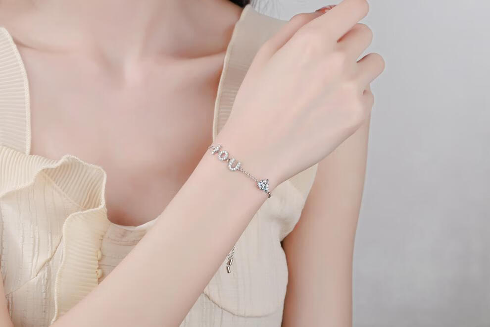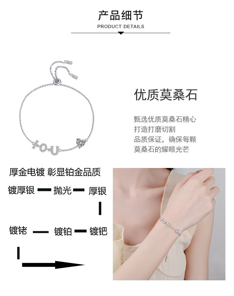 Tiansi pt950 platinum bracelet women's gold store style moissanite bracelet women's love Valentine's Day bracelet push-pull adjustable delivery