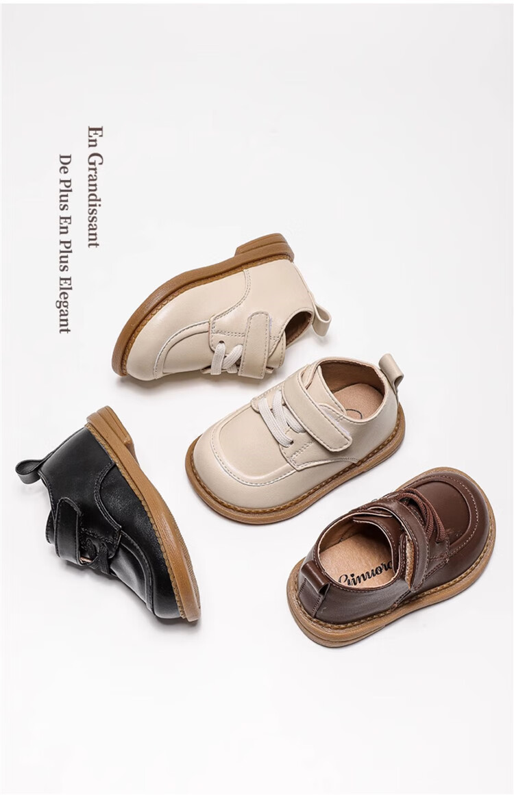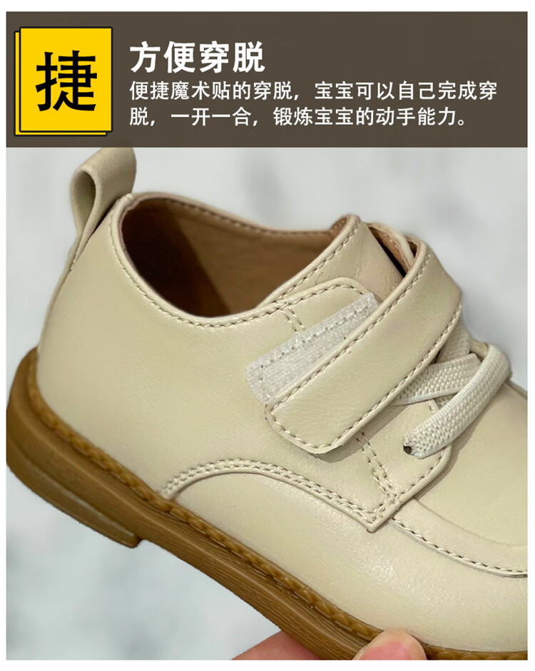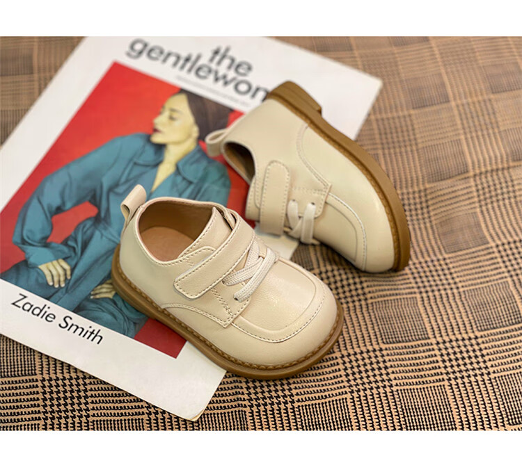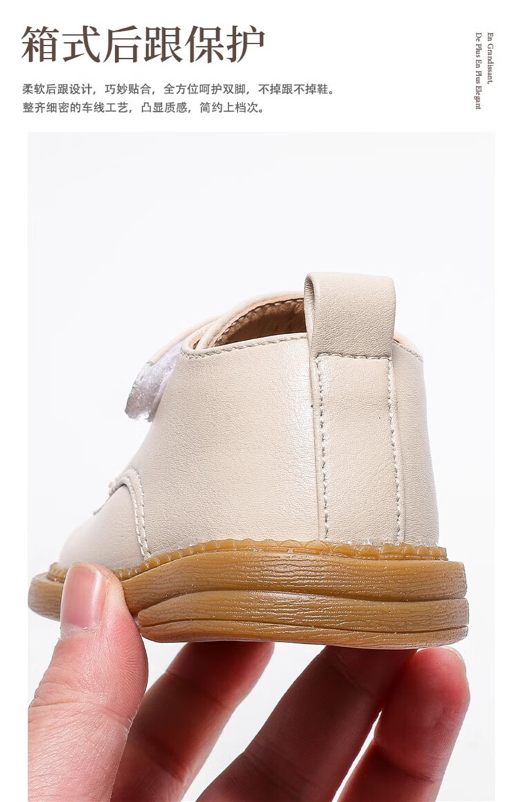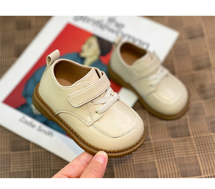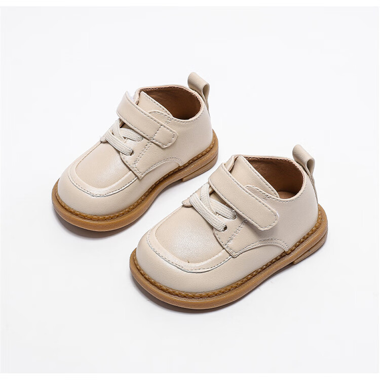 Chino Mouse Official Authentic Children's Toddler Shoes 1-3 Years Old Soft Soled British Style Small Leather Shoes for Boys and Girls Baby Shoes Beige 19 Inner Length 13.5cm