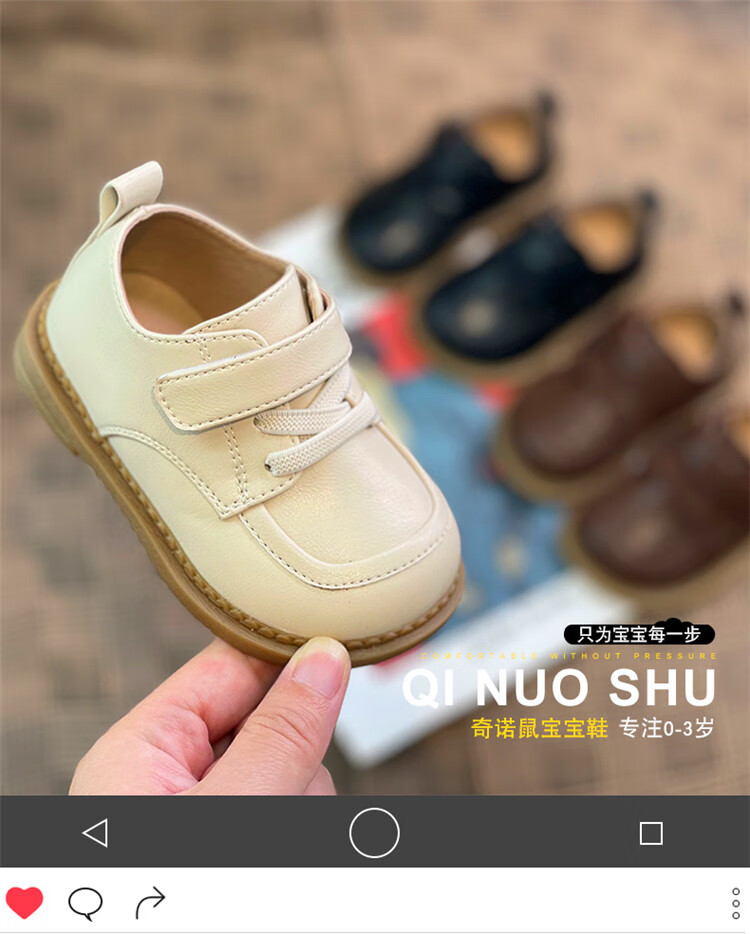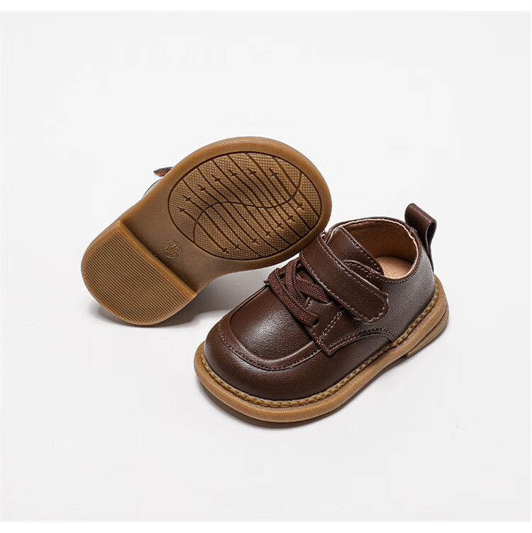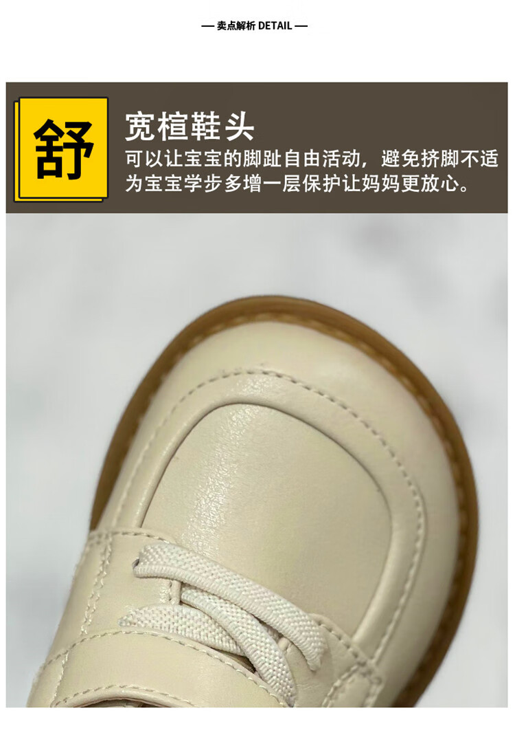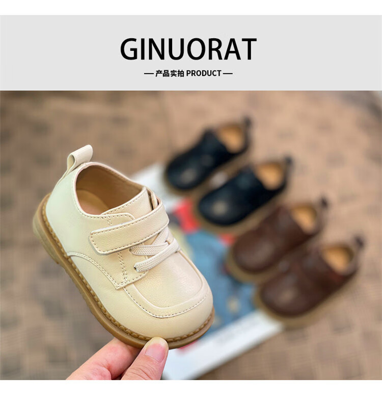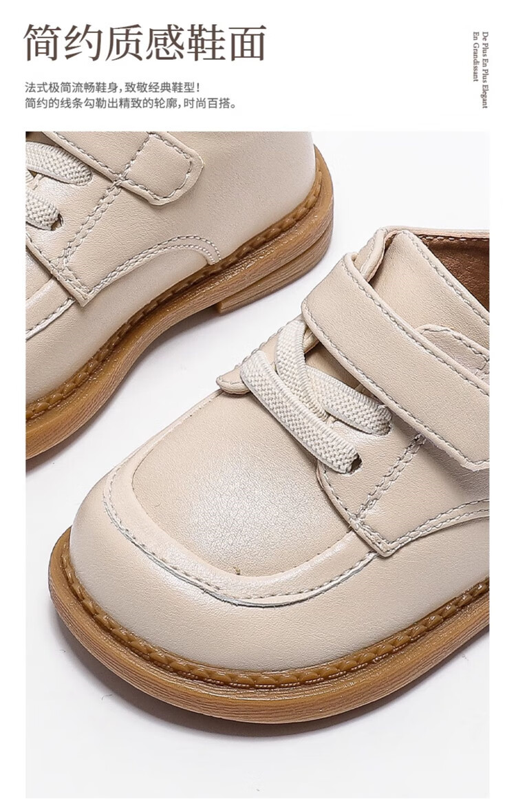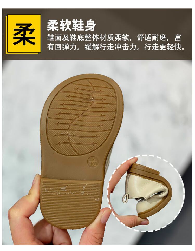 Chino Mouse Official Authentic Children's Toddler Shoes 1-3 Years Old Soft Soled British Style Small Leather Shoes for Boys and Girls Baby Shoes Beige 19 Inner Length 13.5cm