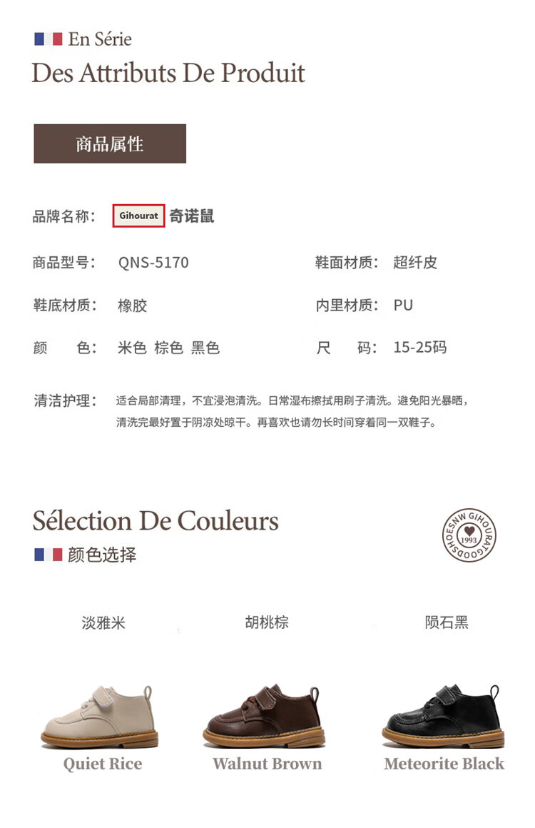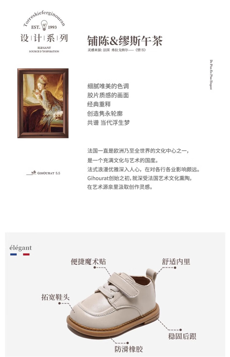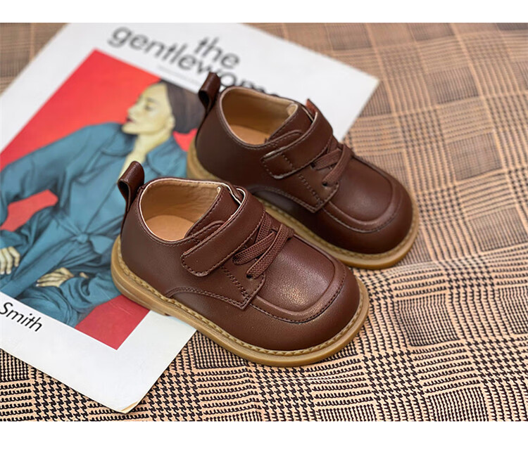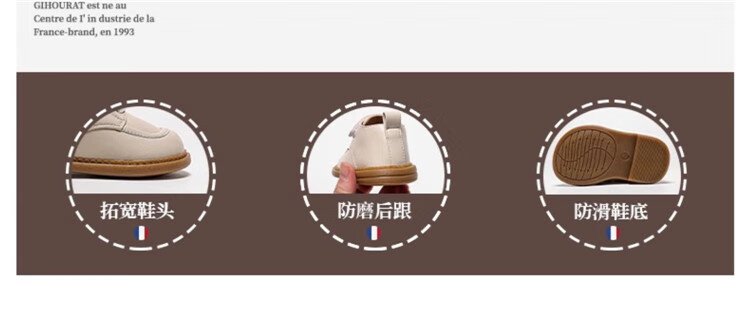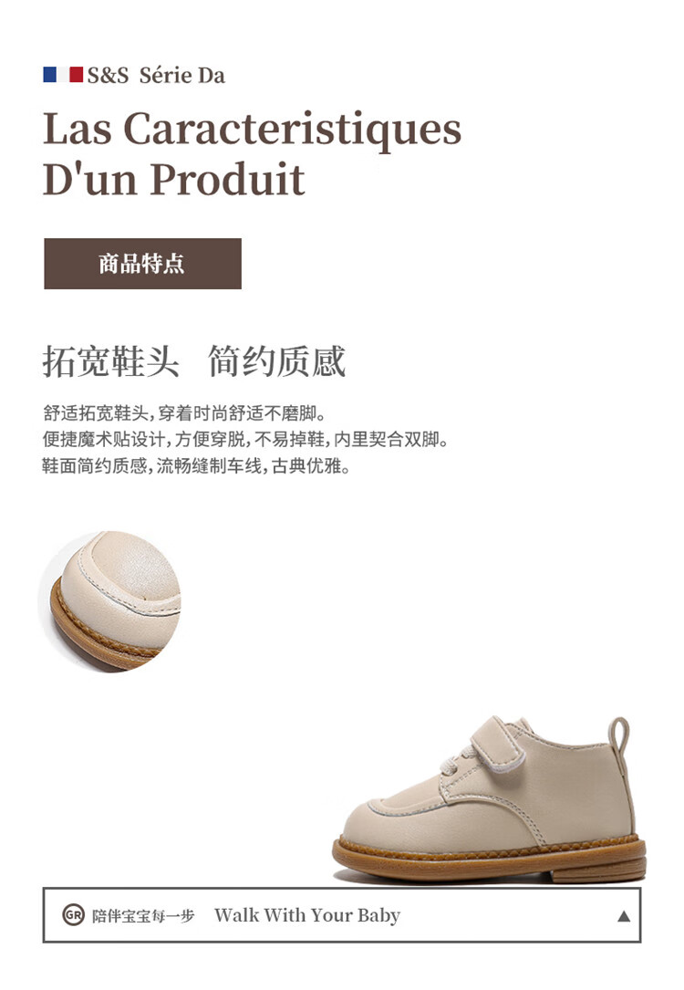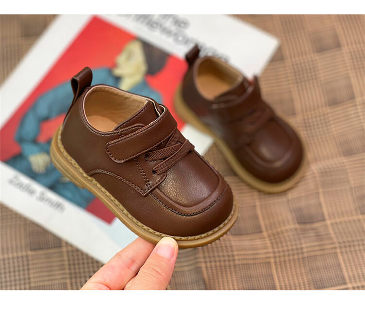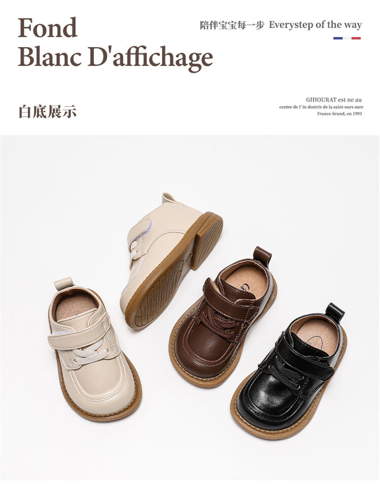 Chino Mouse Official Authentic Children's Toddler Shoes 1-3 Years Old Soft Soled British Style Small Leather Shoes for Boys and Girls Baby Shoes Beige 19 Inner Length 13.5cm