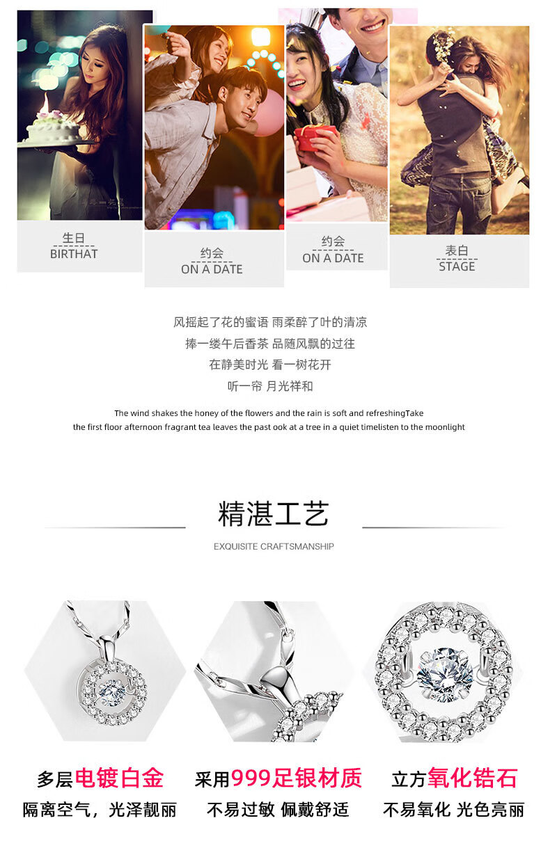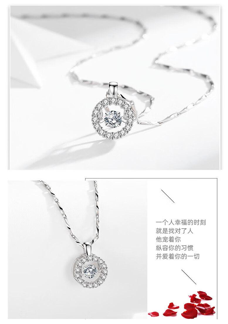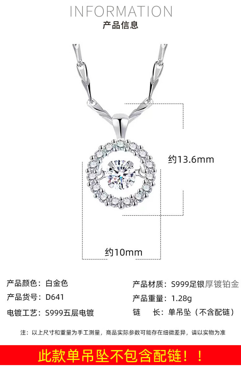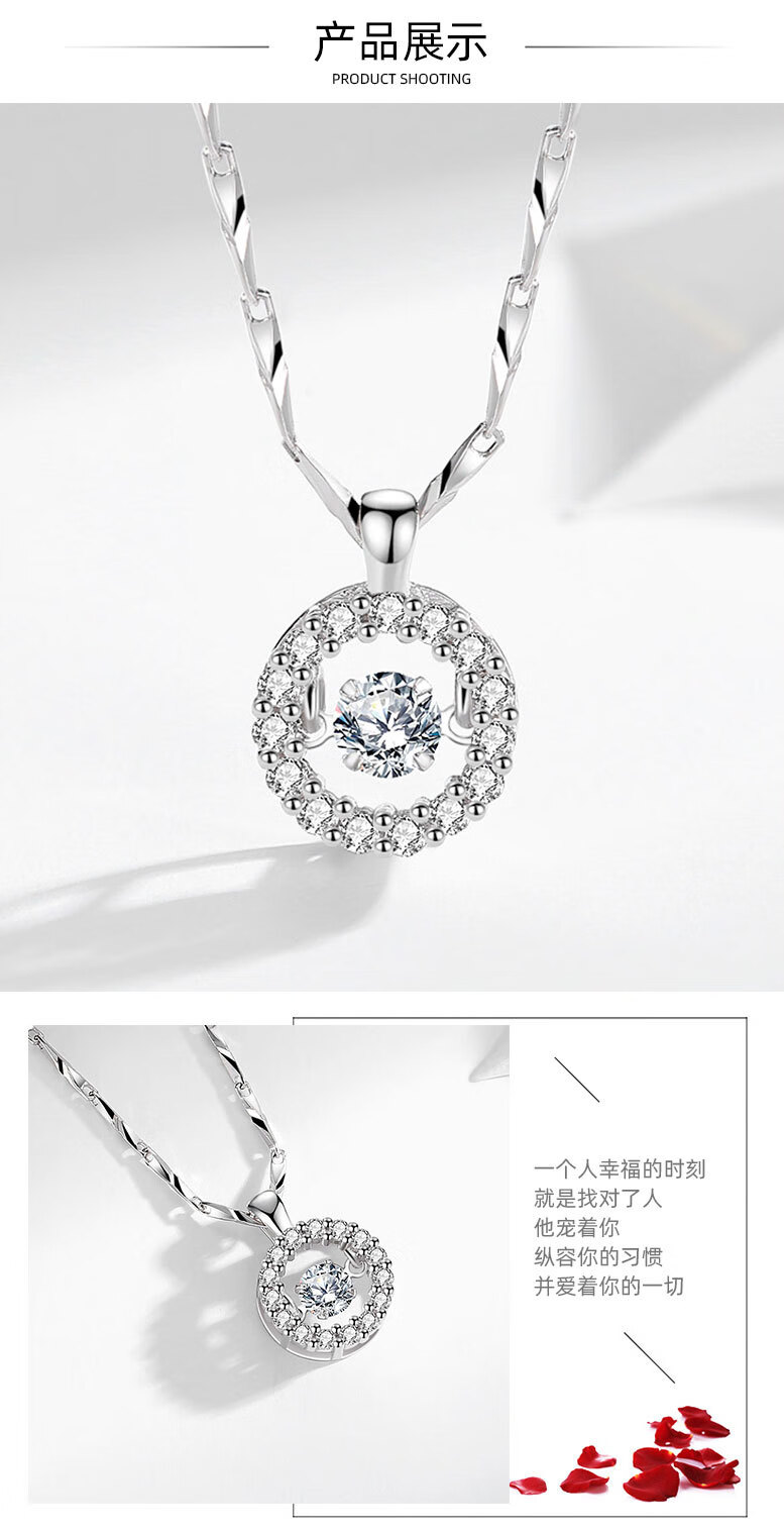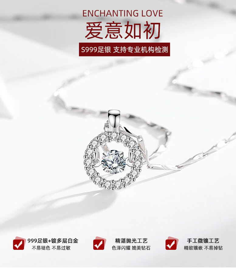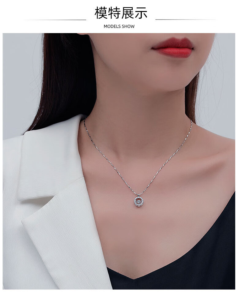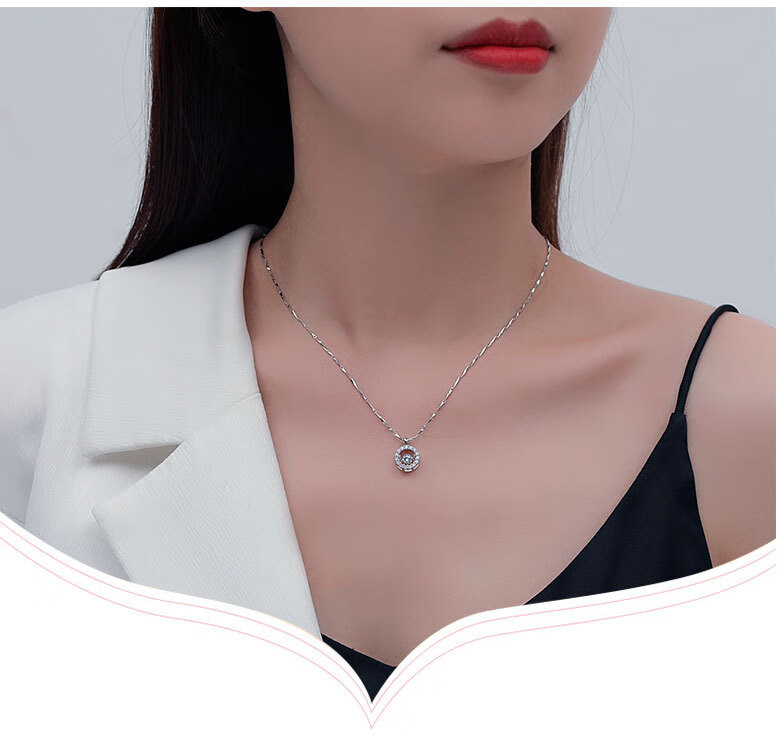 Tiansi Pt950 platinum necklace for women beating heart K gold silver pendant geometric round diamond versatile jewelry gift for women single pendant without chain