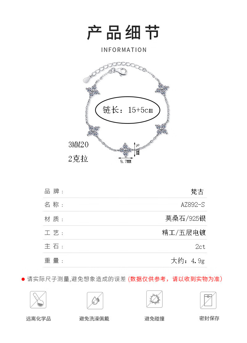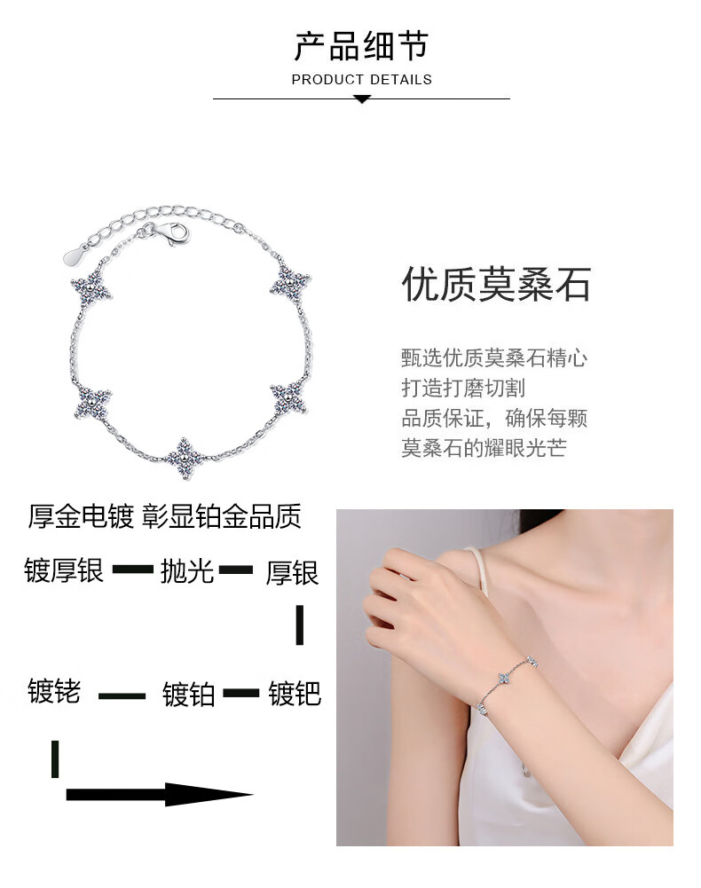 Yuanzu IPGpt950 platinum bracelet for women Moissanite six-pointed star engagement confession gift light luxury color gold K gold bracelet for women