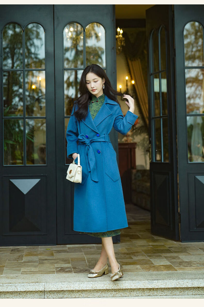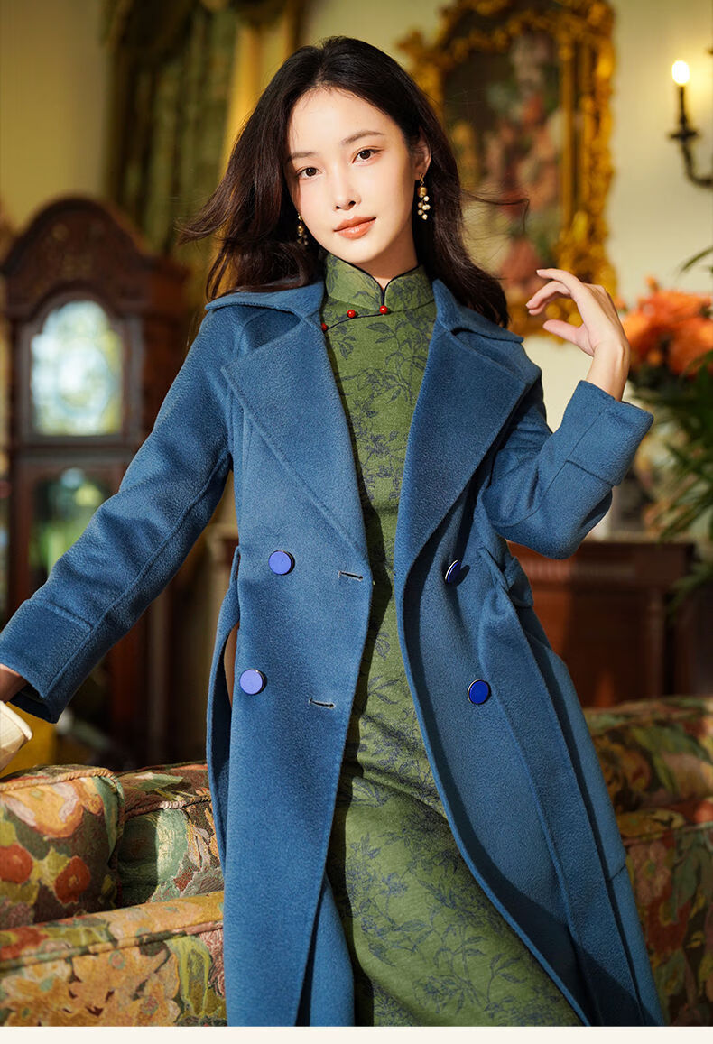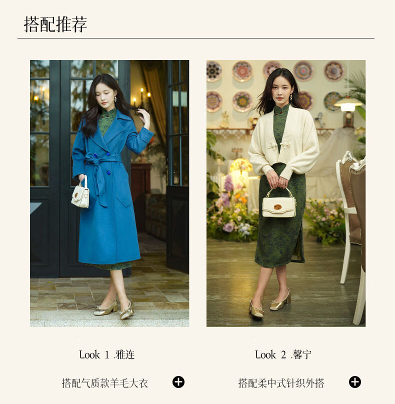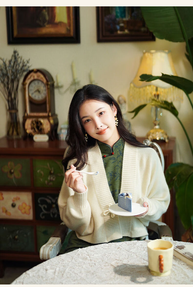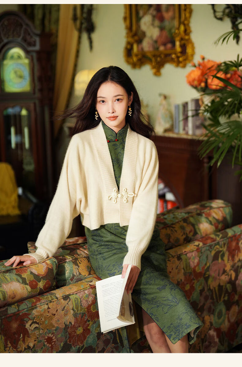 E.Beauty Shiwan 2025 spring new thickened brushed knitted new Chinese style daily long-sleeved elegant cheongsam turquoise green M