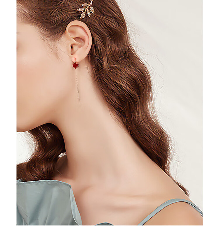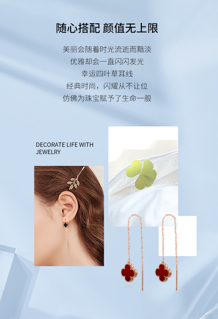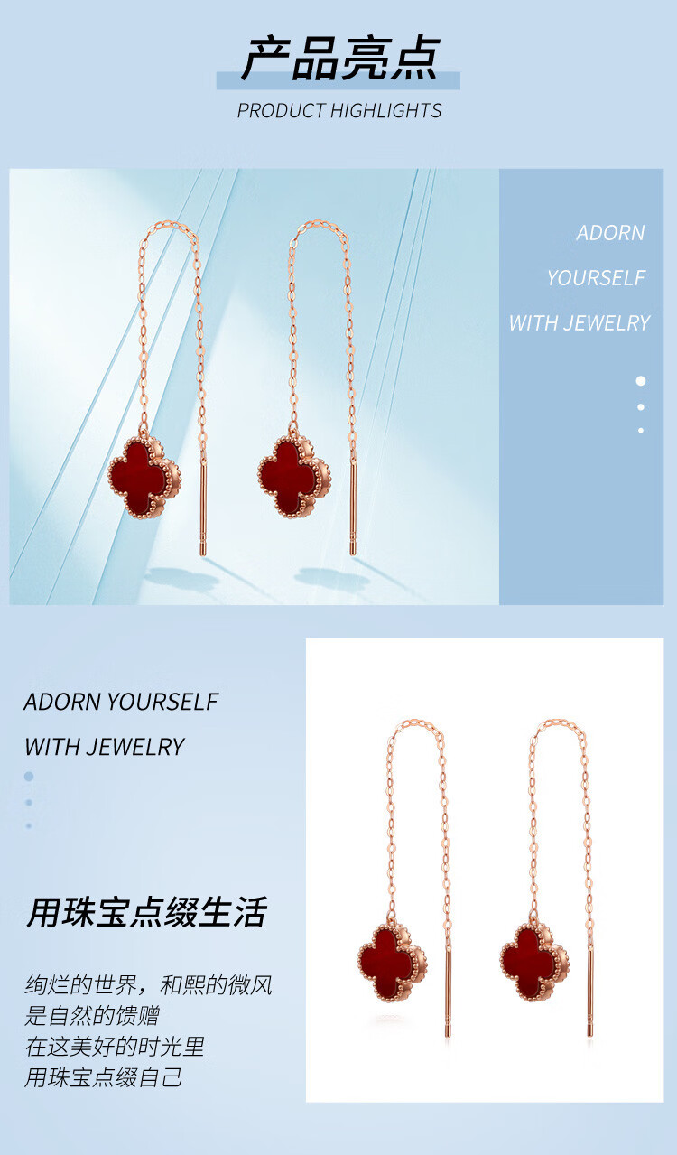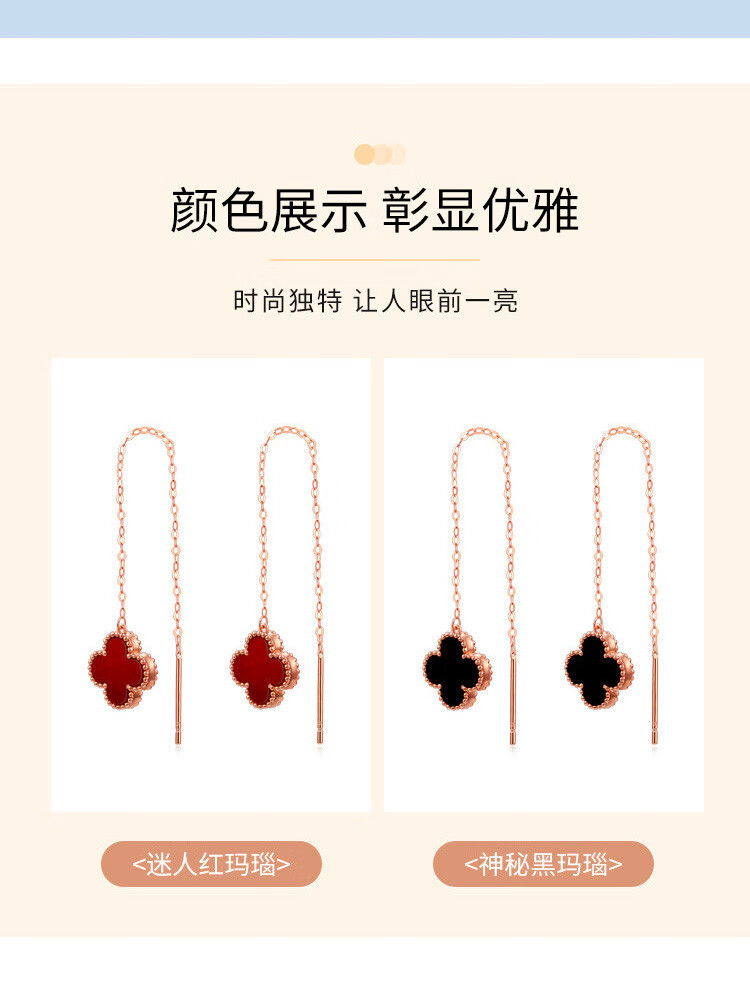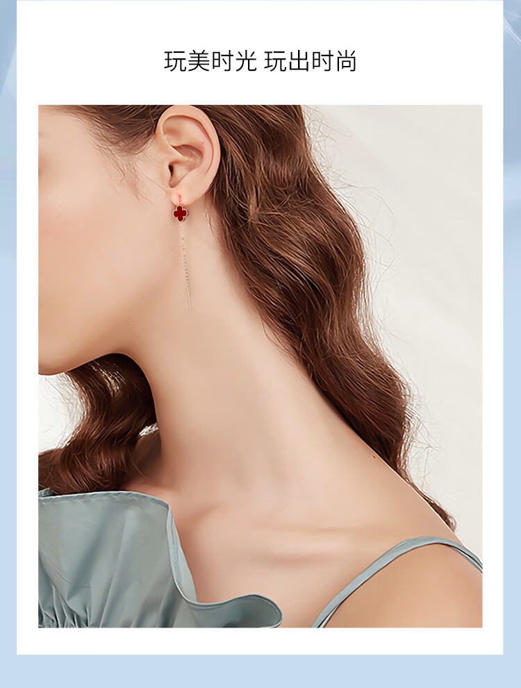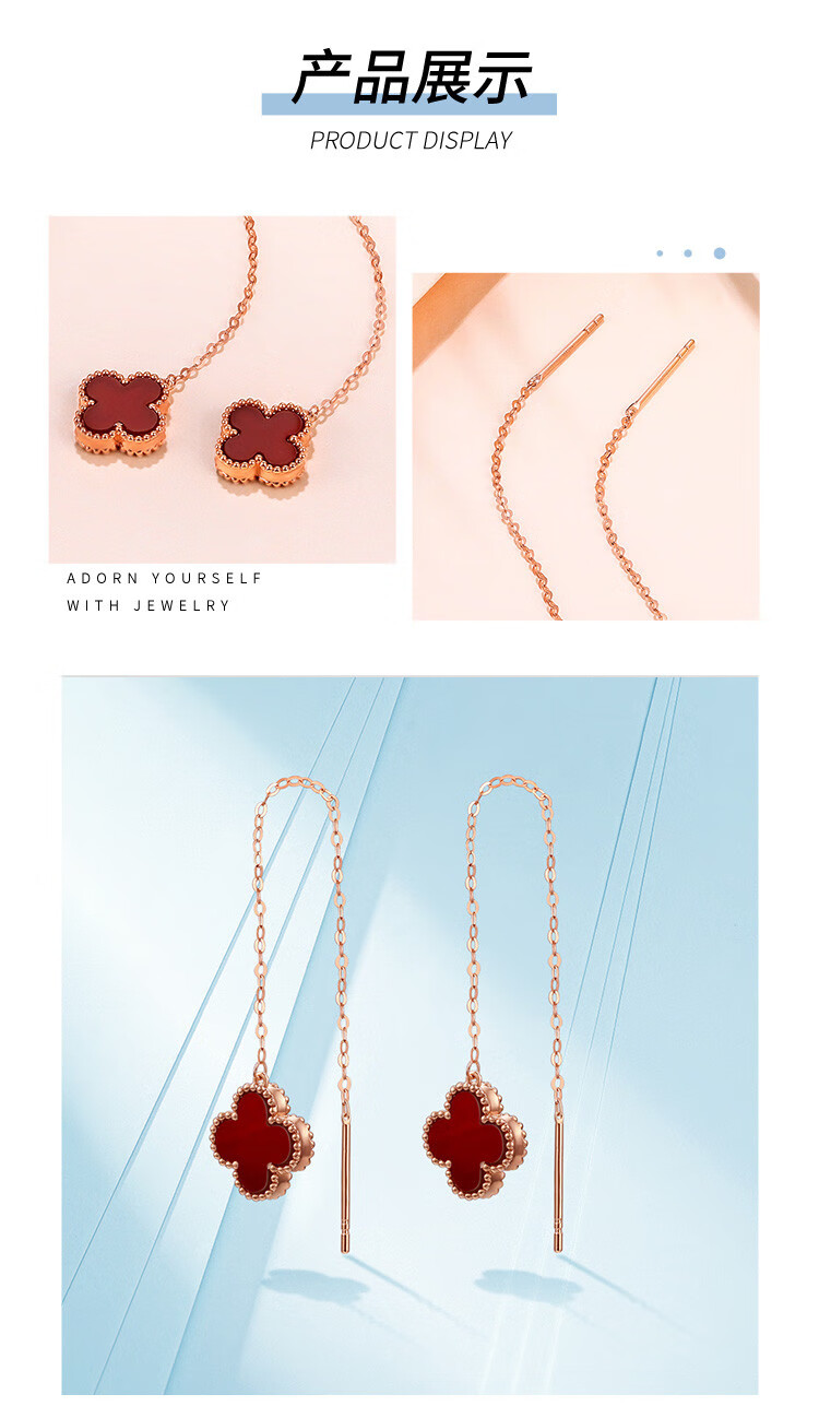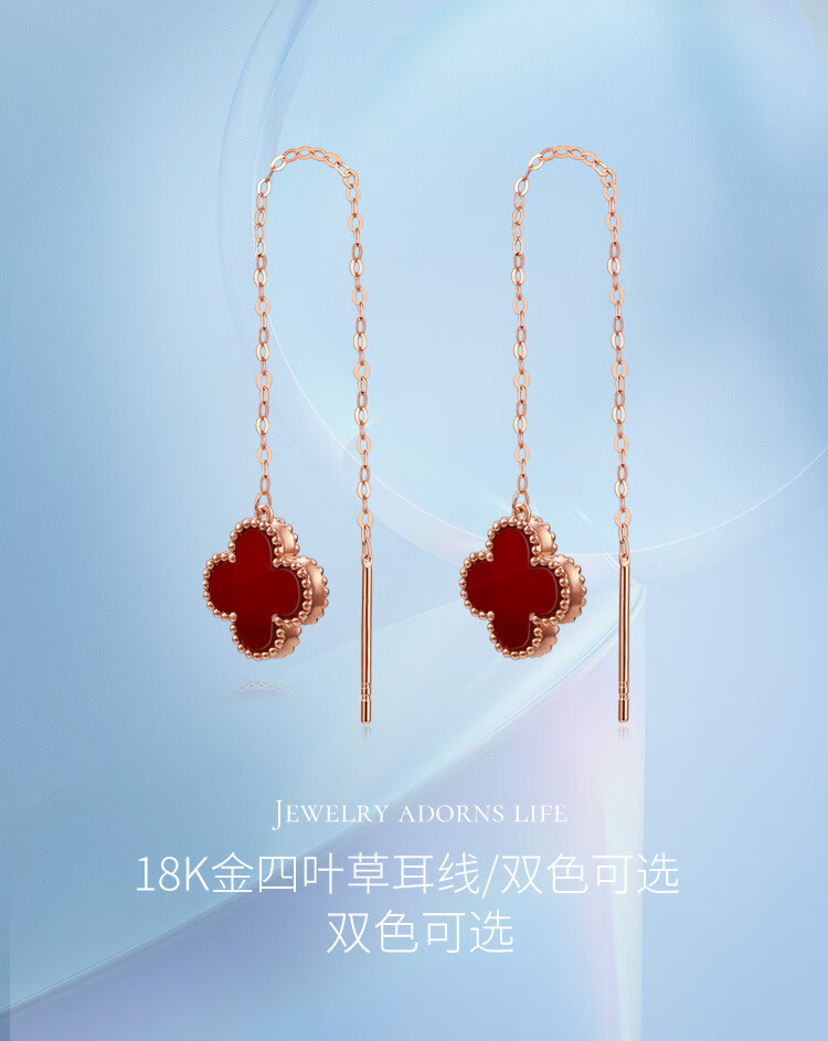 Fire shell 18K gold four-leaf clover ear wire color gold rose gold gold earrings earrings au750 gold earrings 520 Valentine's Day gift 18K rose gold red agate