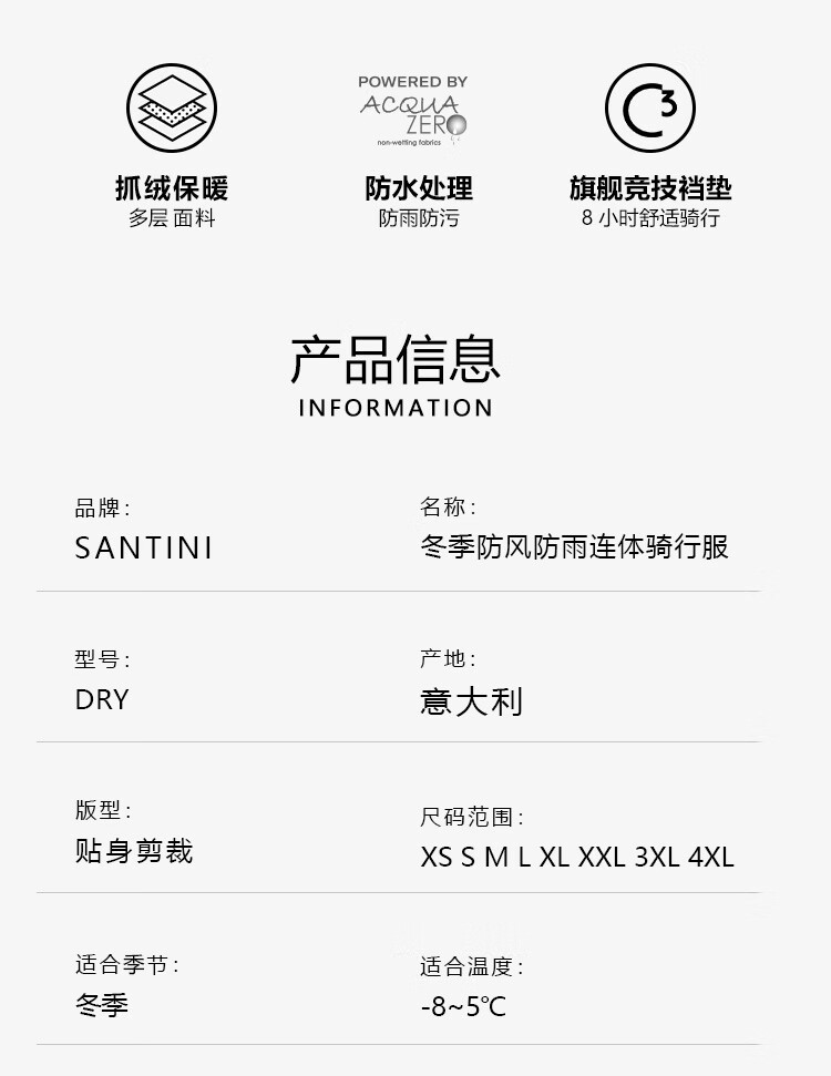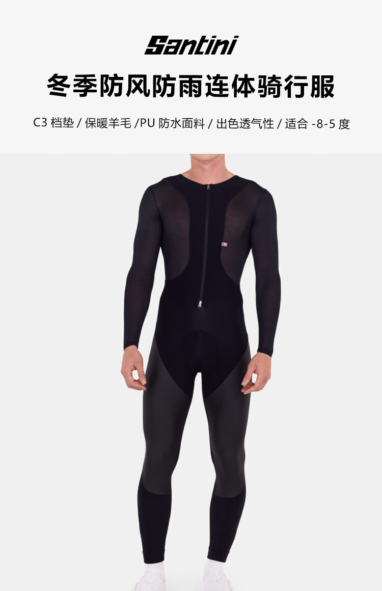SANTINI One-piece Cycling Suit Warm DRY Men's Winter Rainproof C3 Pad Suitable for -8~5 Degrees Black L