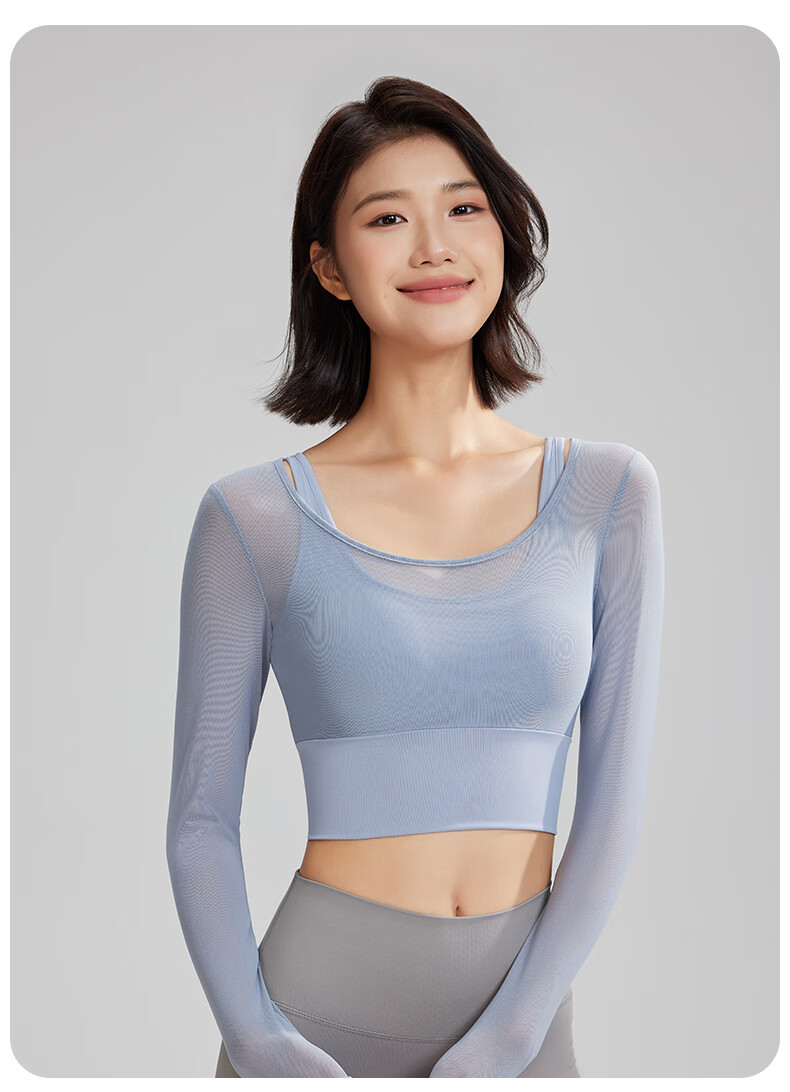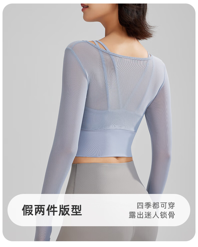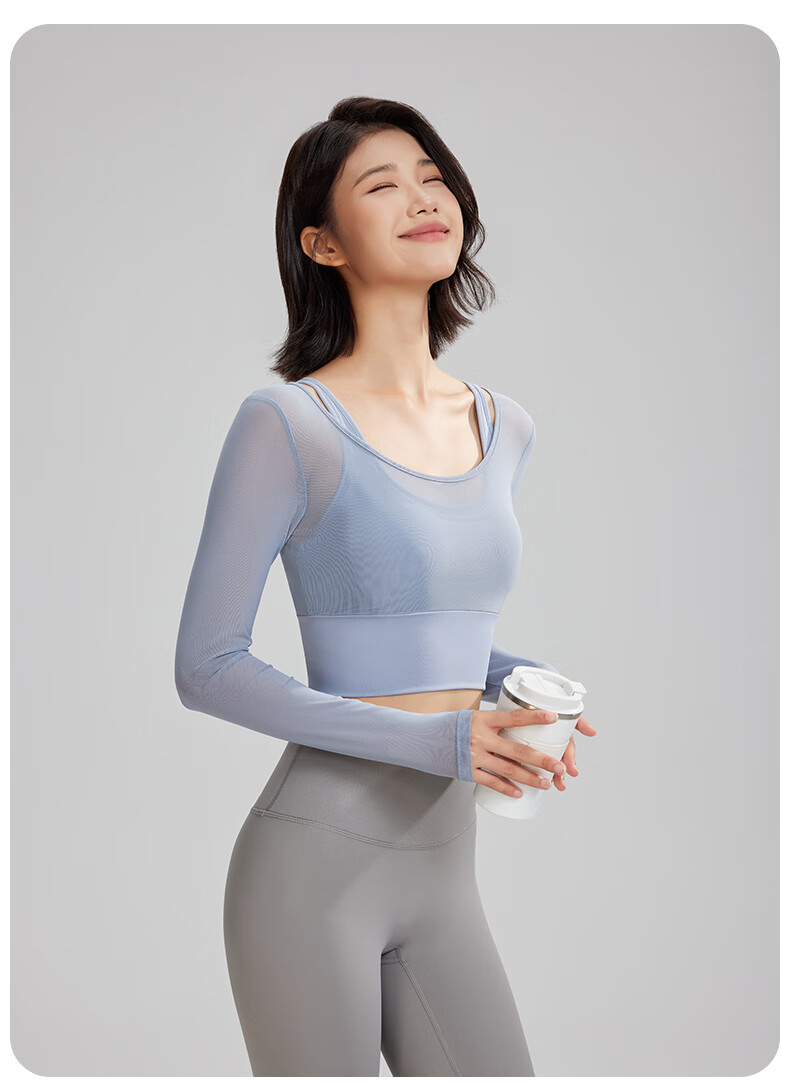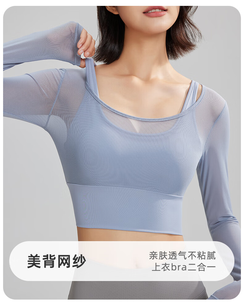 Lu Geli Yoga Wear Women's Autumn and Winter Sports Suit with Breast Pad and Beautiful Back Two-piece Long Sleeve Fitness Pilates Training Wear Two-piece Yoga Wear Blue + Gray XL Recommended 115-130 Jin Jin equals 0.5 kg