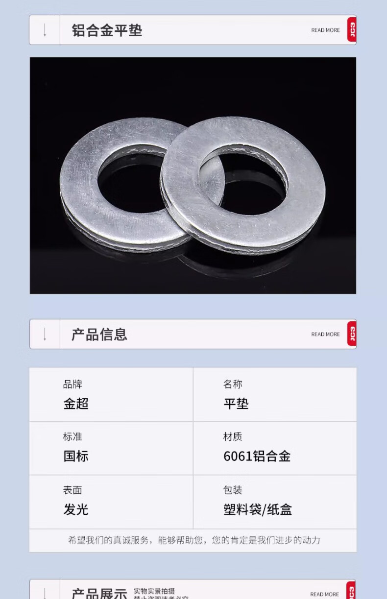Jinchao aluminum gasket aluminum alloy flat pad aluminum gasket M4M5M6M8M10M12M14 M12*24*2.5 (5 pieces)
