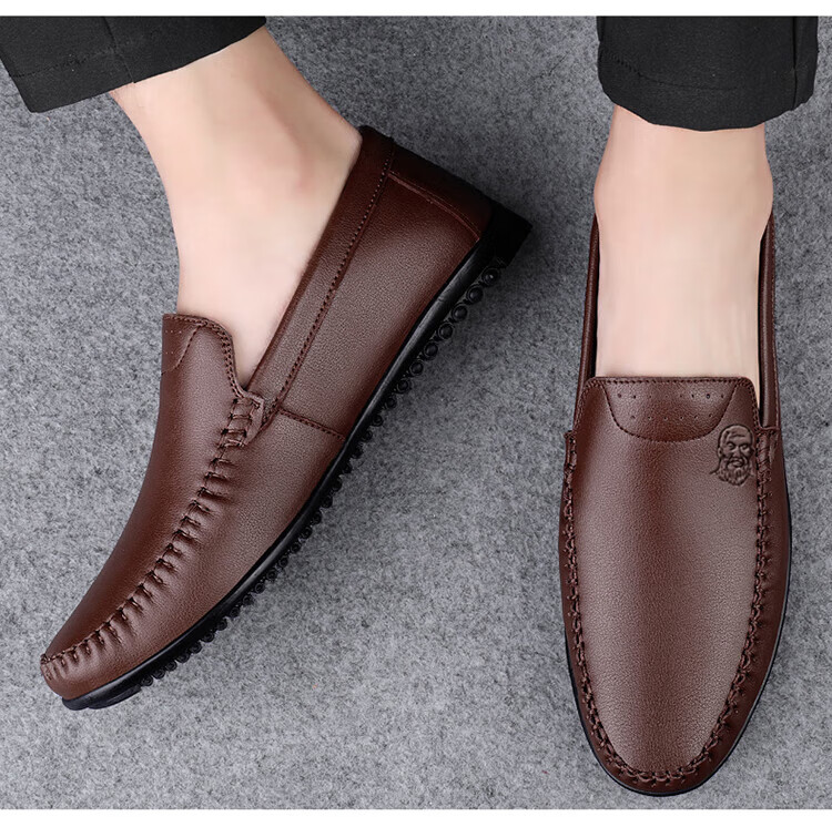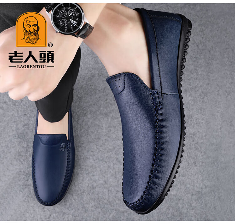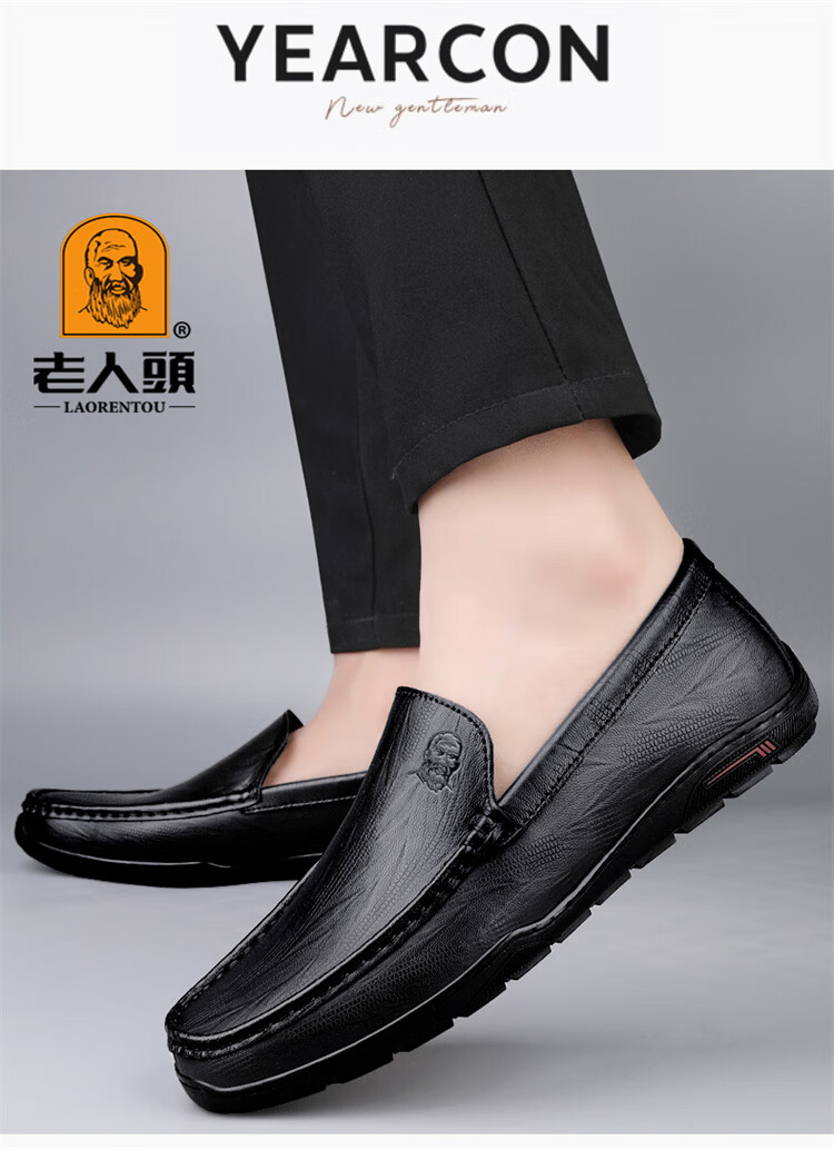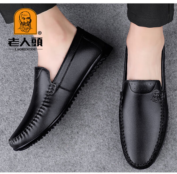 Old man's head 2025 new business casual beanie shoes for men and dad, comfortable one-step genuine leather soft sole non-slip high-end leather shoes black 2068 (hot seller) 40