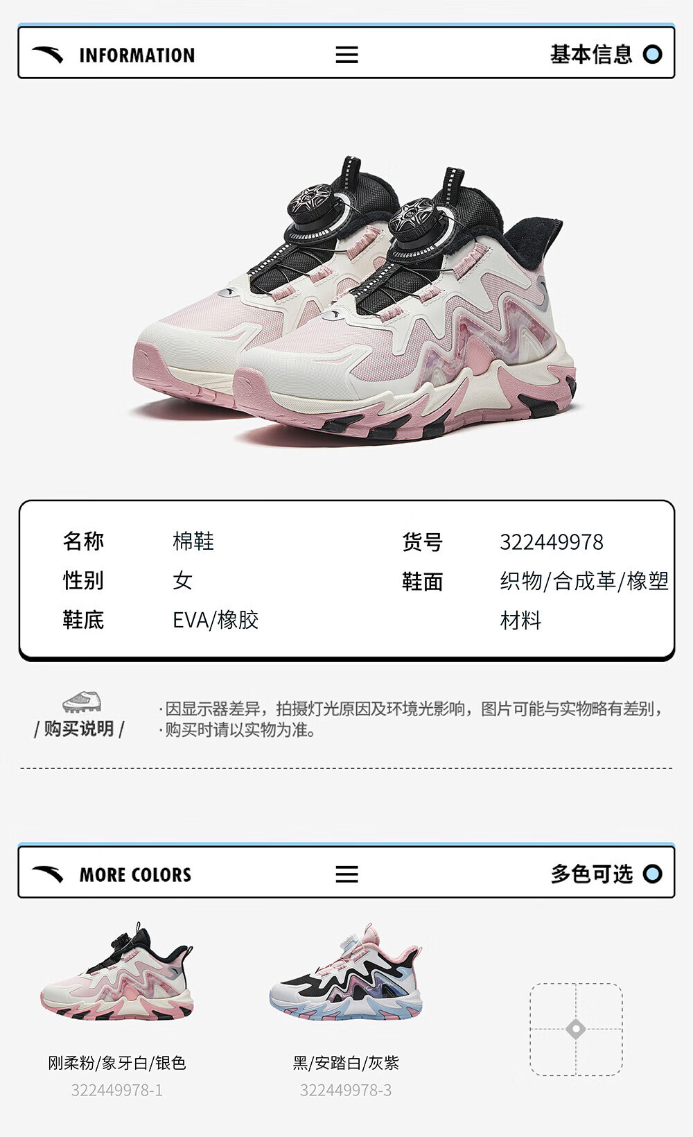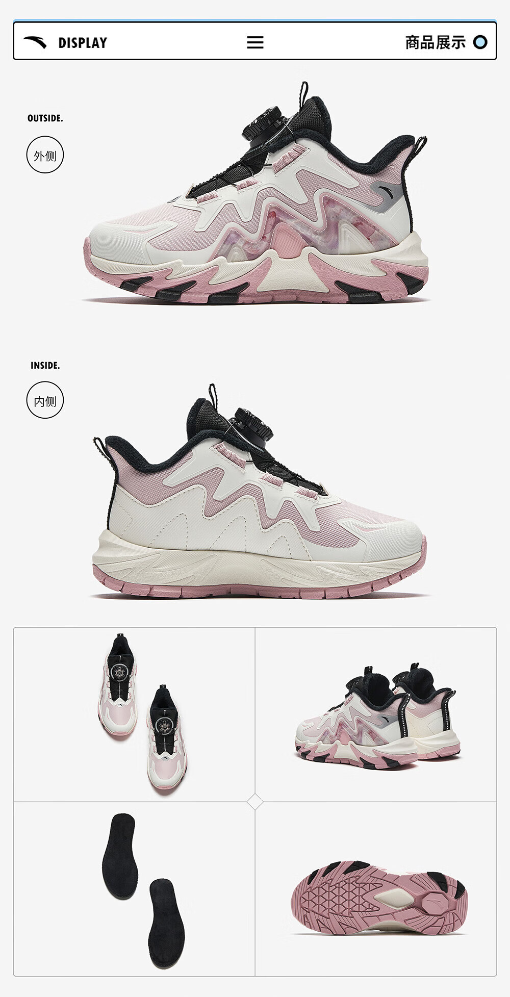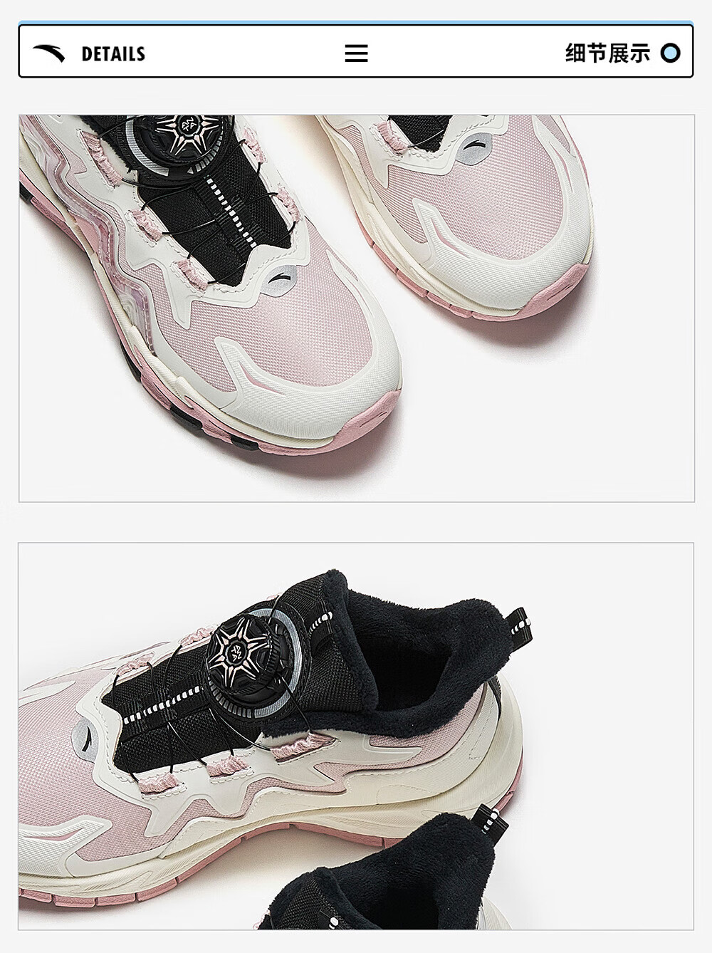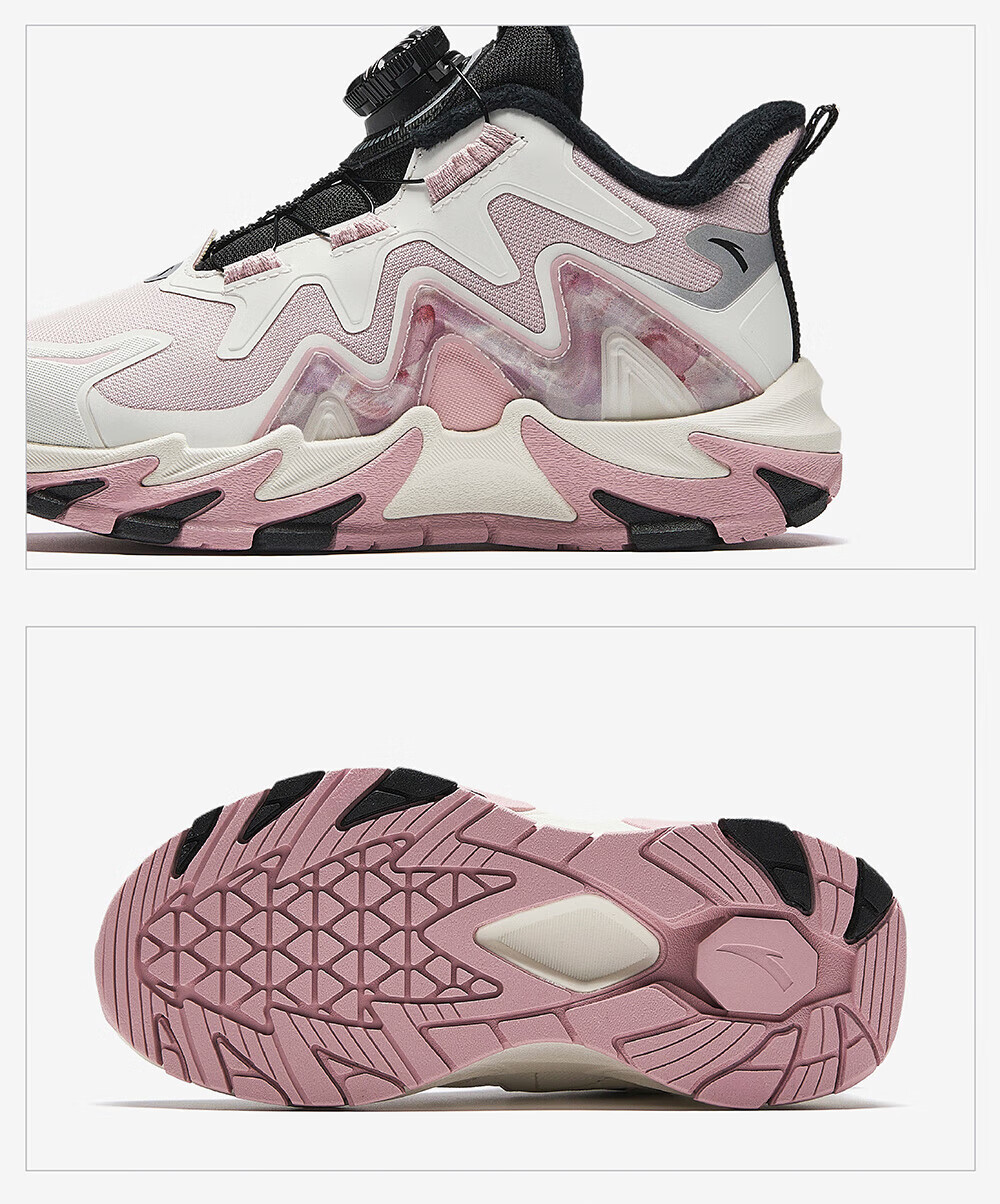 ANTA Children's Cotton Shoes Girls' Shoes 2024 Winter Plus Velvet Warm Knob Button Dengfeng 4.0 Snow Anti-Slip Cotton Boots Rigid Soft Pink/Ivory White/Silver-1 29