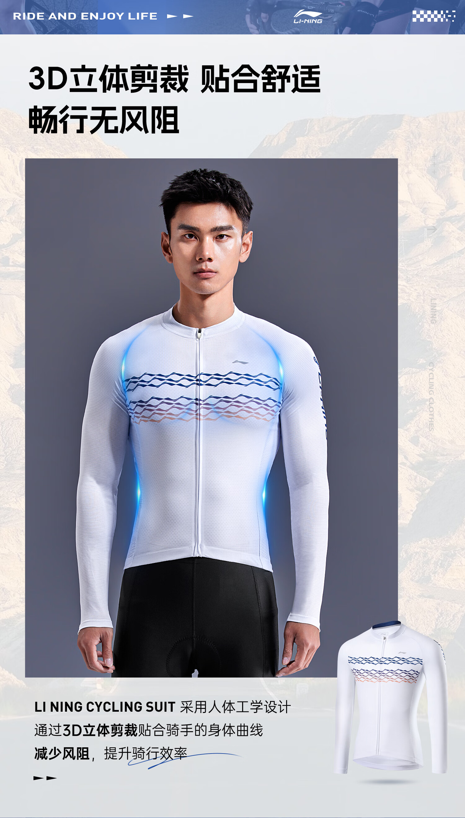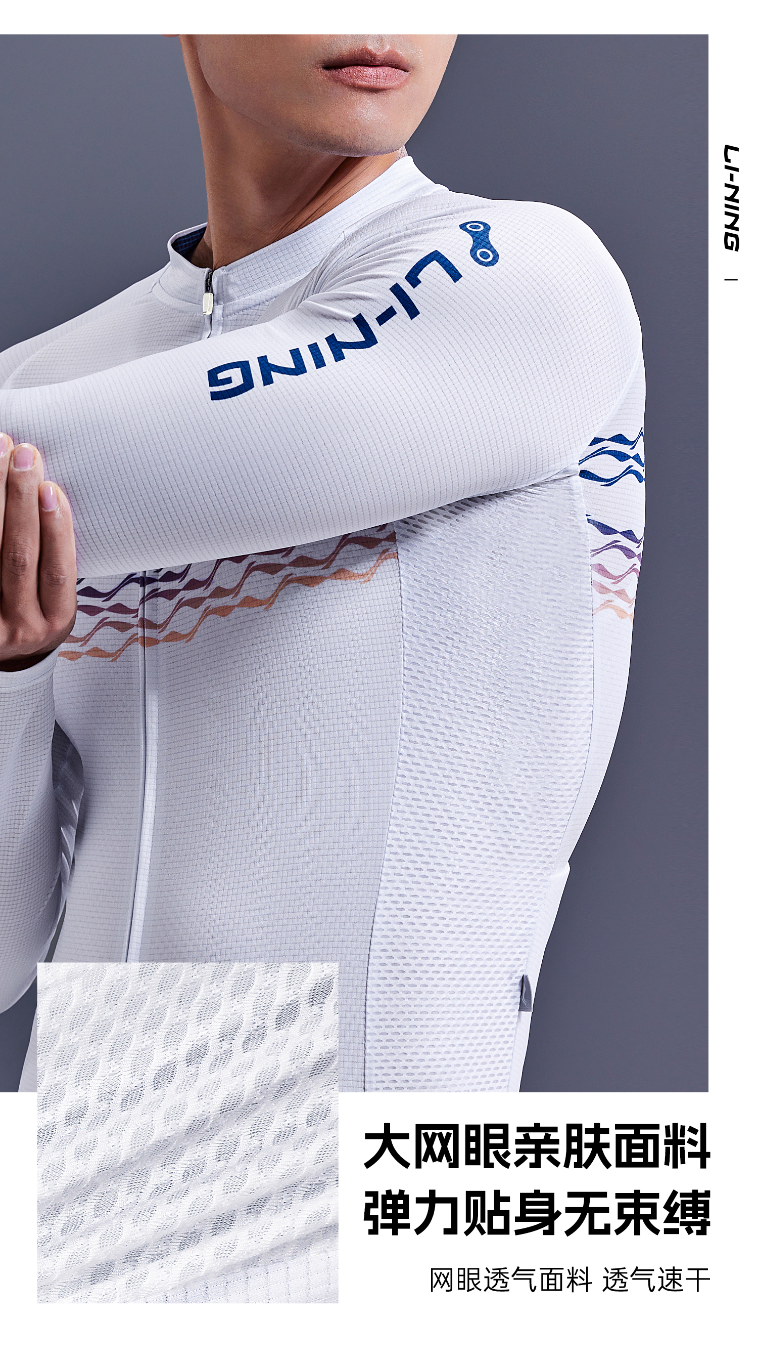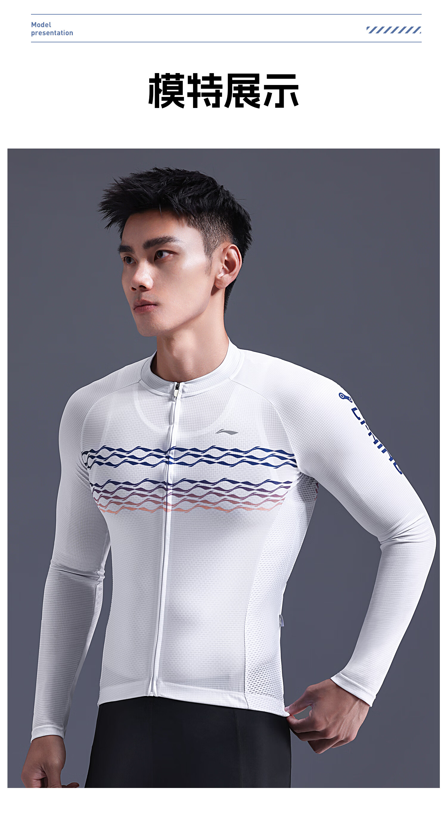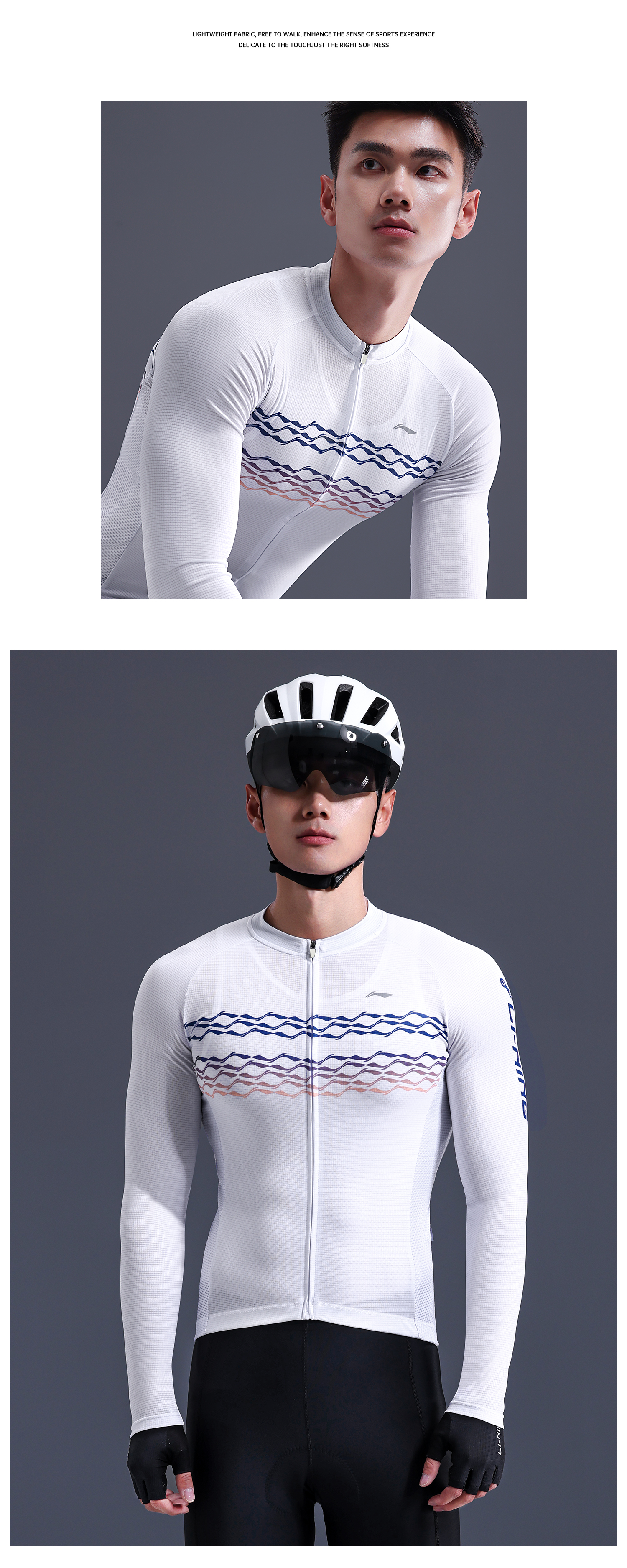 Li Ning Cycling Jersey Men's Long Sleeve Sun Protection Mountain Road Cycling Quick-Drying Breathable Outdoor Cycling Top Team Uniform Cycling Jersey + Cycling Pants + Black Vest Three-piece Set L Height 170-180 Weight 70-75kg