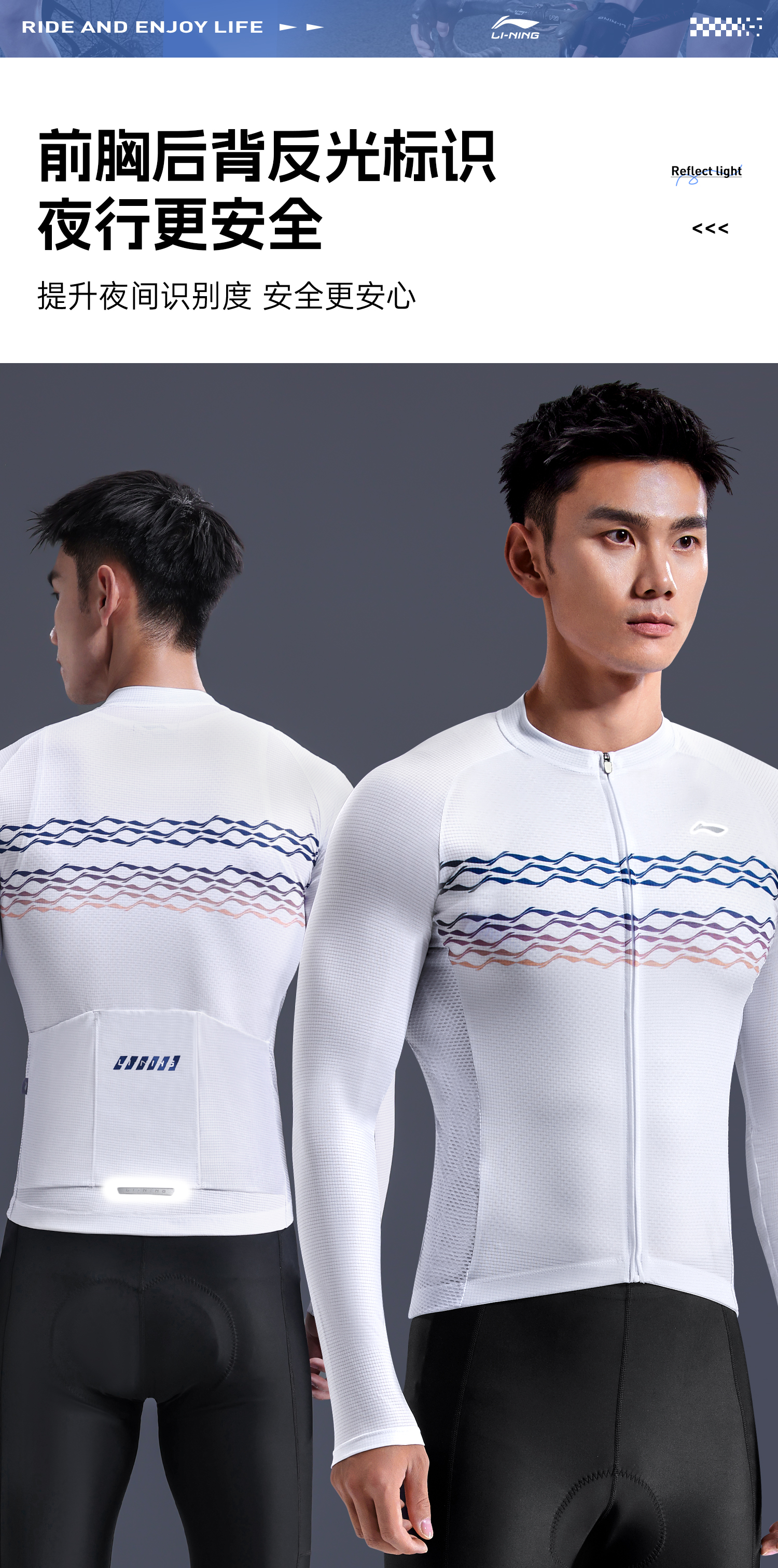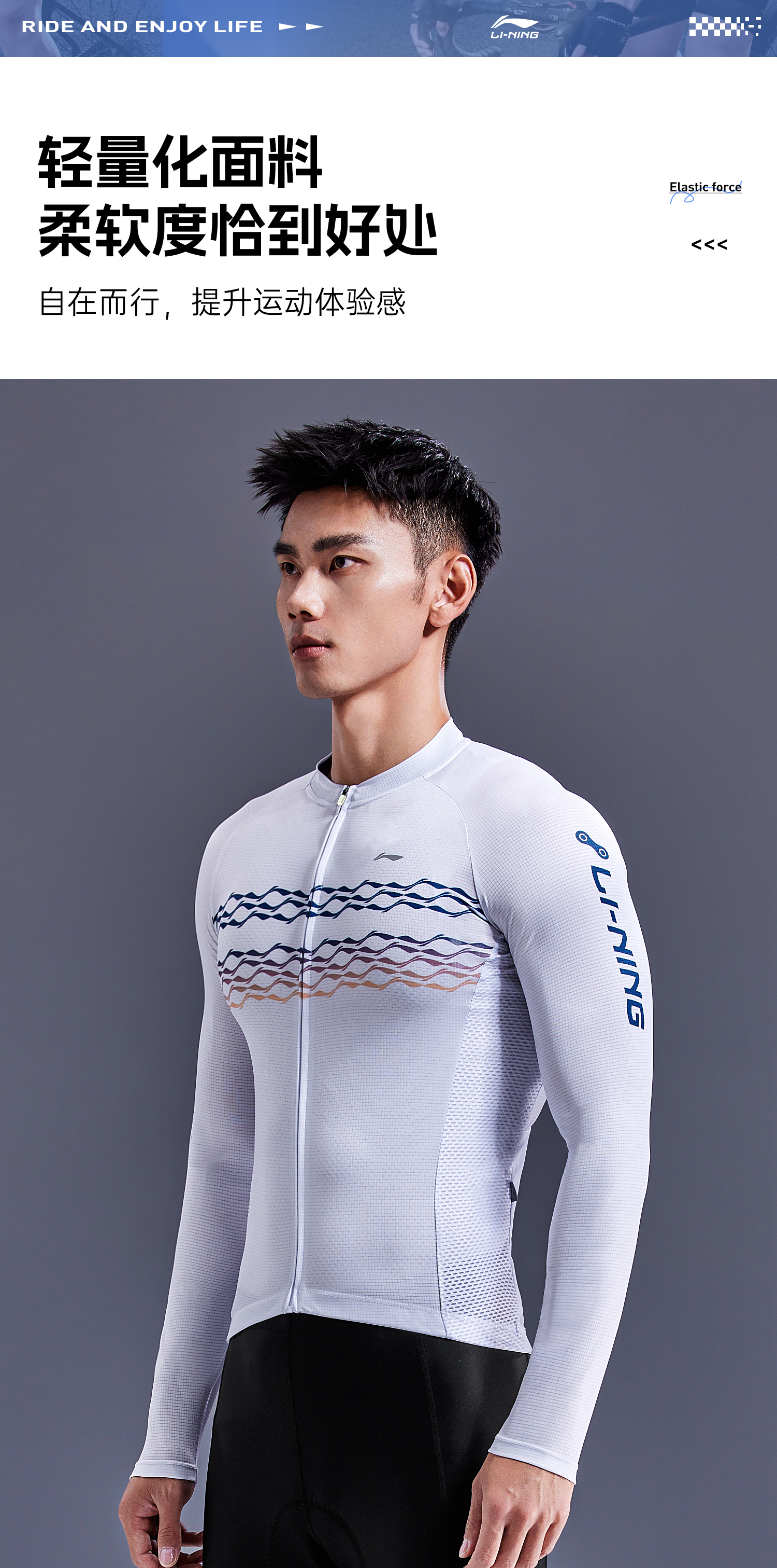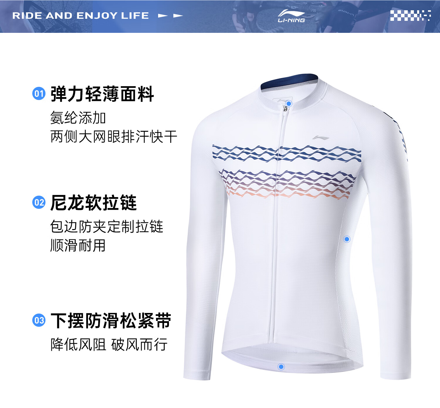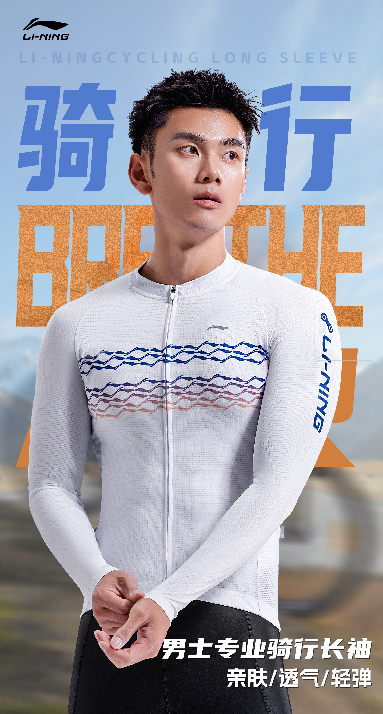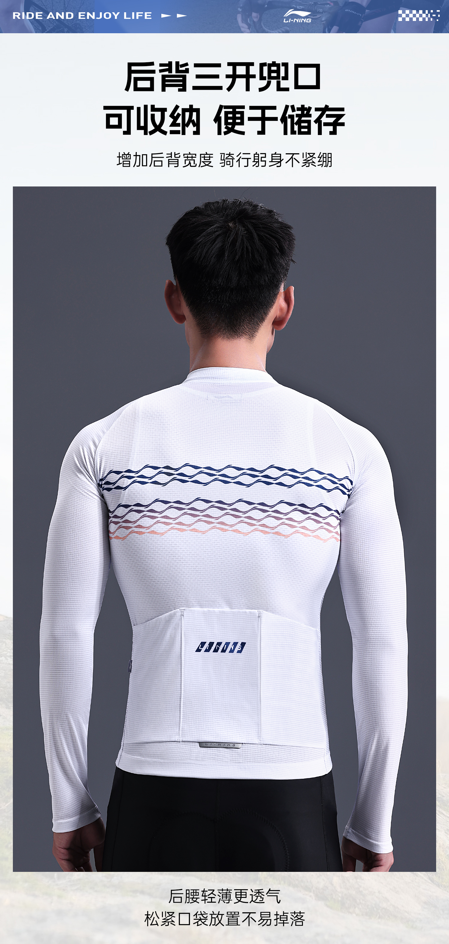 Li Ning Cycling Jersey Men's Long Sleeve Sun Protection Mountain Road Cycling Quick-Drying Breathable Outdoor Cycling Top Team Uniform Cycling Jersey + Cycling Pants + Black Vest Three-piece Set L Height 170-180 Weight 70-75kg