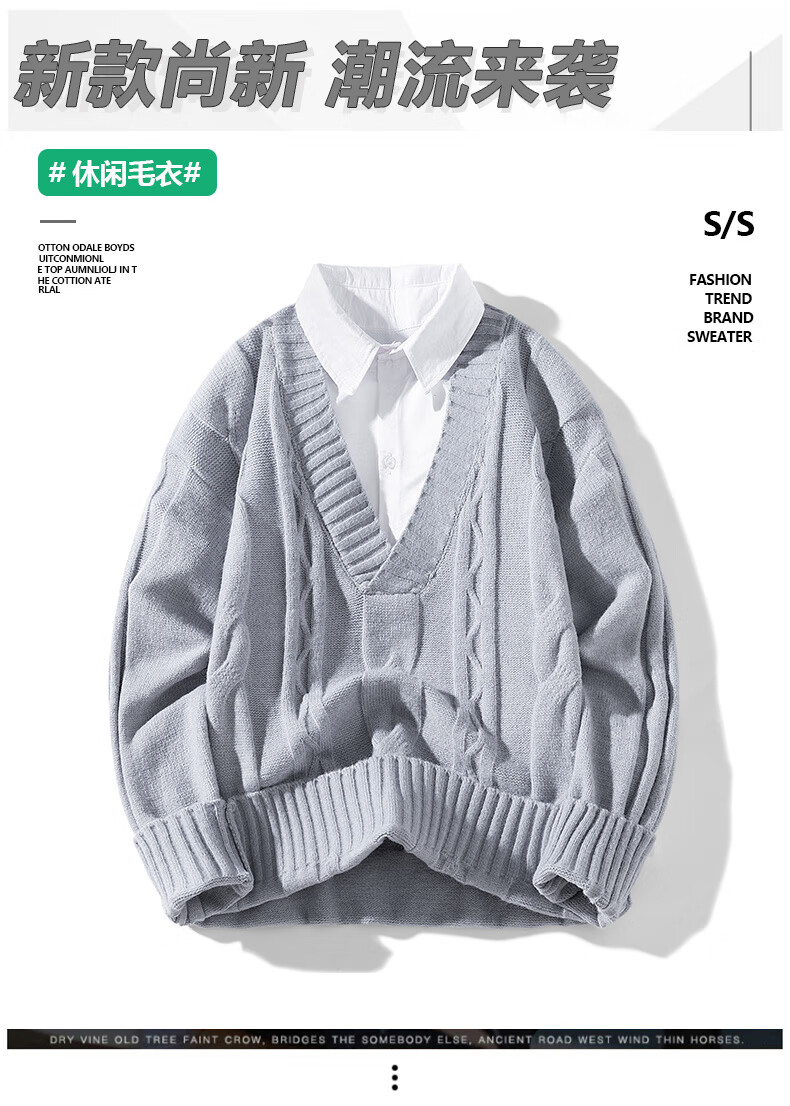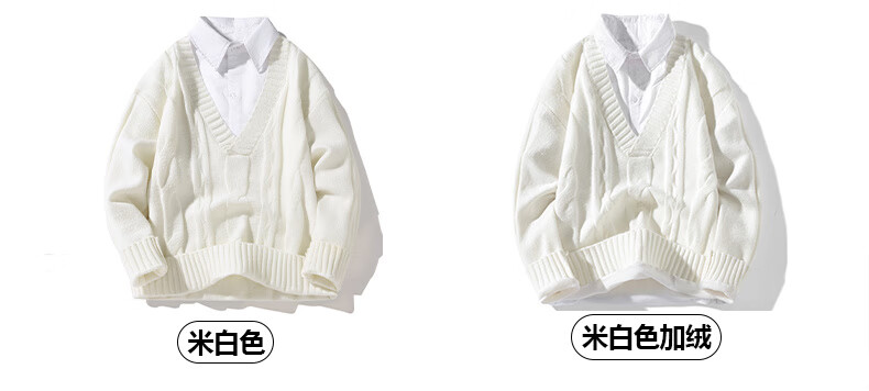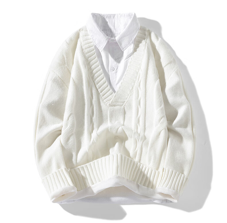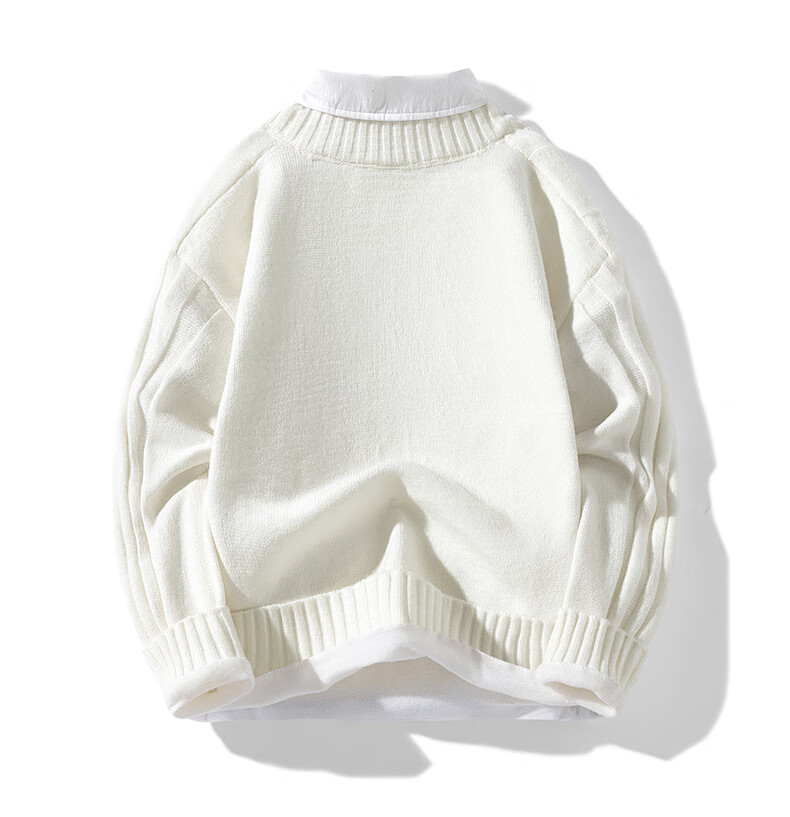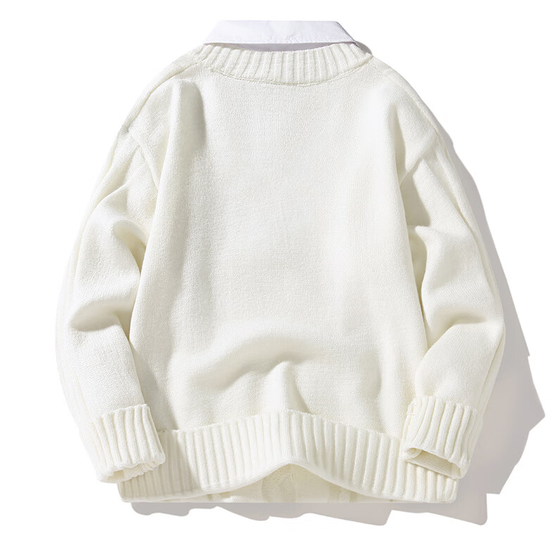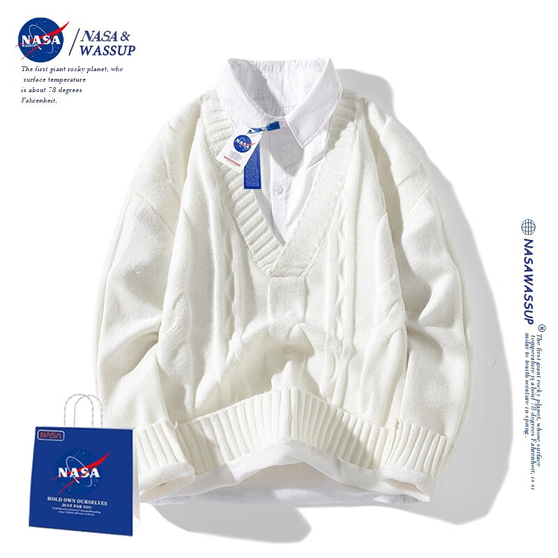 Nasawassup official fashion brand co-branded sweater men's autumn and winter solid color shirt collar fake two-piece warm college style men's sweater off-white XL (recommended 120-140Jin Jin equals 0.5 kg)