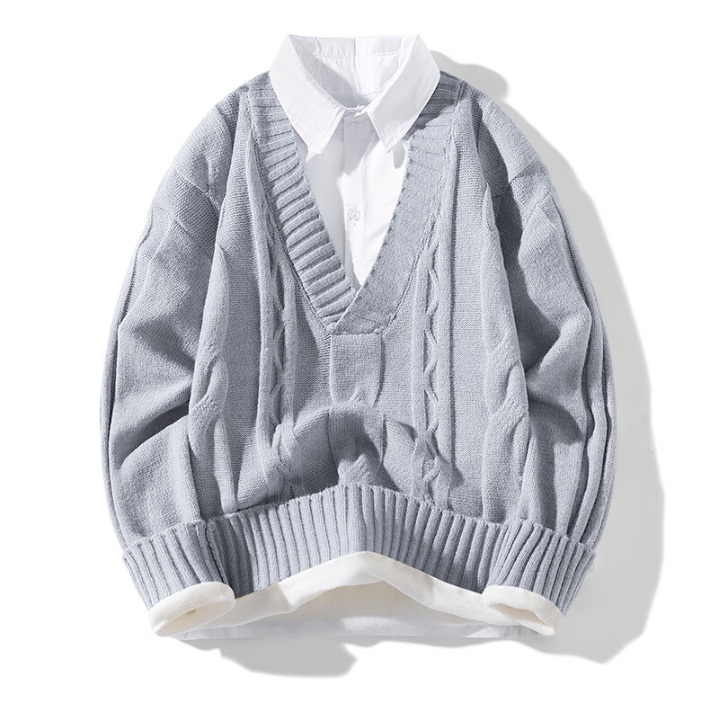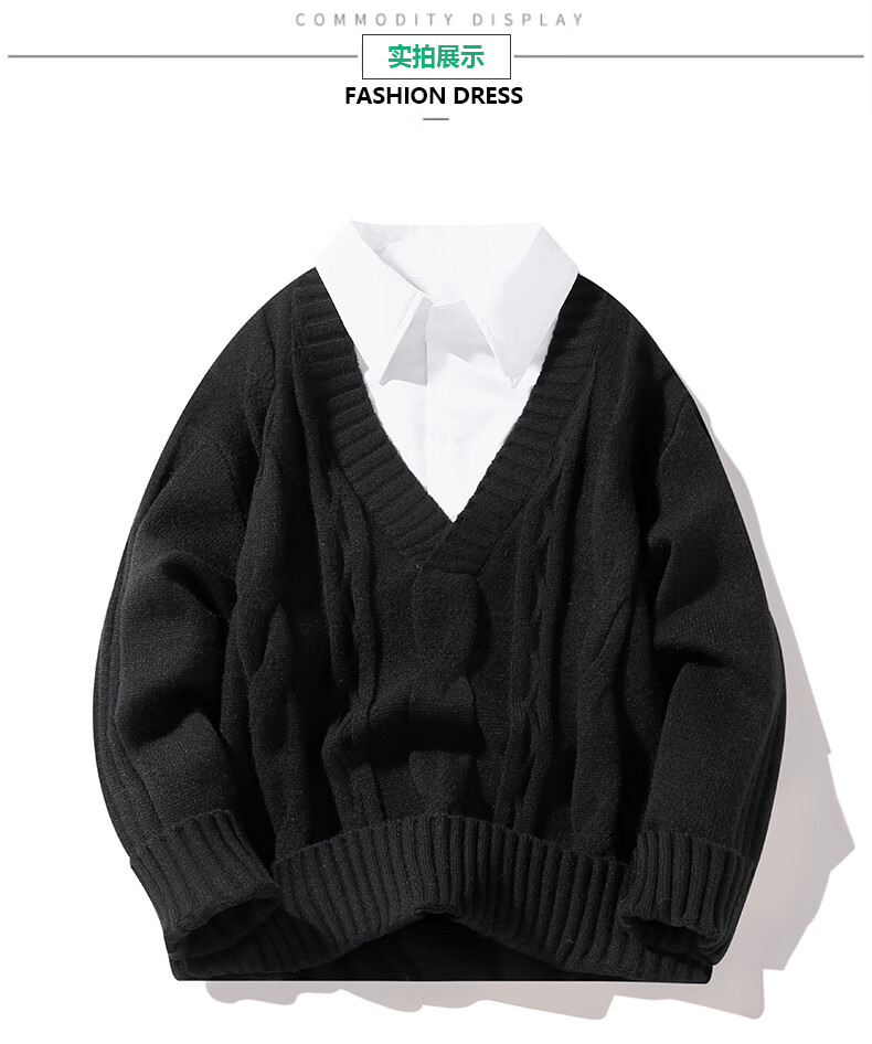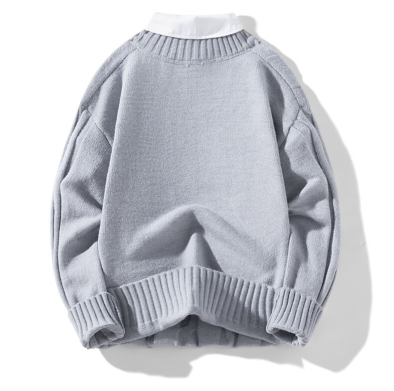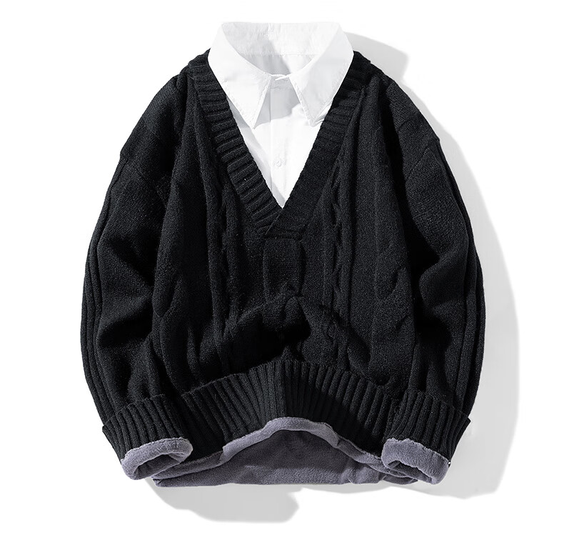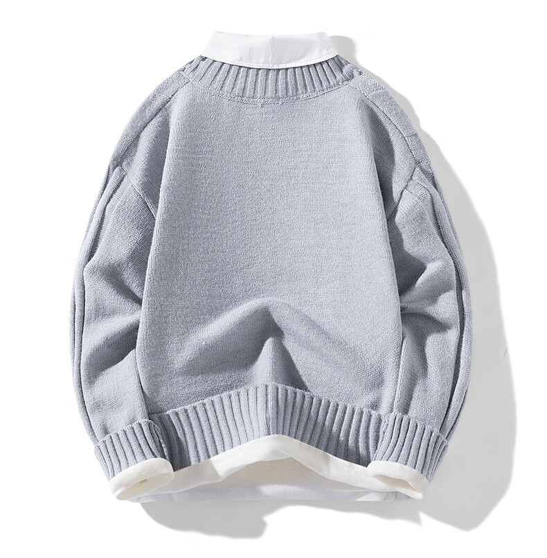 Nasawassup official fashion brand co-branded sweater men's autumn and winter solid color shirt collar fake two-piece warm college style men's sweater off-white XL (recommended 120-140Jin Jin equals 0.5 kg)