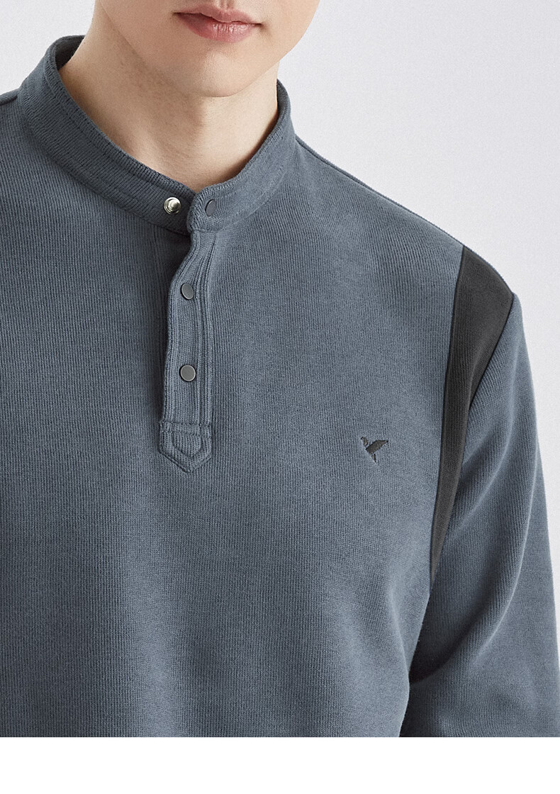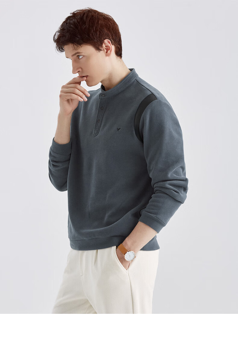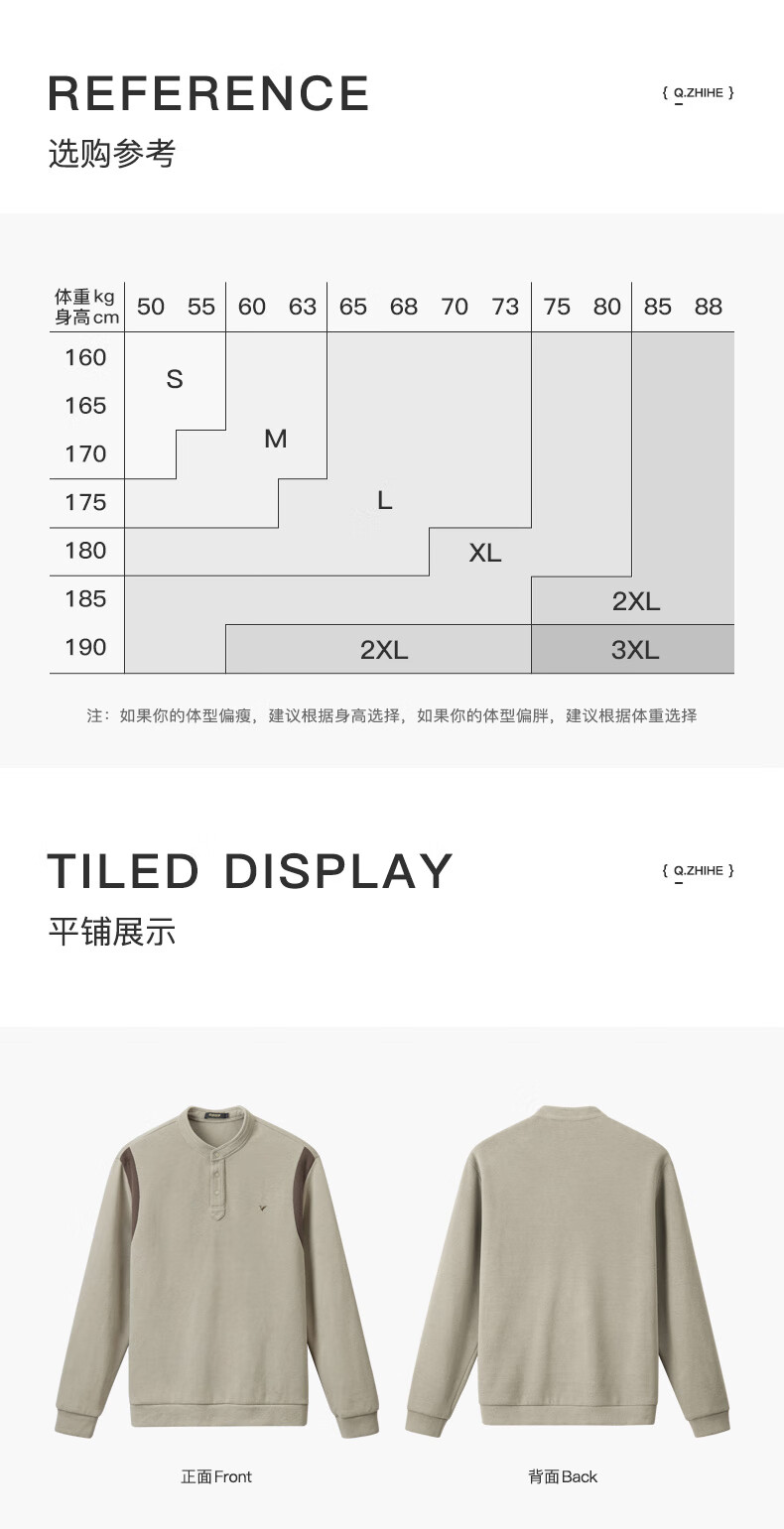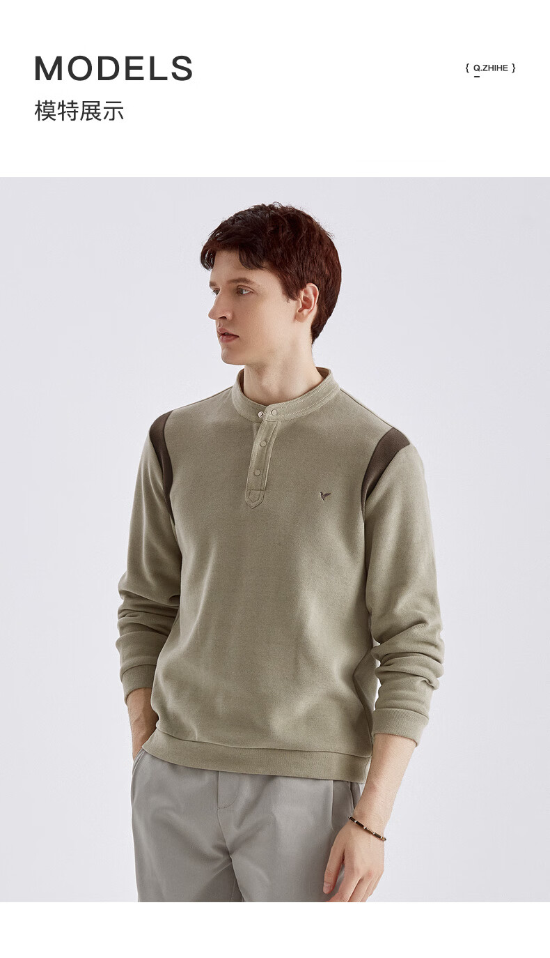 Qian Zhihe Men's Henry Collar Sweatshirt 2024 Autumn and Winter New Raglan Sleeve Contrast Color Pullover Jacket Casual Bottoming Shirt Men's Trend 01C Khaki M