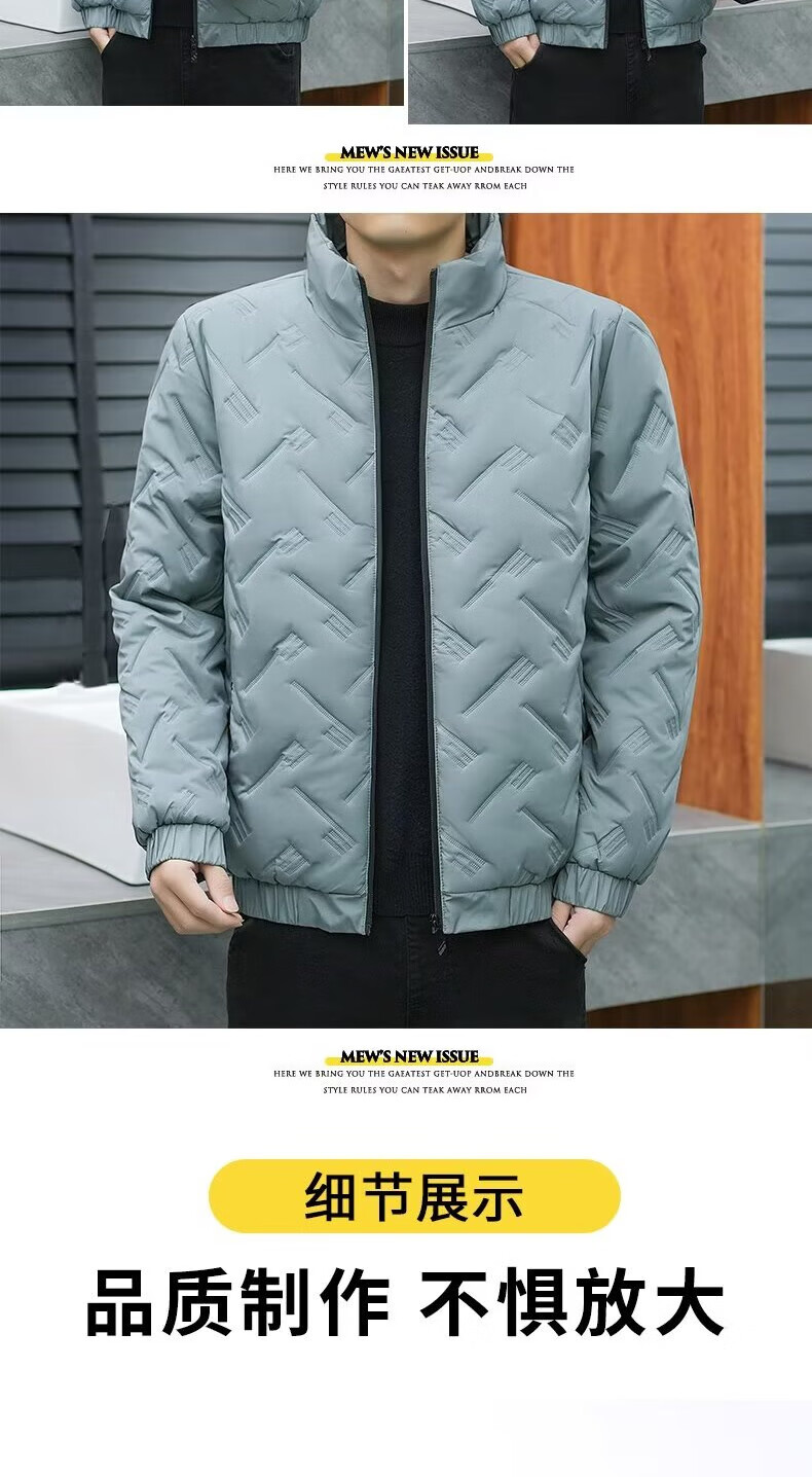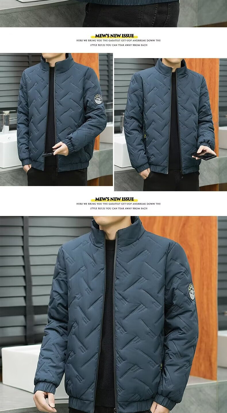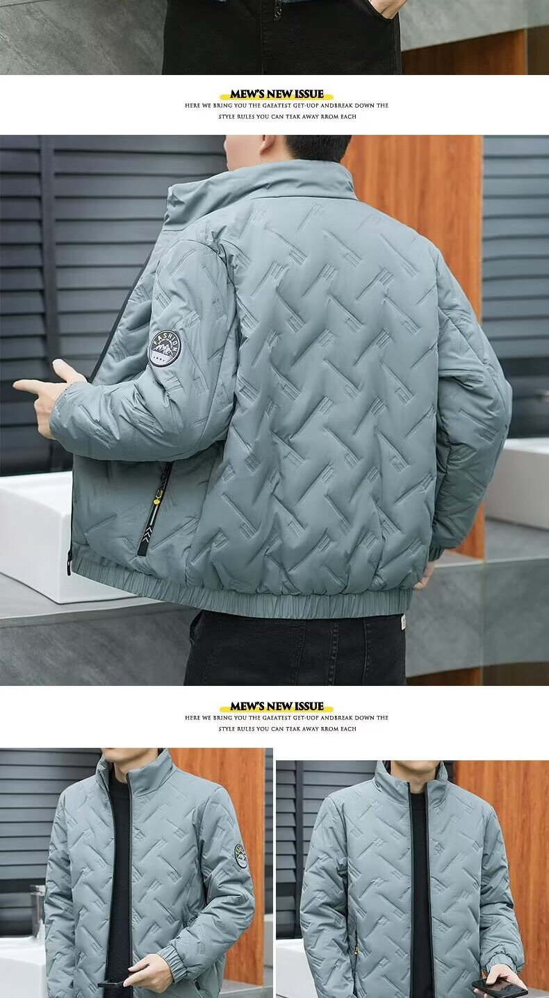 Men's cotton high-end badge jacket for young and middle-aged business wear casual light cotton jacket autumn and winter extra large size cotton coat gray 3XL