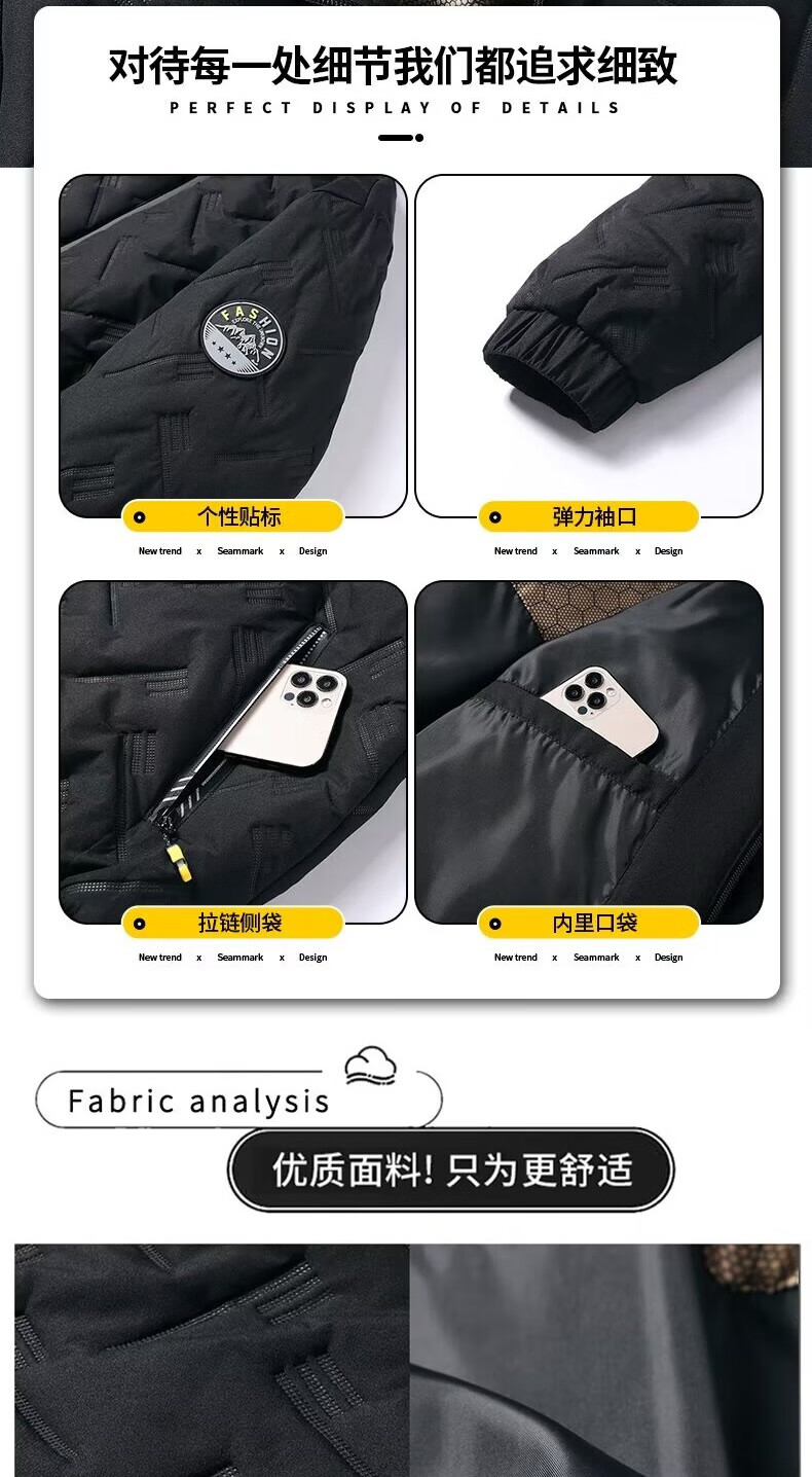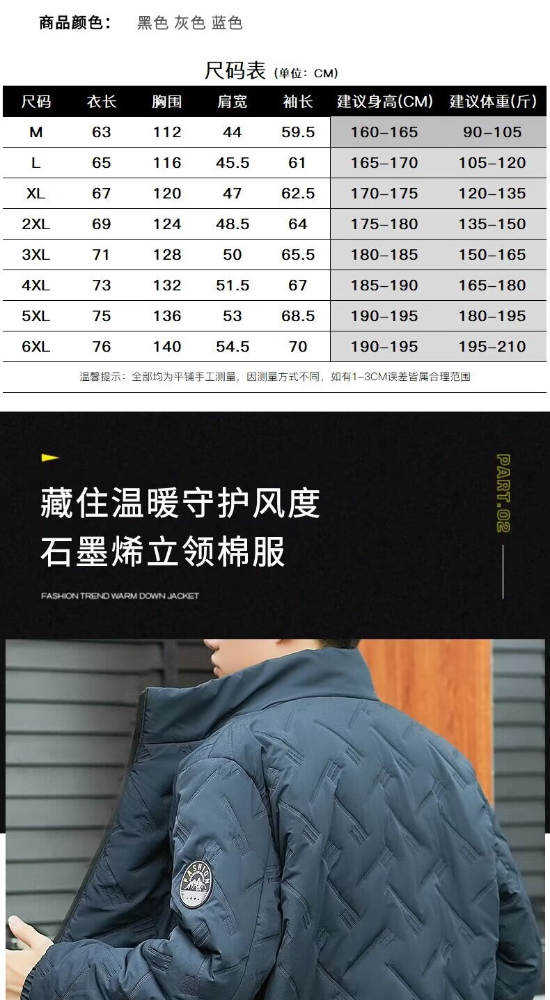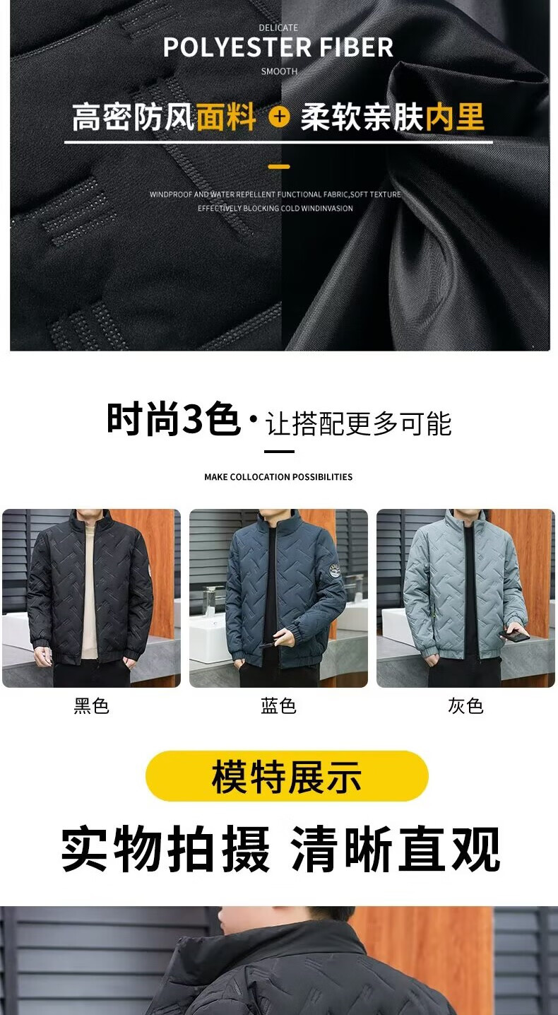 Men's cotton high-end badge jacket for young and middle-aged business wear casual light cotton jacket autumn and winter extra large size cotton coat gray 3XL