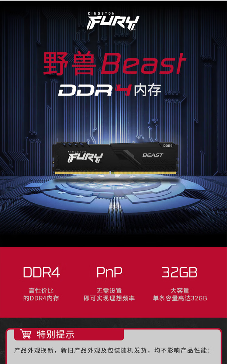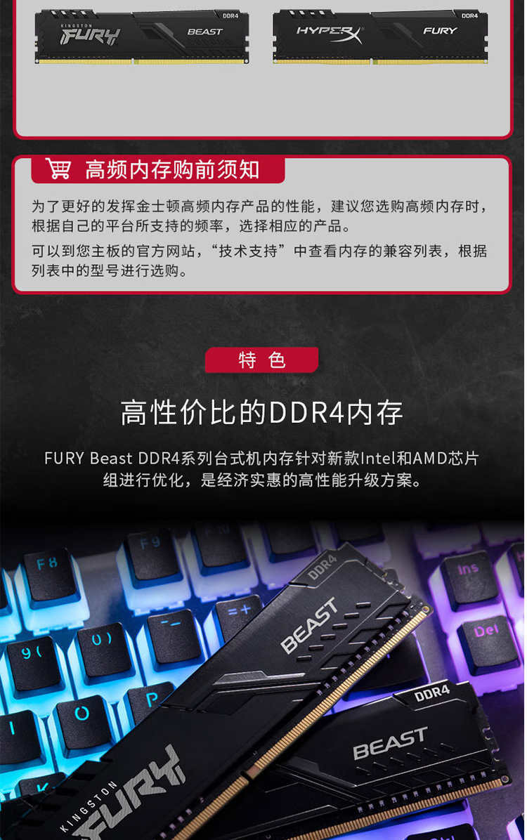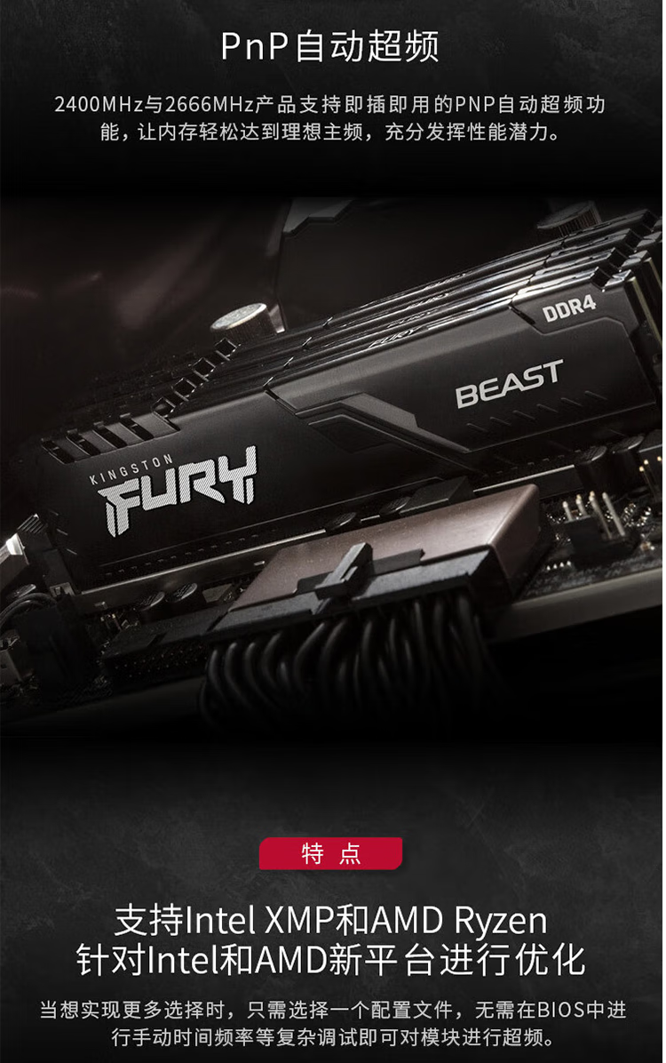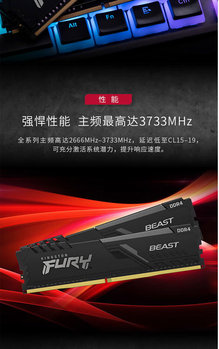 Kingston memory stick DDR4 3200 2666 3600 Beast series Hacker God FURY 4th generation desktop computer memory stick DDR4 2400 frequency-classic standard 16GB 1 stick-16G
