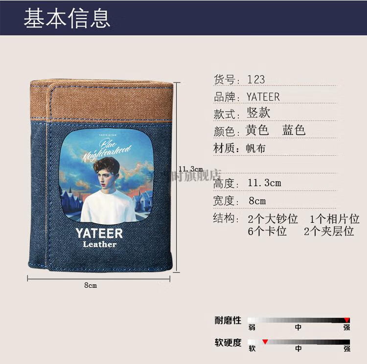 Jingga wallet high-looking student party Troye Xiwen men's trendy card bag wallet canvas retro fashion Korean version 3 Arknights Rhode Island