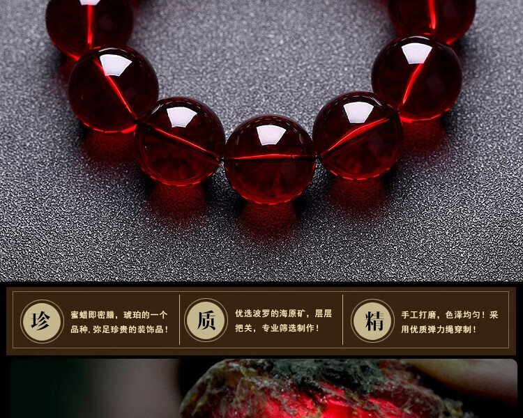 Emperor Xuan natural 7A grade amber blood amber bracelet blood amber round bead single circle bracelet for men and women amber beeswax blood amber bracelet 7A grade blood pool 14mm