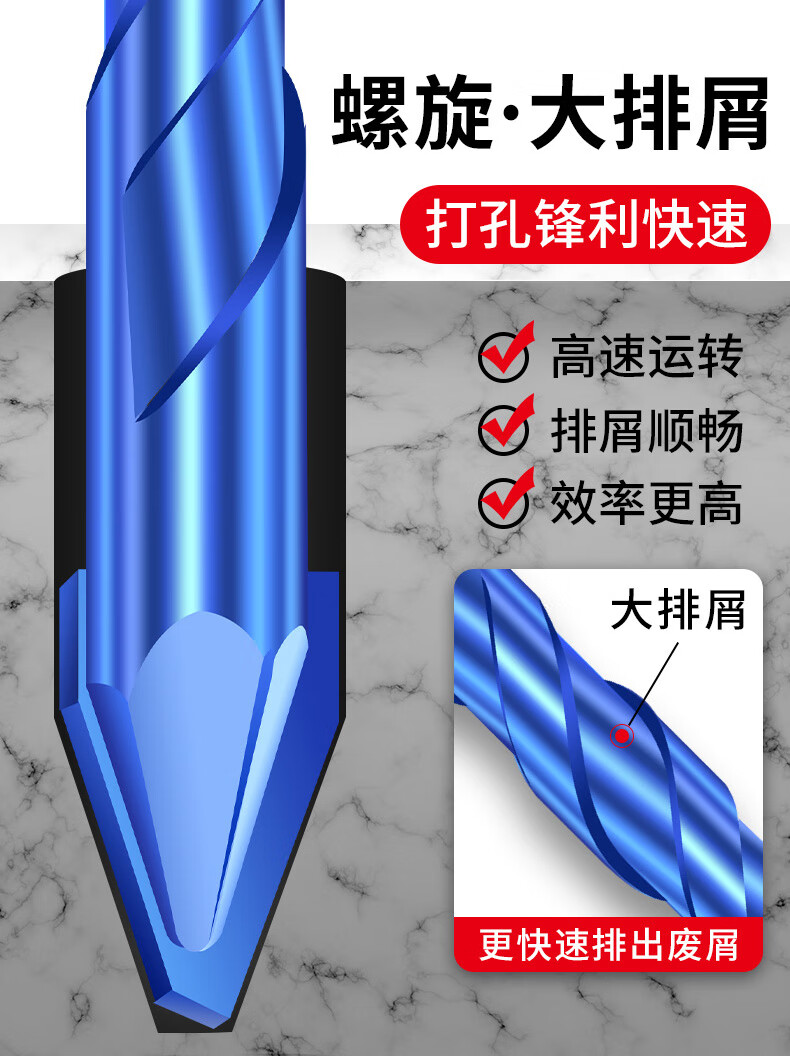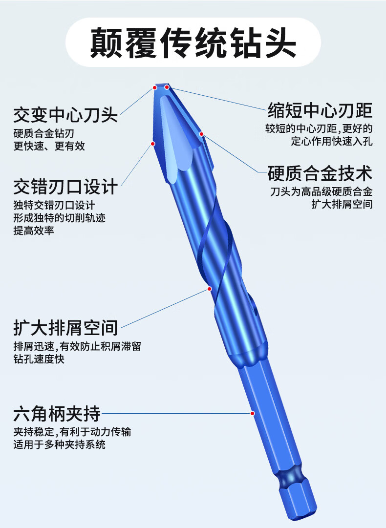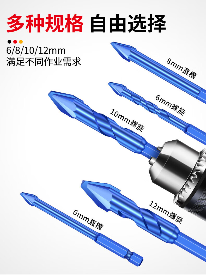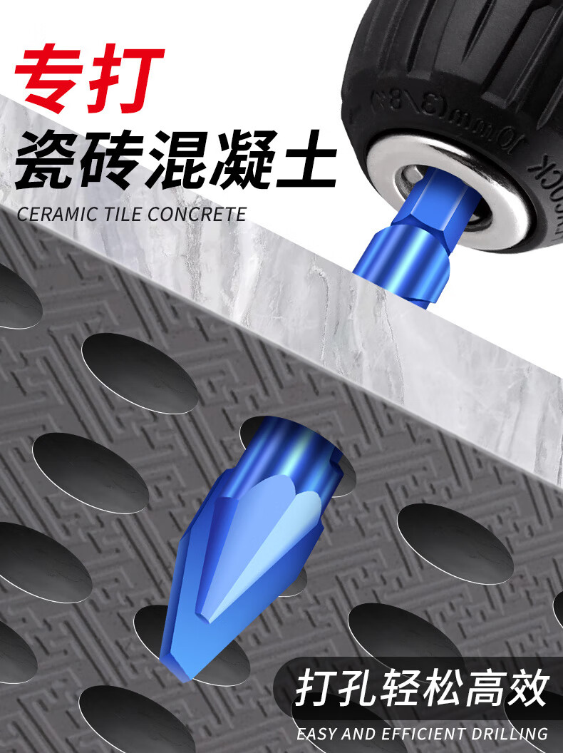 Meschute German precision eccentric eccentric drill bit super hard ceramic tile drilling drill dry ceramic triangular turn head all-ceramic special super hard eccentric drill 6+8 2 pieces in total