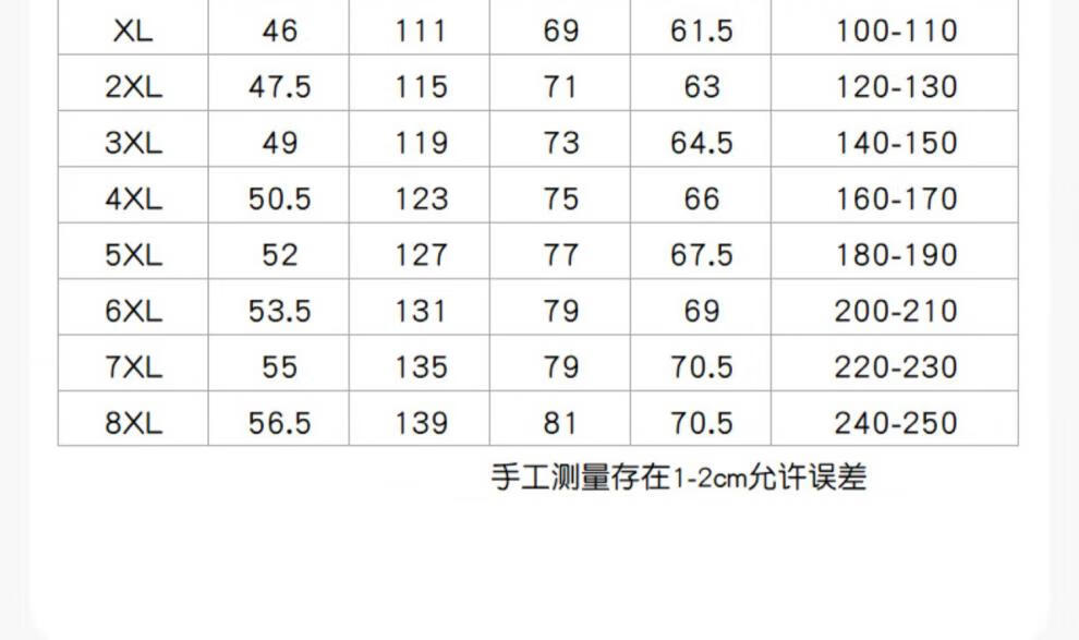 China (cm) 165 / 88-90 170 / 96-98 175 / 108-110 180 / 118-122 185 / 126-130