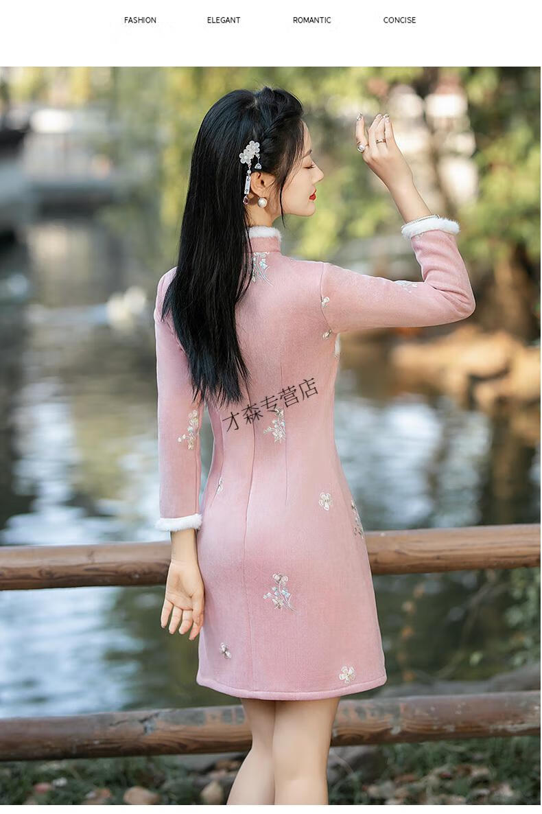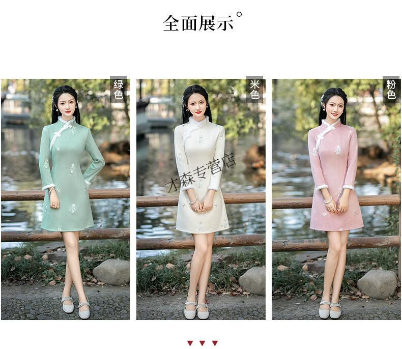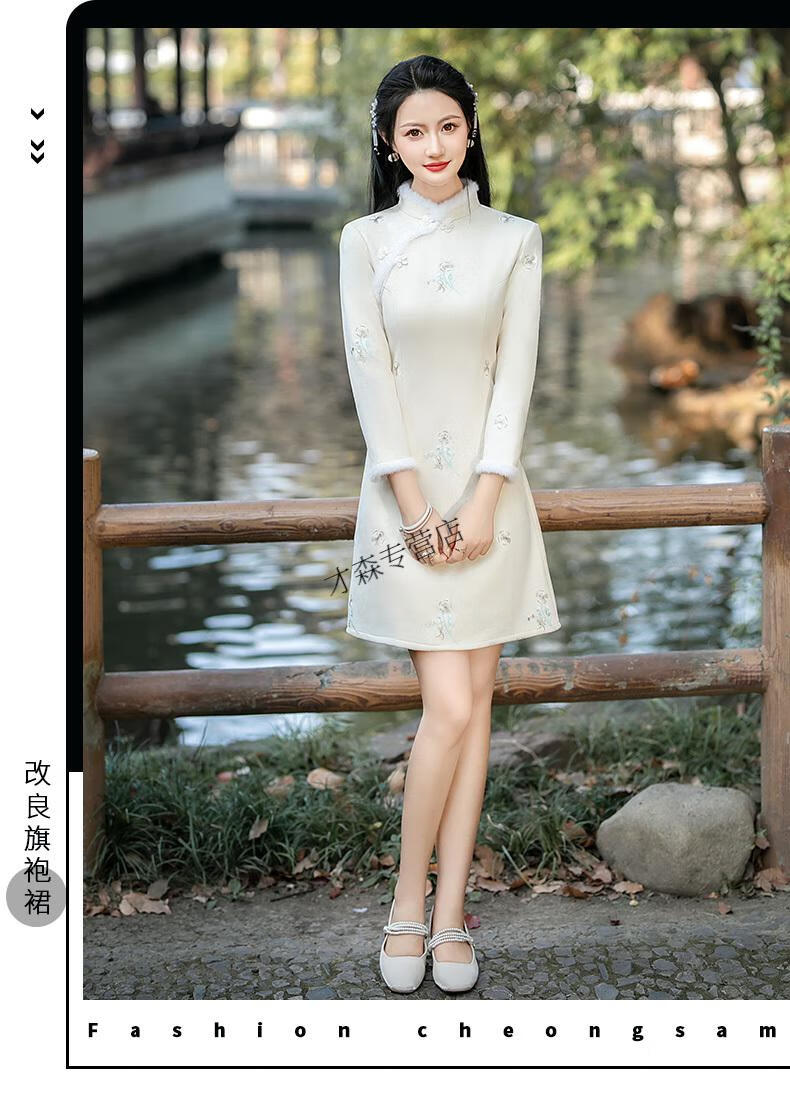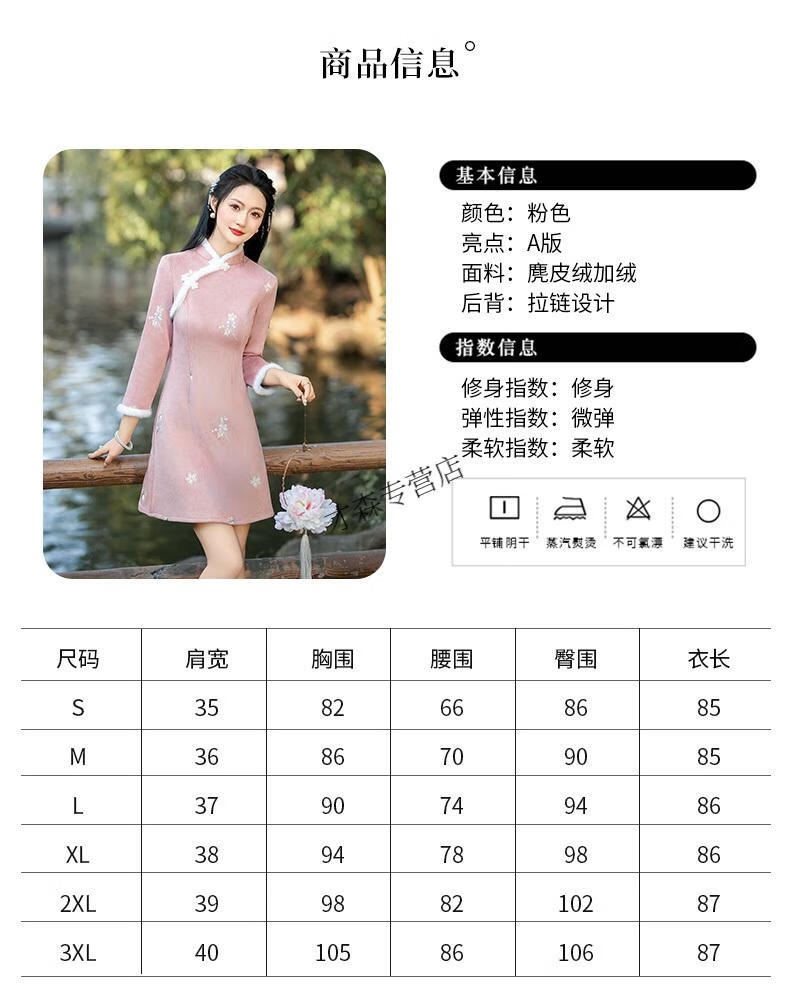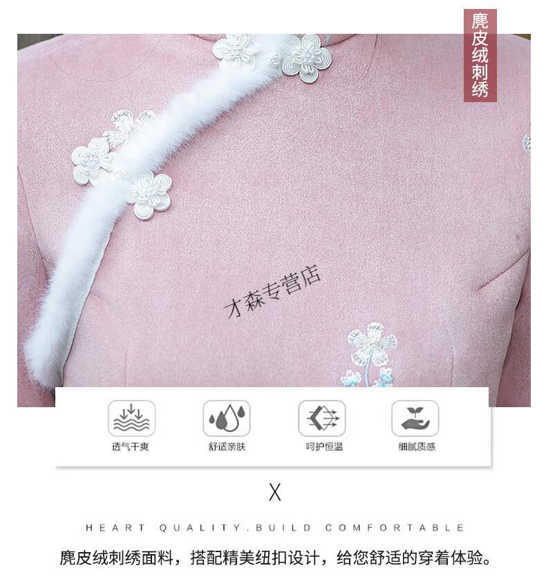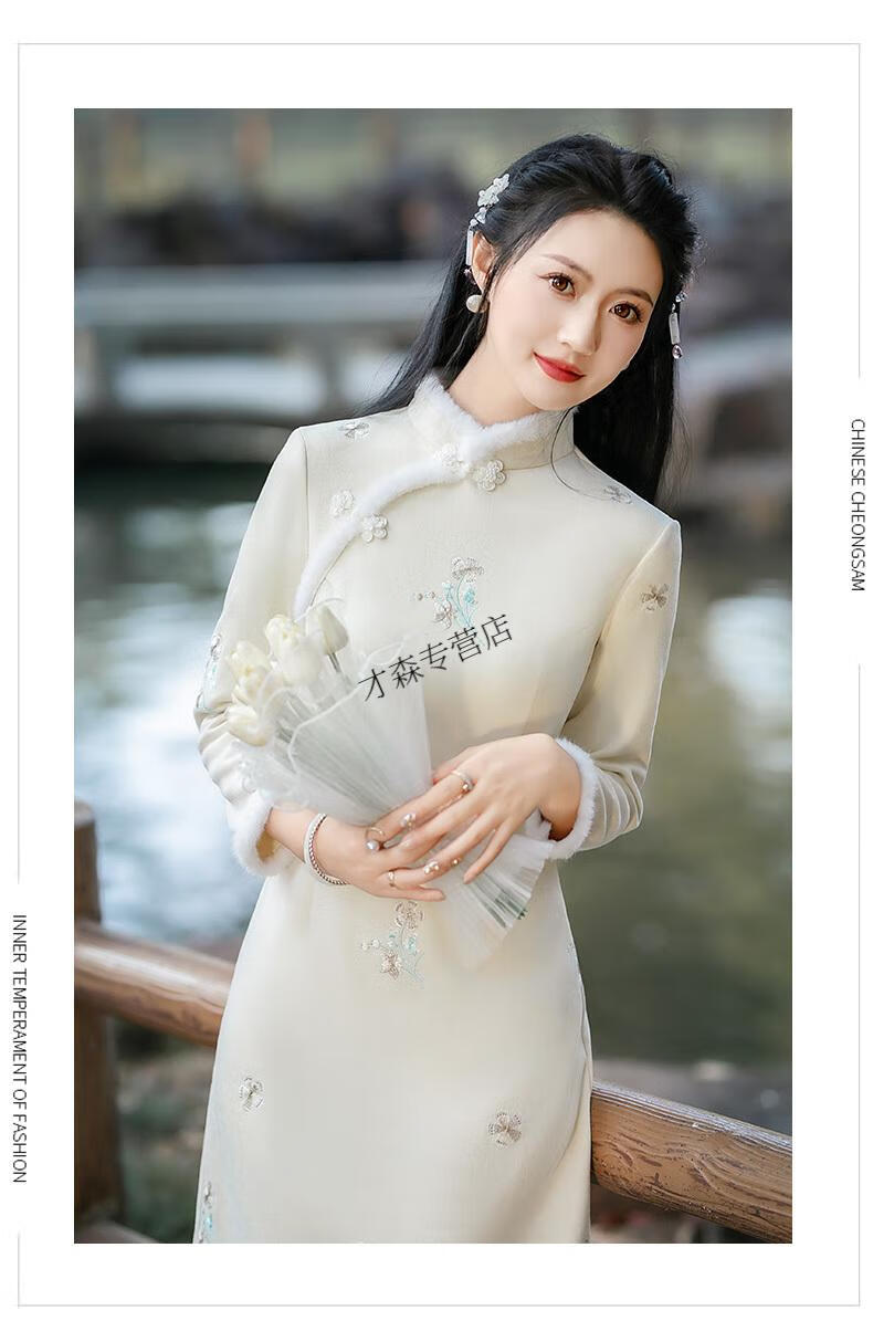 Pierre Cardin velvet thickened embroidery 150 small a version improved cheongsam 2025 winter new long-sleeved literary youthful style beige embroidery suede plus velvet M 85-95Jin Jin is equal to 0.5 kg