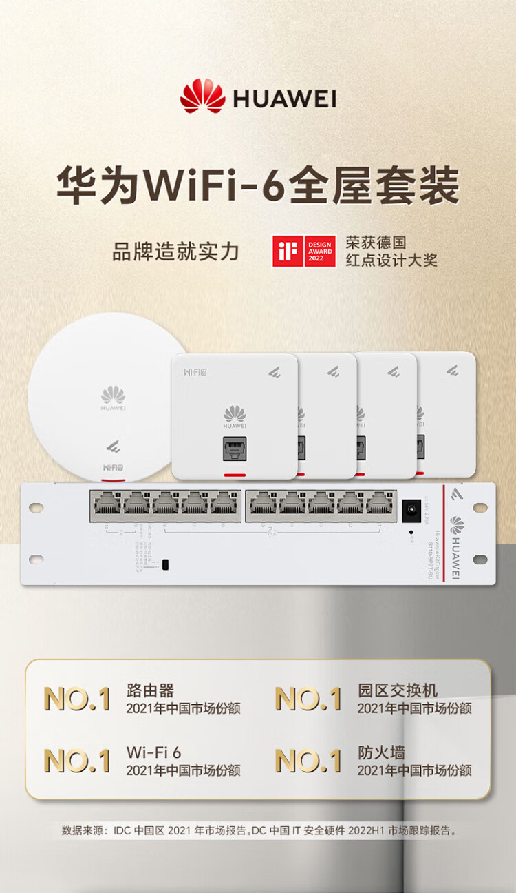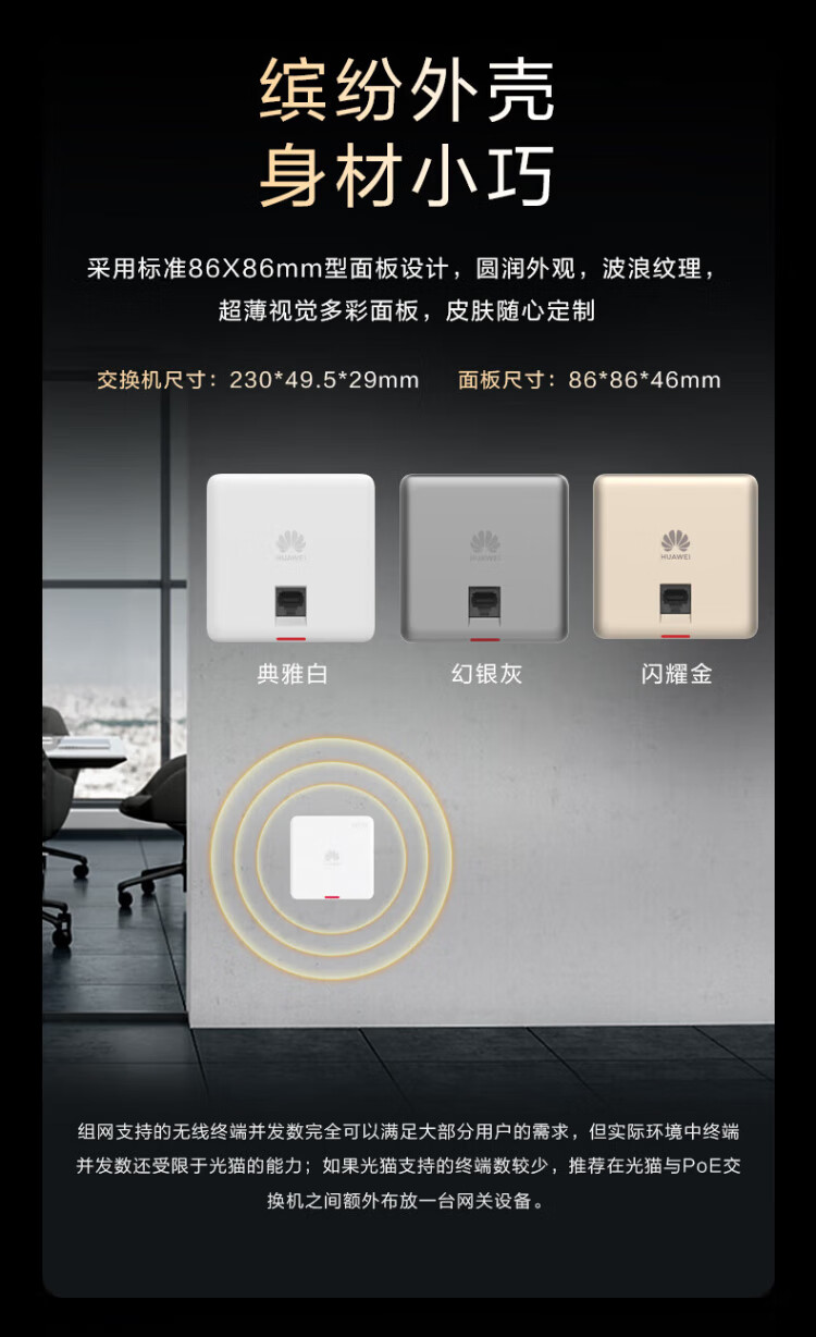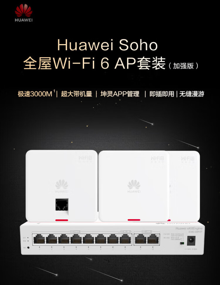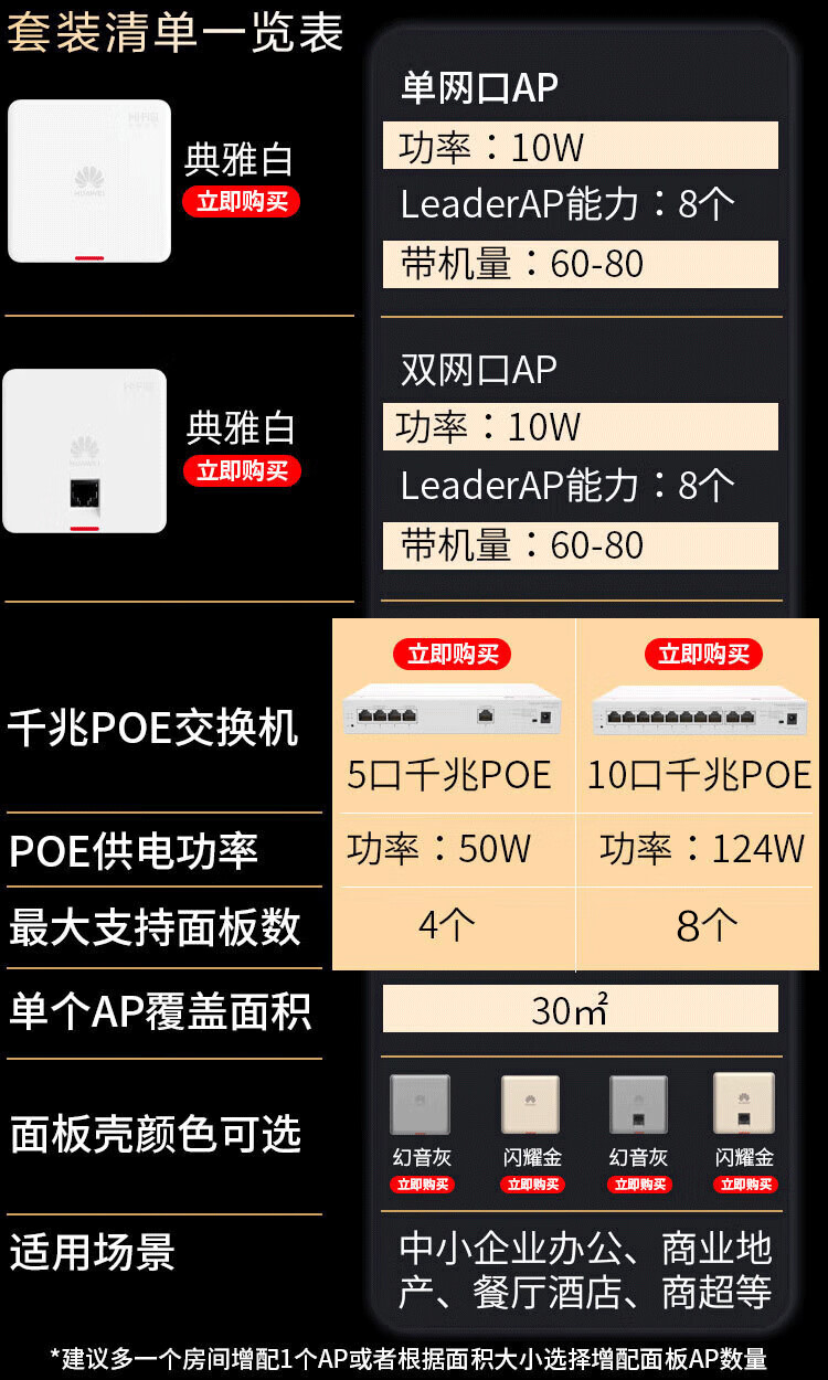 Huawei (HUAWEI) Kunling panel wireless AP whole house WiFi set enterprise-grade AC+AP dual-band 3000M router POE network cable power supply IPTV Kunling APP management distributed 8-port AC router + 2 ceiling + 2 panel AP three rooms and one living room