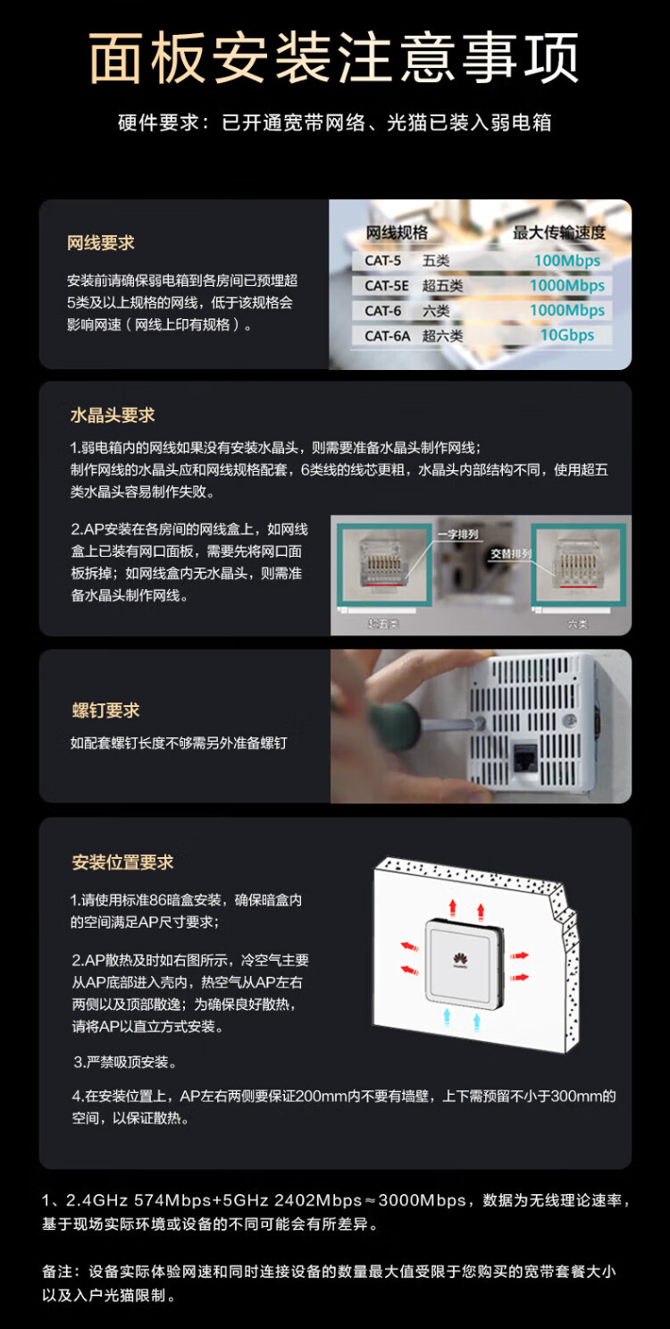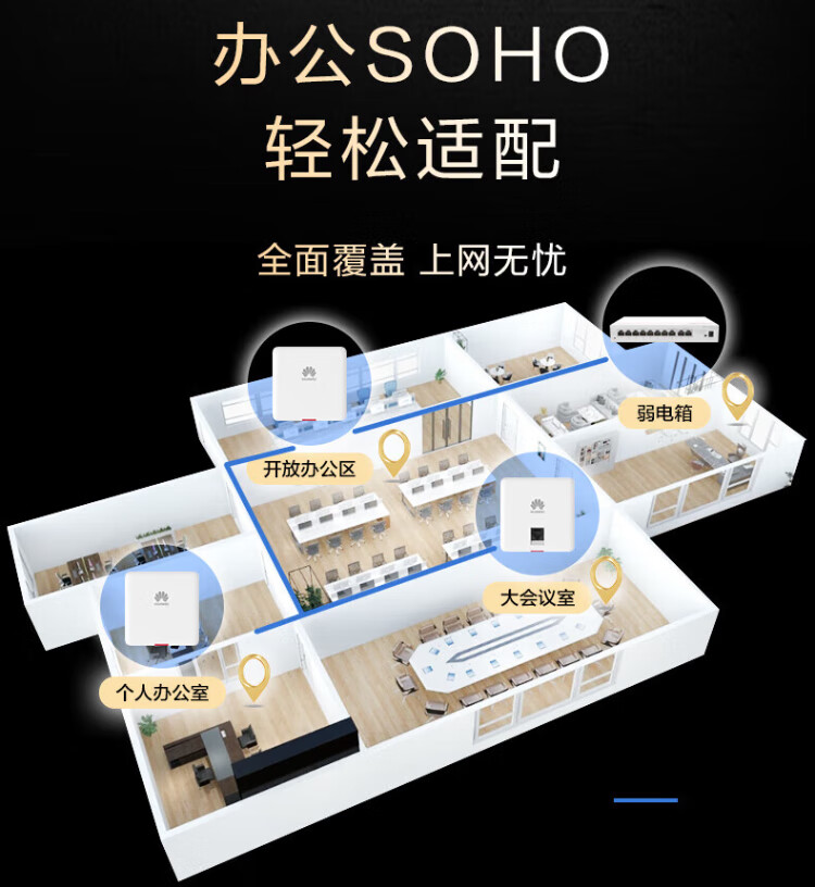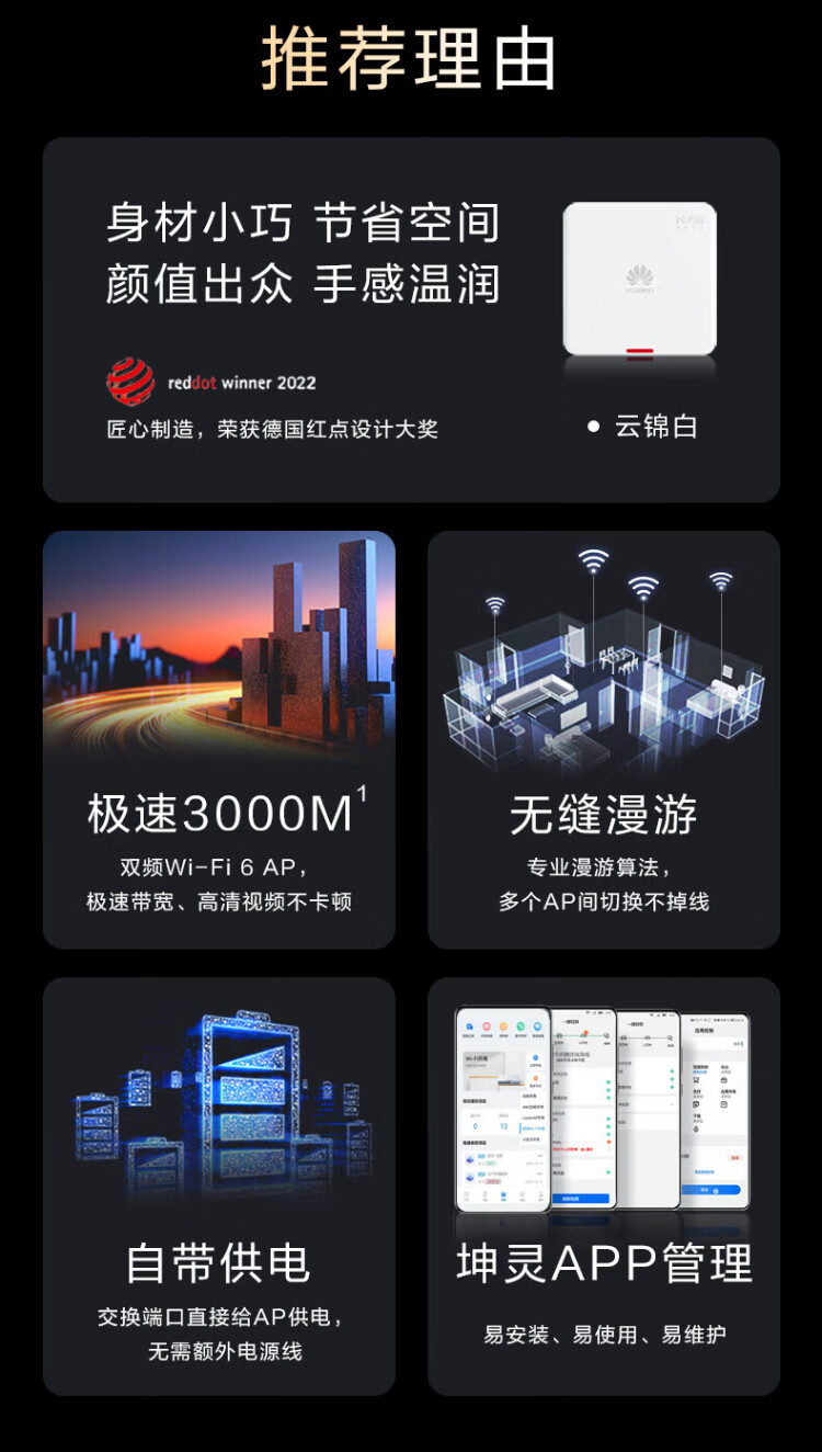 Huawei (HUAWEI) Kunling panel wireless AP whole house WiFi set enterprise-grade AC+AP dual-band 3000M router POE network cable power supply IPTV Kunling APP management distributed 8-port AC router + 2 ceiling + 2 panel AP three rooms and one living room