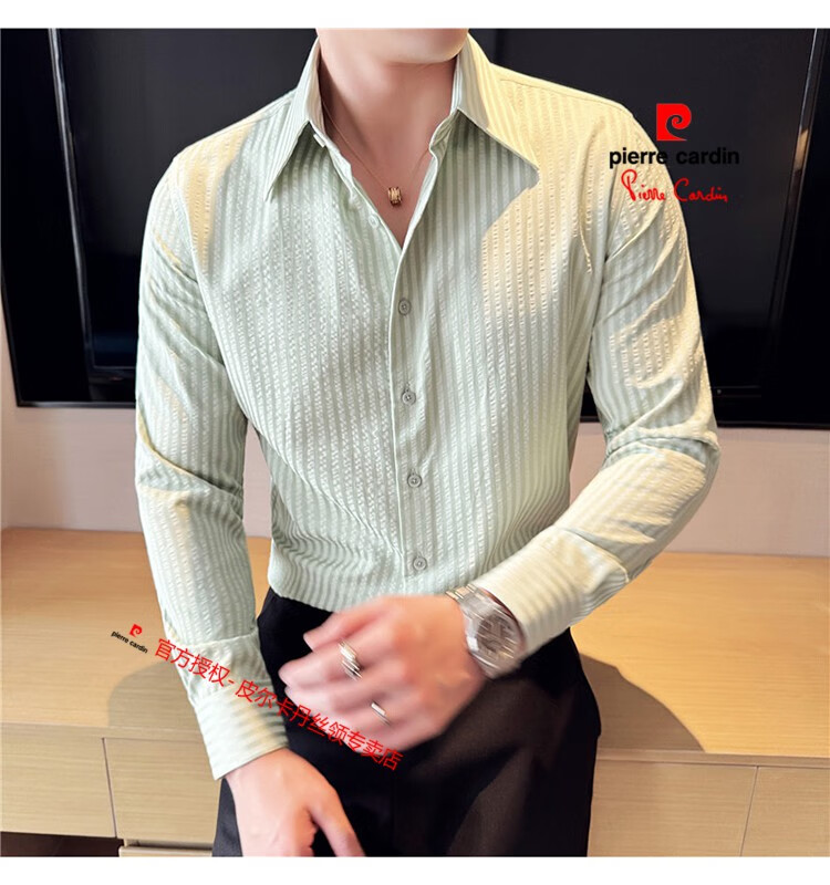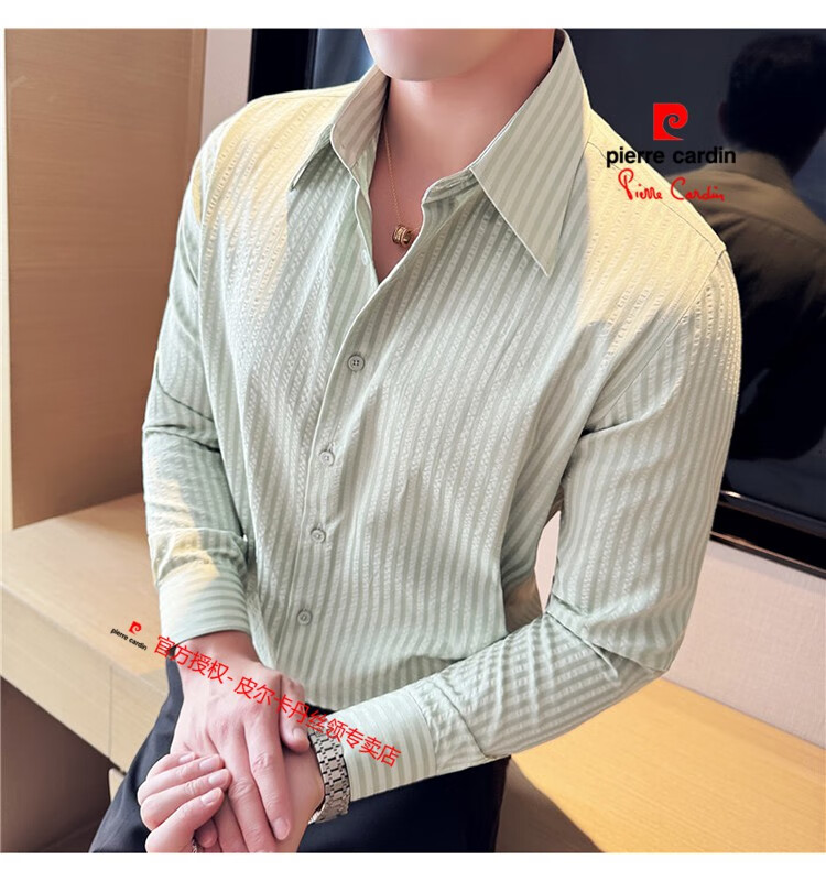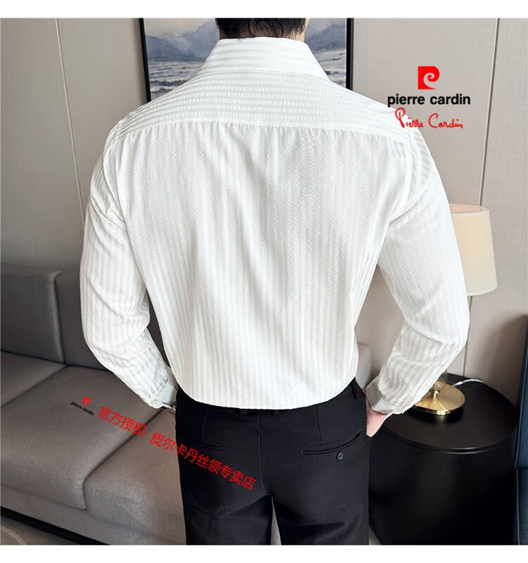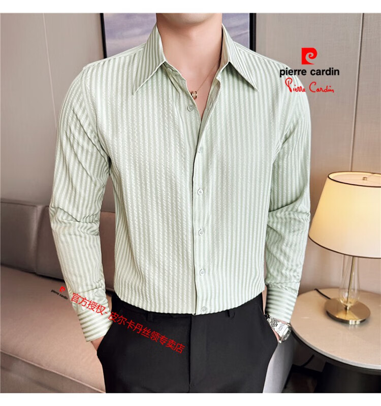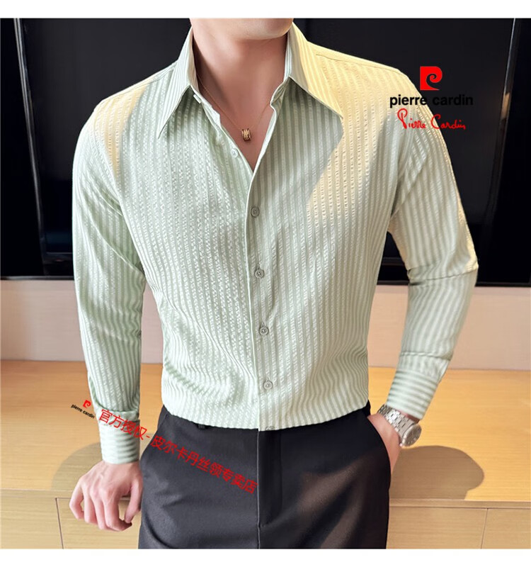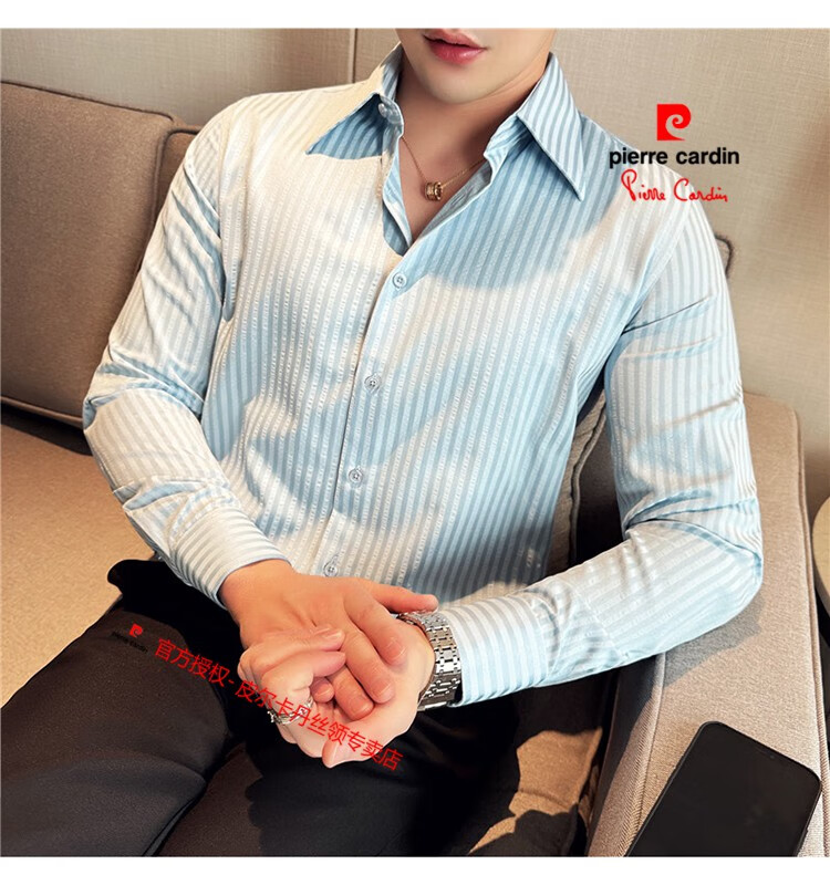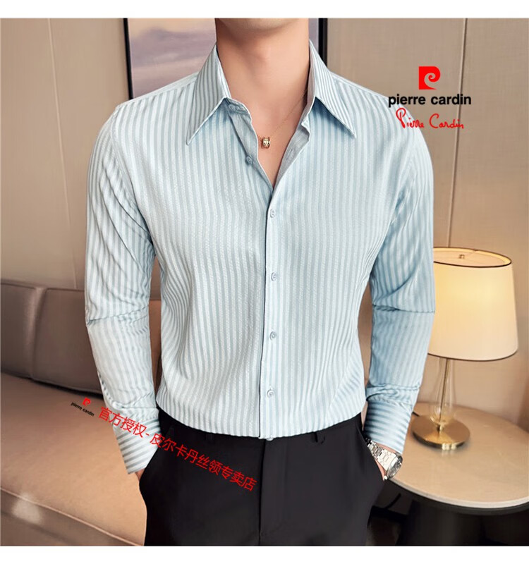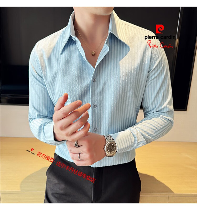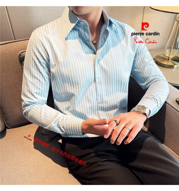 Pierre Cardin (Pierre Cardin) French large collar striped shirt men's long-sleeved autumn high-end casual versatile handsome style seersucker slim shirt blue 2XL (150-160Jin Jin equals 0.5 kg)