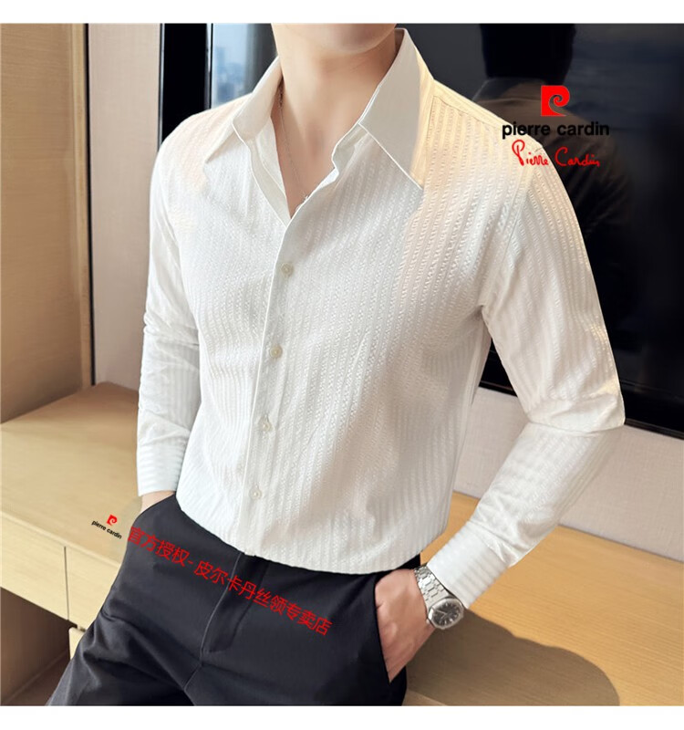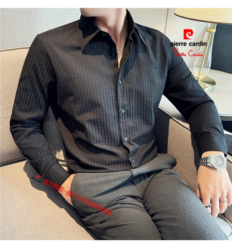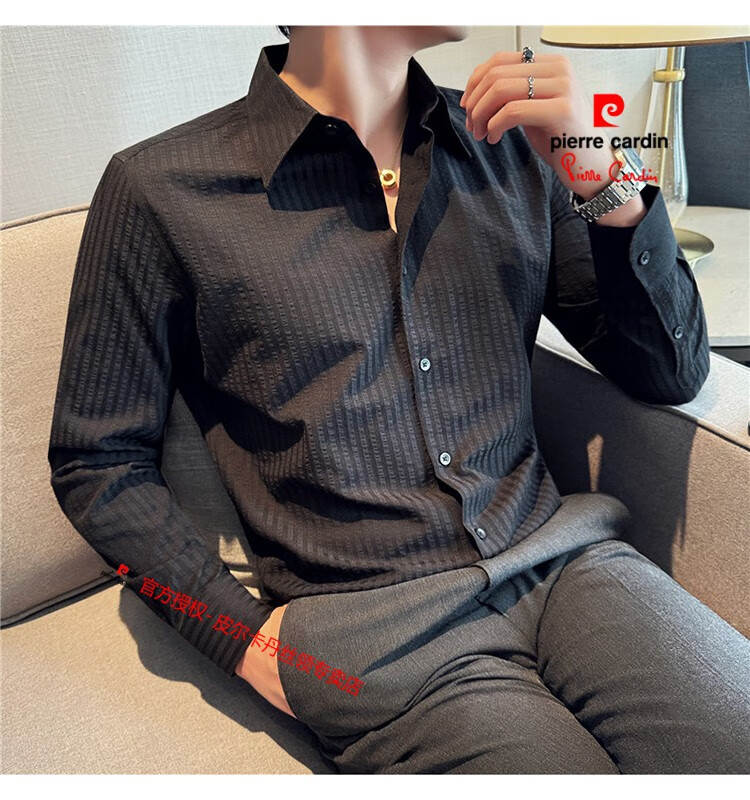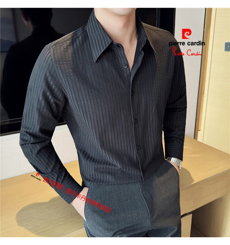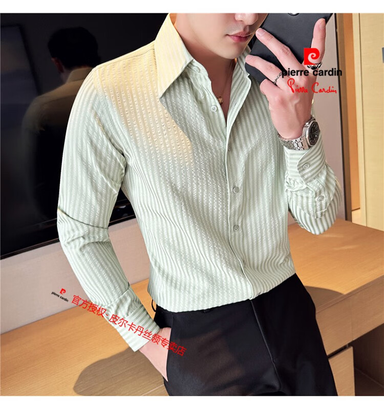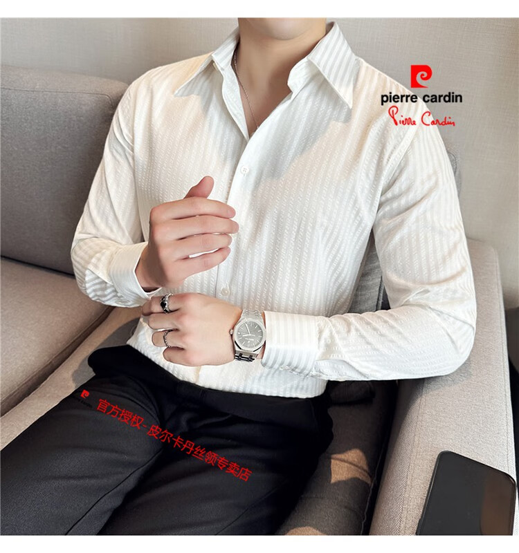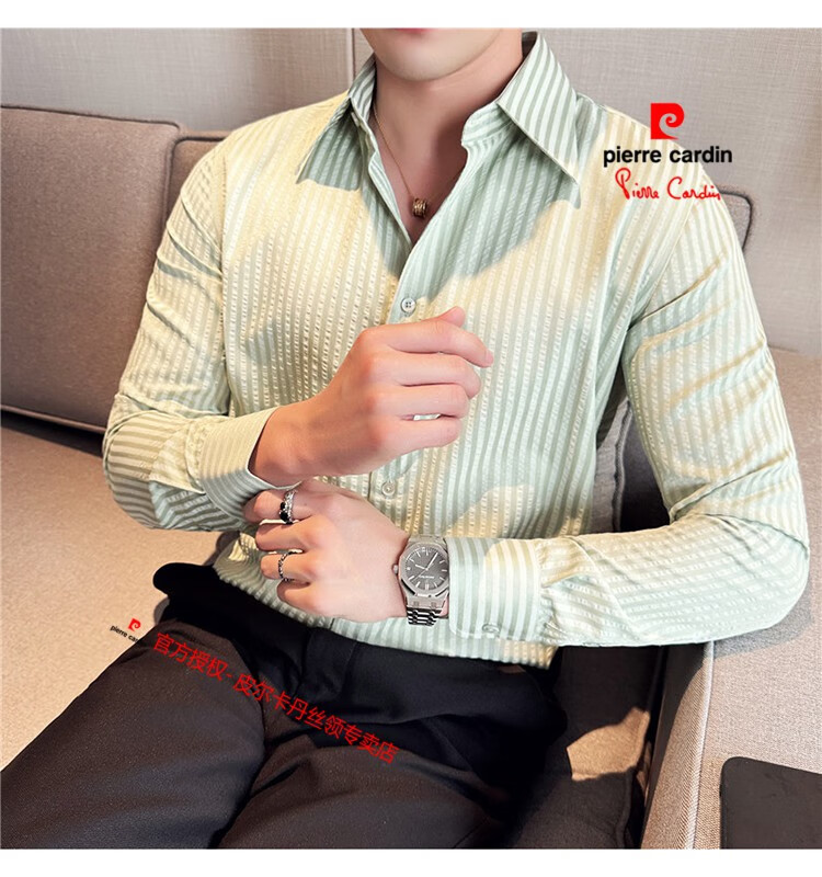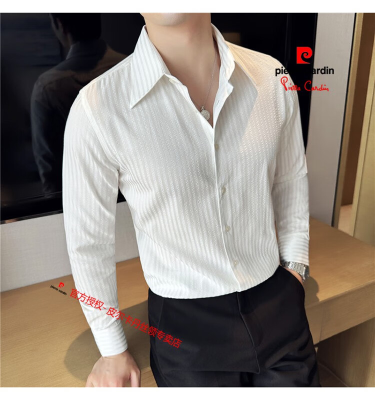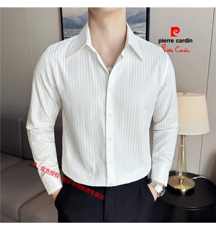 Pierre Cardin (Pierre Cardin) French large collar striped shirt men's long-sleeved autumn high-end casual versatile handsome style seersucker slim shirt blue 2XL (150-160Jin Jin equals 0.5 kg)