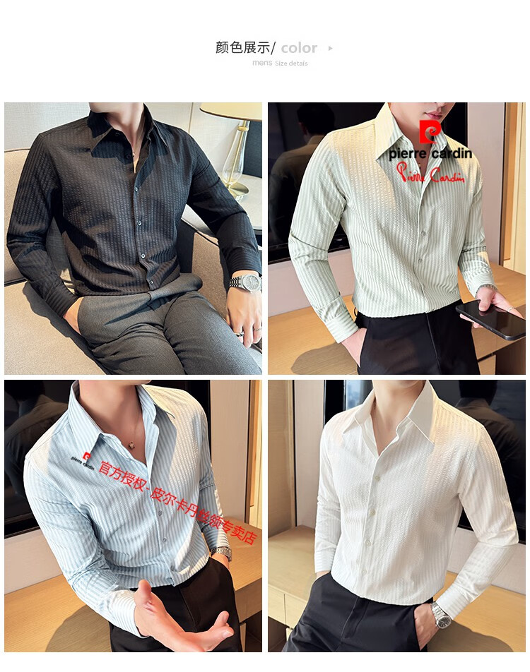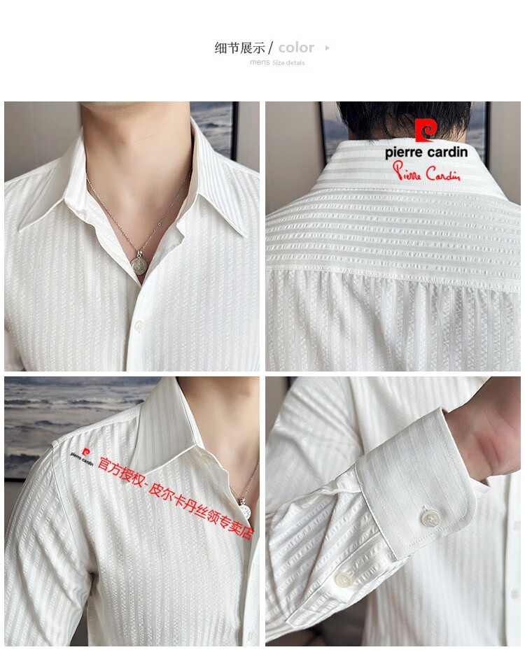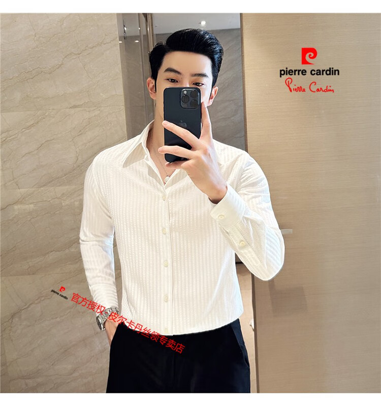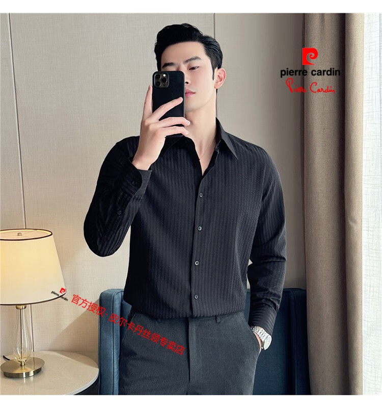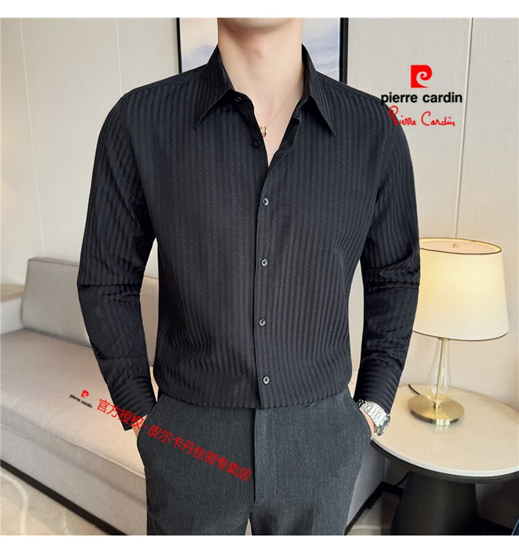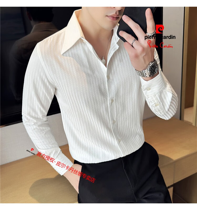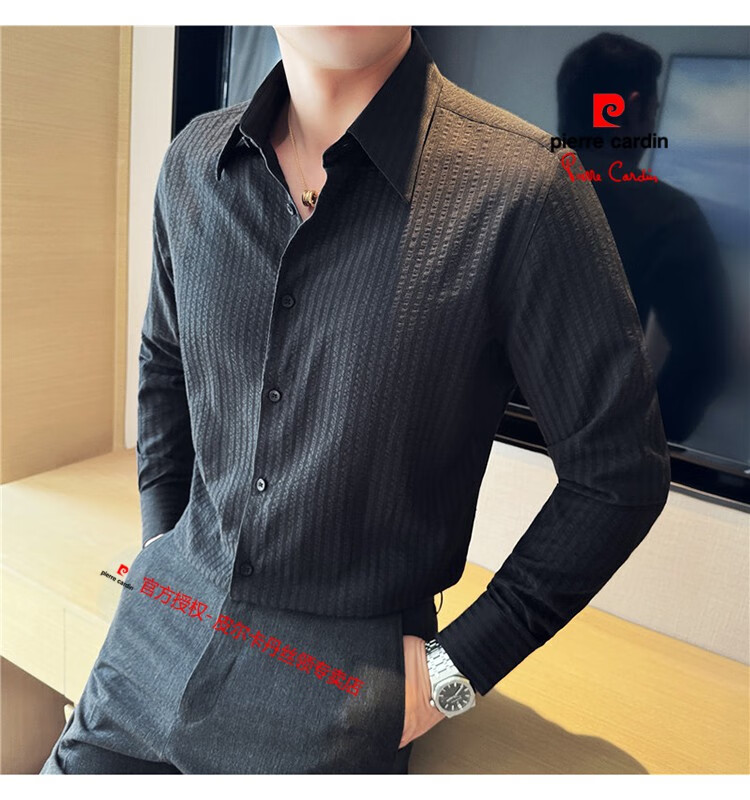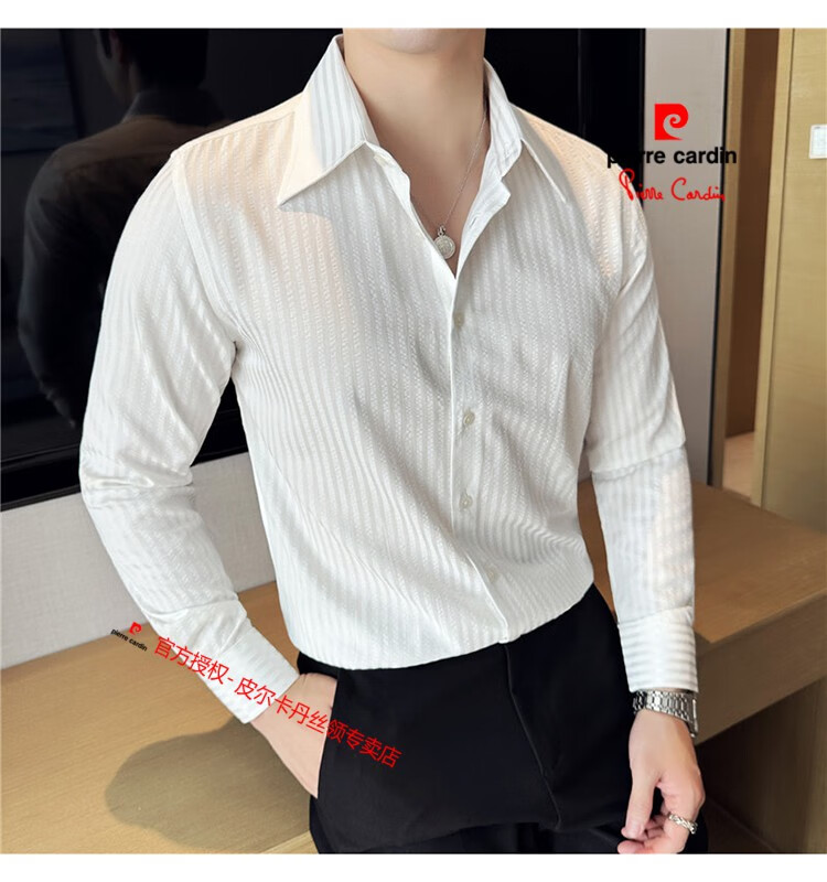 Pierre Cardin (Pierre Cardin) French large collar striped shirt men's long-sleeved autumn high-end casual versatile handsome style seersucker slim shirt blue 2XL (150-160Jin Jin equals 0.5 kg)