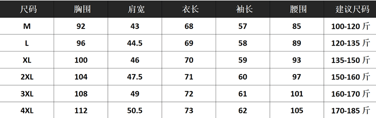 China (cm) 165 / 88-90 170 / 96-98 175 / 108-110 180 / 118-122 185 / 126-130