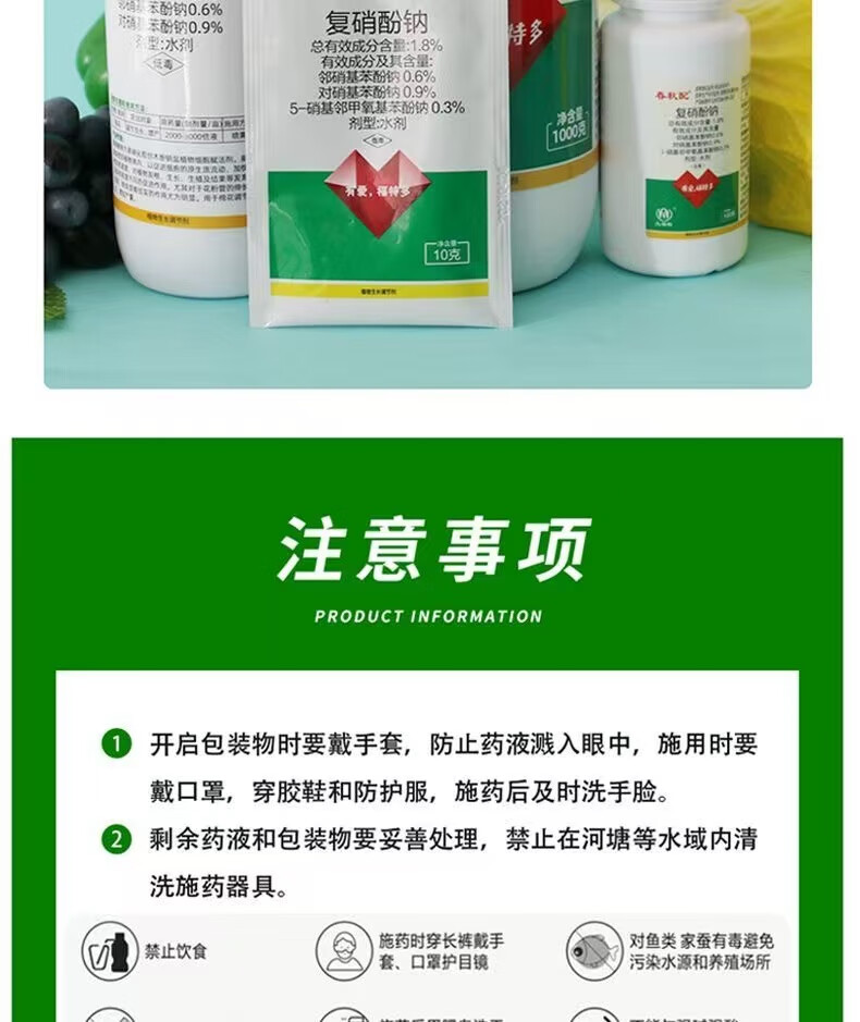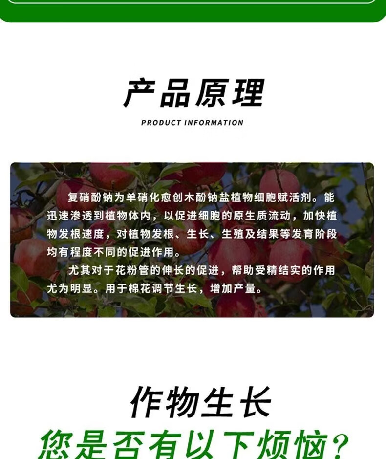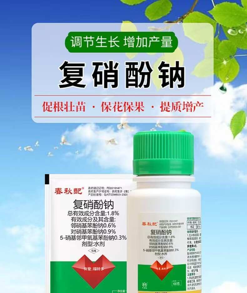 Sodium nitrophenolate can root and strengthen seedlings, promote flower bud differentiation, preserve flowers and fruits, increase fruit setting rate, and eliminate pesticide damage regulator 500g