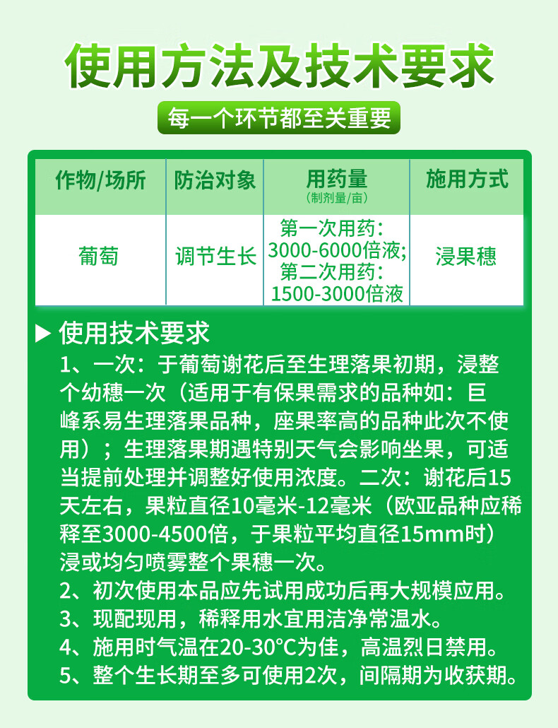 Lanyue Dagebao 3% gibberellic acid thiadiazole grape anti-fruit drop, fruit setting, fruit development and growth regulator 5.5g*50 bags